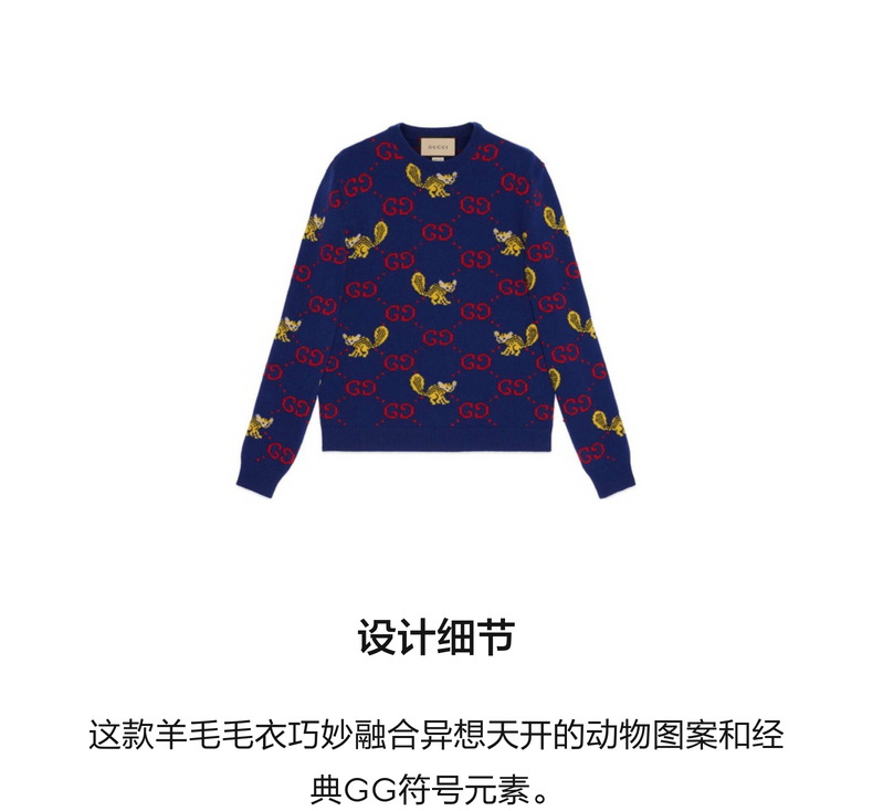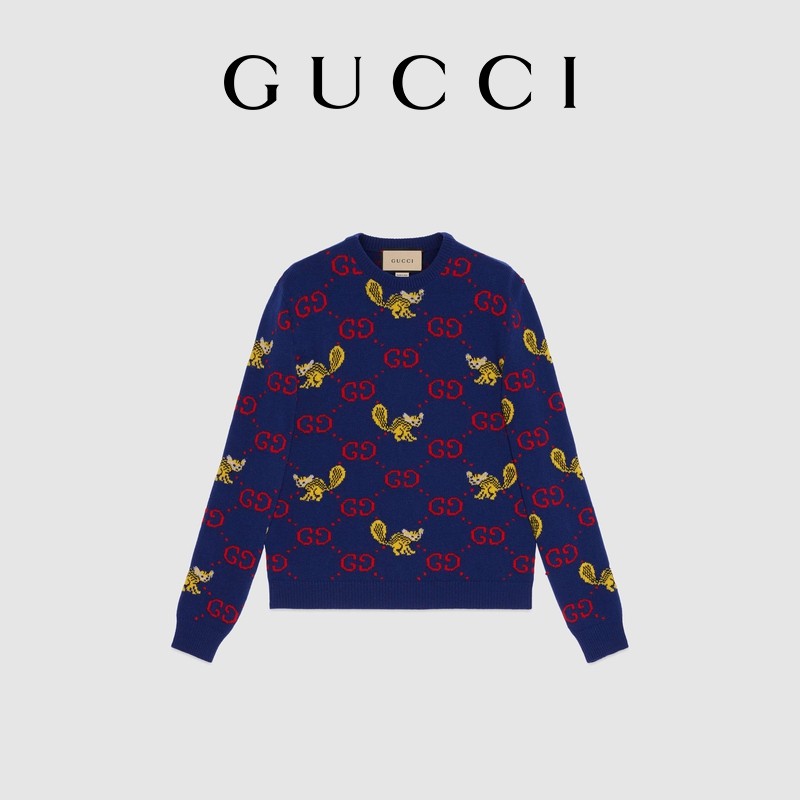 [新品]GUCCI古驰饰Freya Hartas创作的动物图案羊毛毛衣