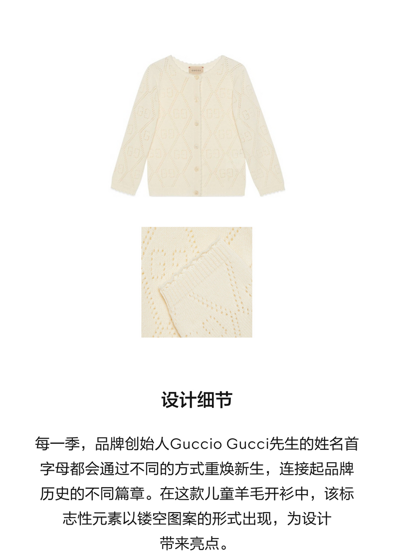 首页 > GUCCI古驰 > GUCCI古驰商品 > [新品]GUCCI古驰 儿童GG针织羊毛开衫