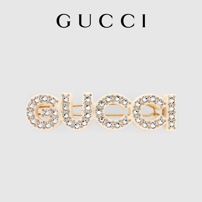 [新品]GUCCI古驰水晶“Gucci”发夹