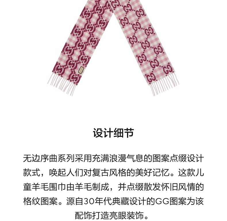 [新品]GUCCI古驰 儿童格纹羊毛围巾
