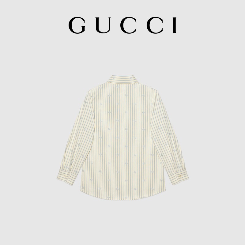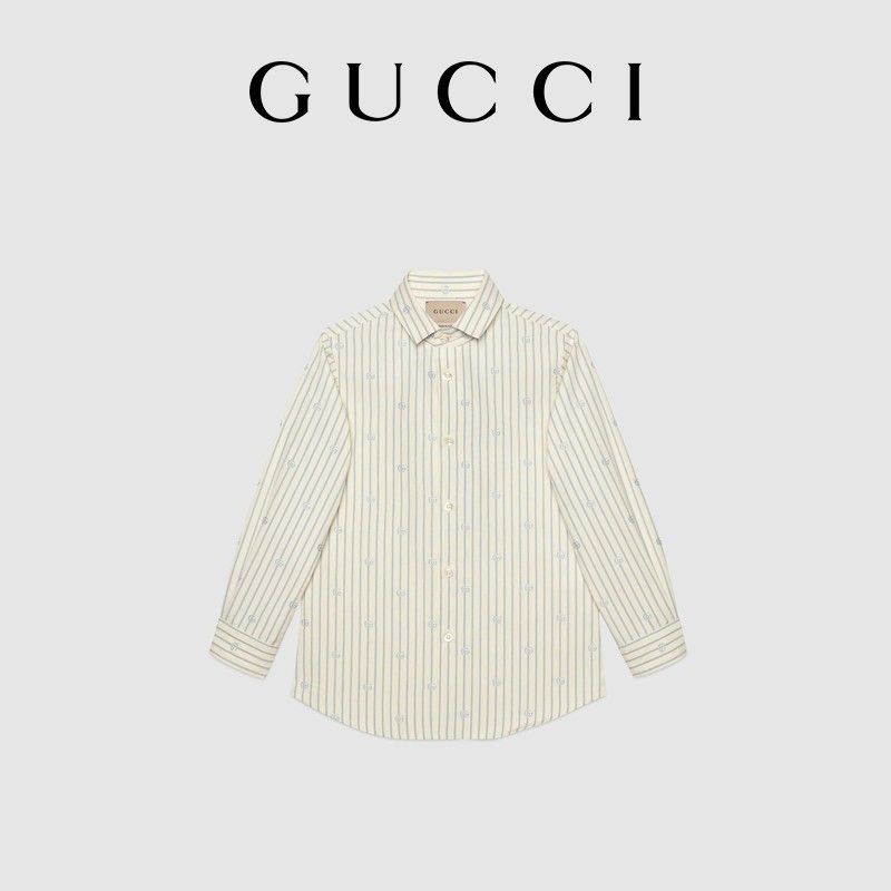 [新品]GUCCI古驰 儿童GG条纹图案切丝衬衫