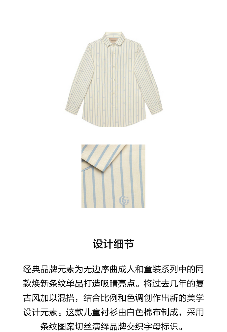 首页 > GUCCI古驰 > GUCCI古驰商品 > [新品]GUCCI古驰 儿童GG条纹图案切丝衬衫