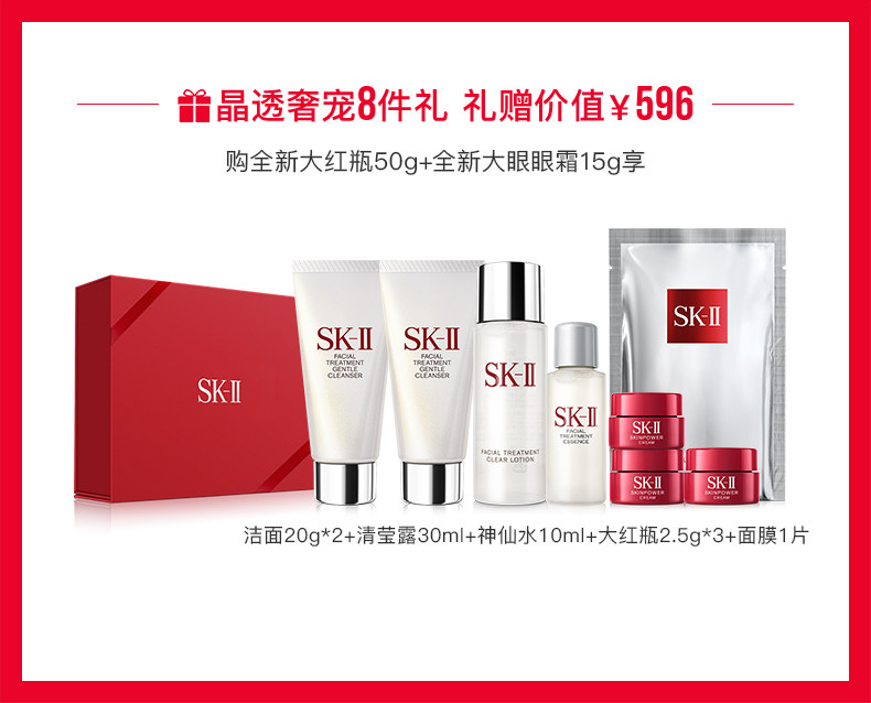 首页 > SK-商品专区 > SK-护肤品 > 【618狂欢】SKII大红瓶面部护肤精华面霜眼霜修护紧实修护sk2skll