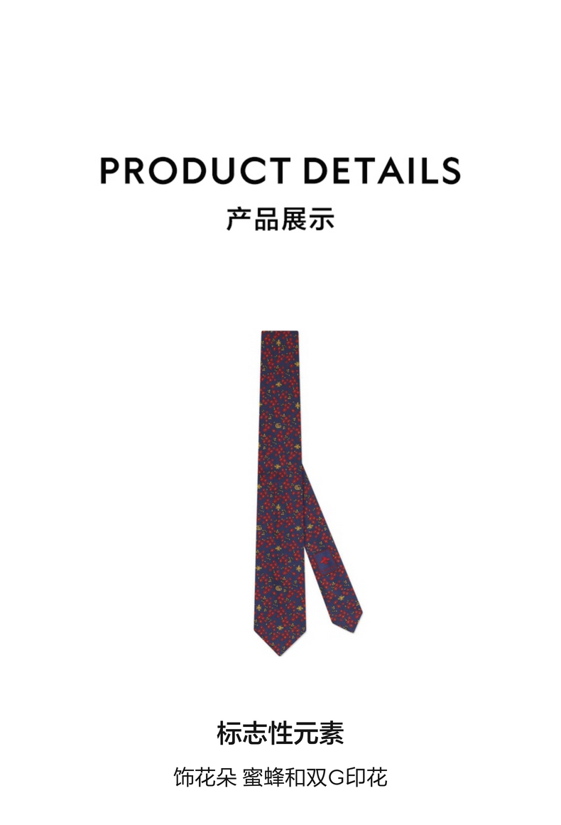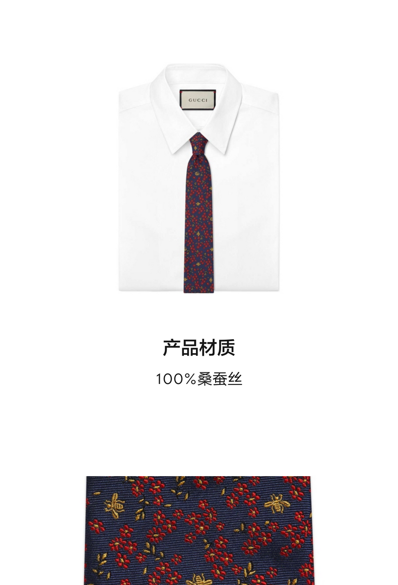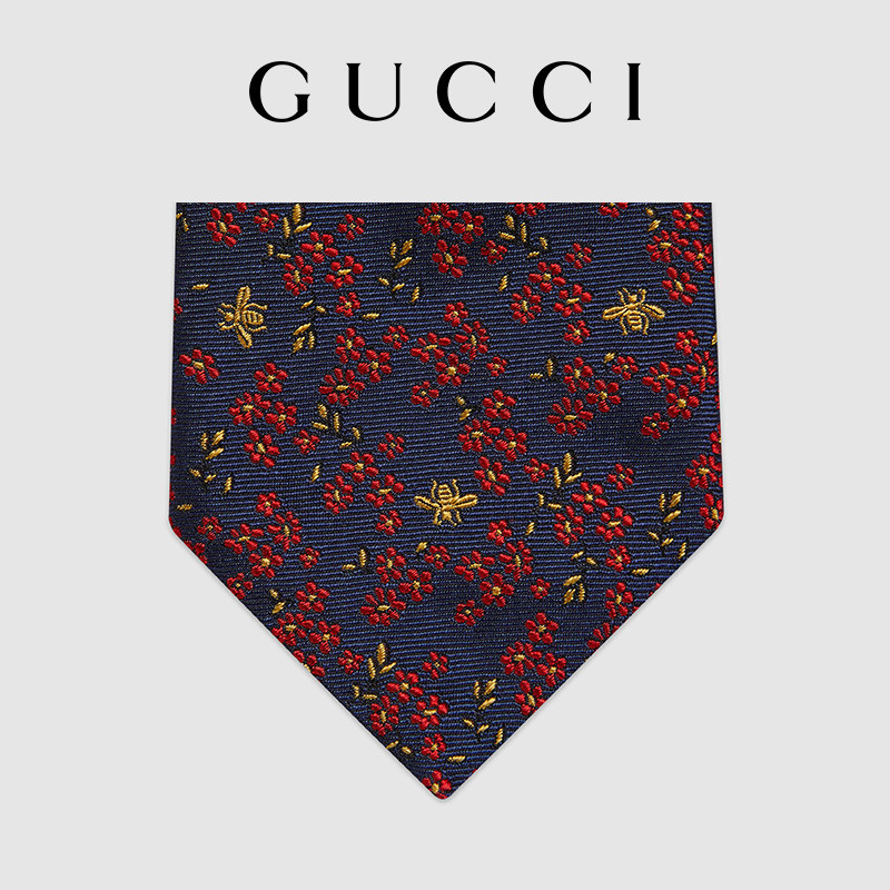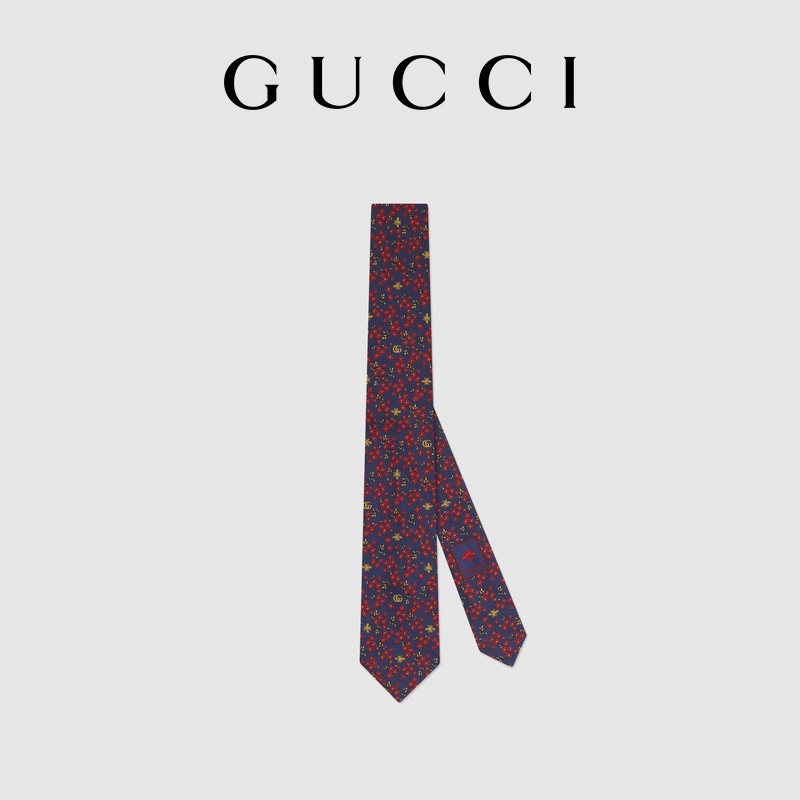 [新品]GUCCI古驰花朵蜜蜂印花真丝领带