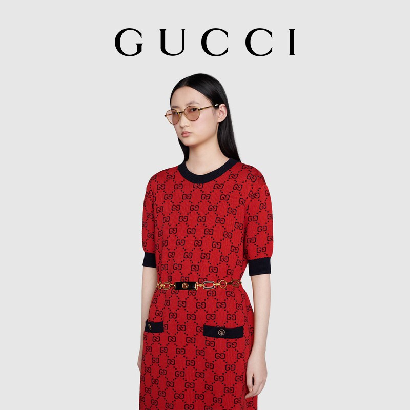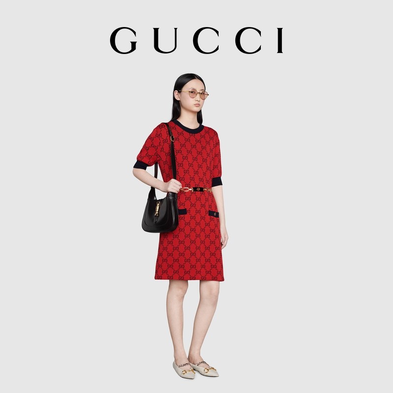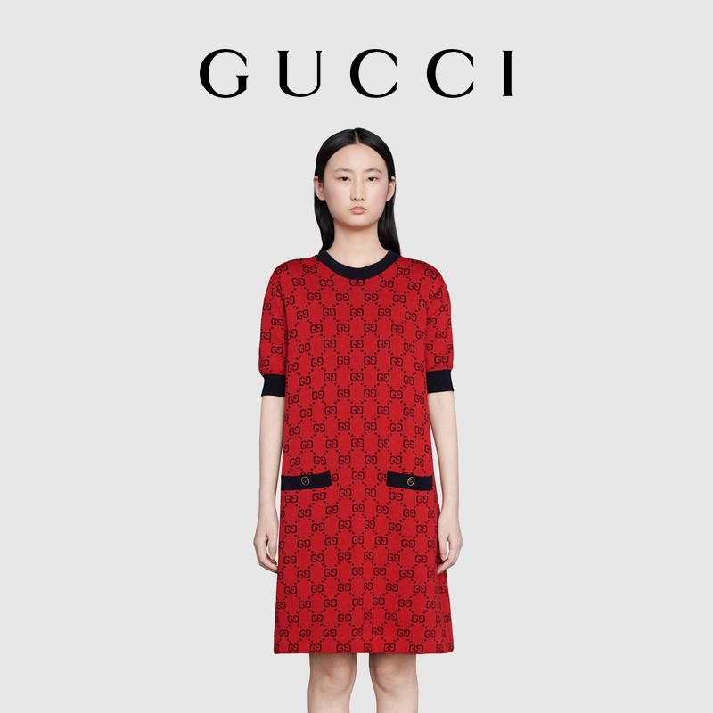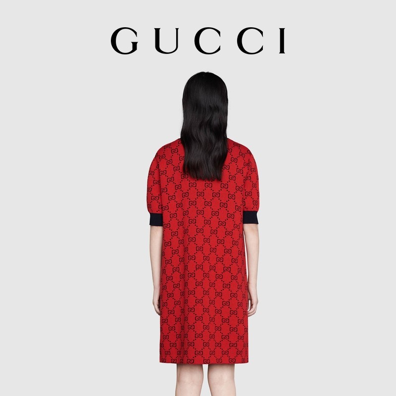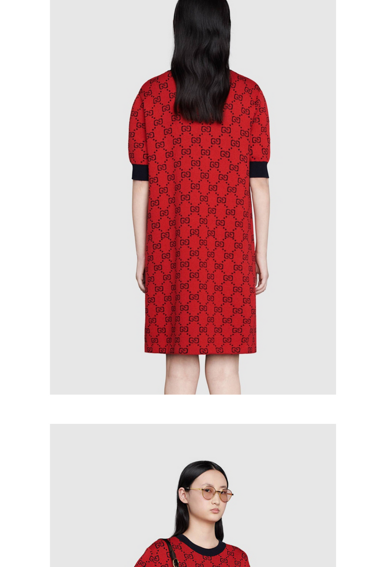 [新品]GUCCI古驰520特别系列GG提花棉毛混纺连衣裙