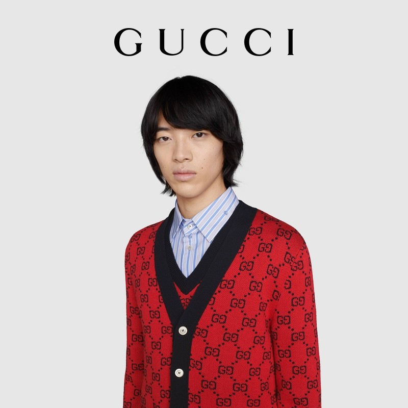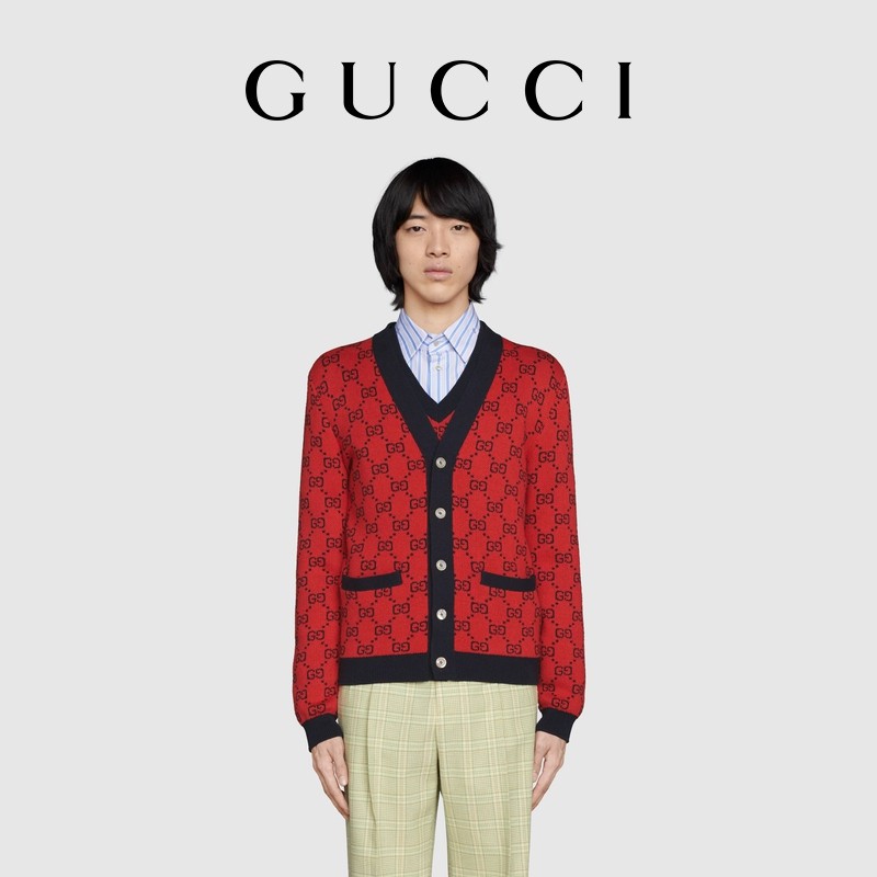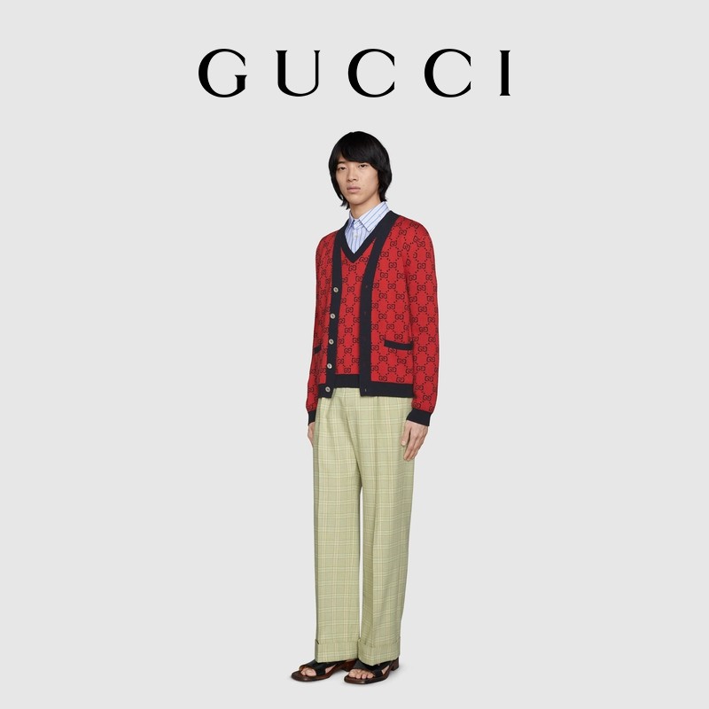 [新品]GUCCI古驰520特别系列GG提花棉毛混纺开衫