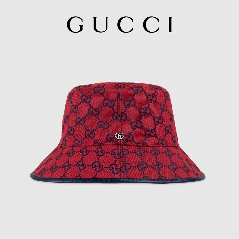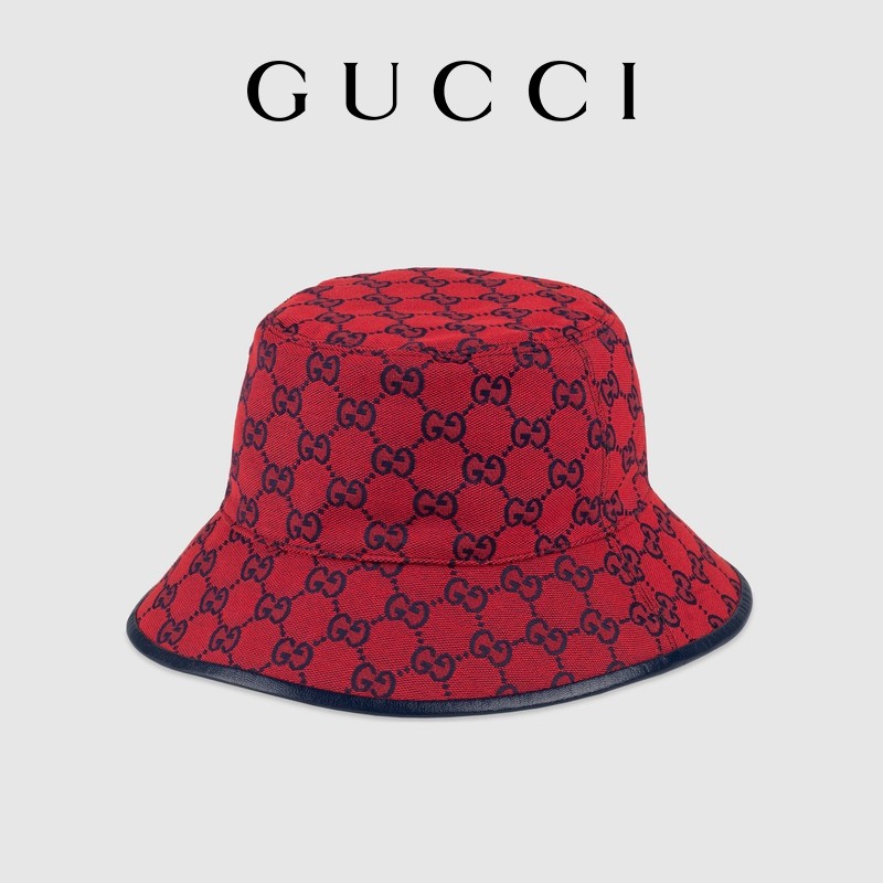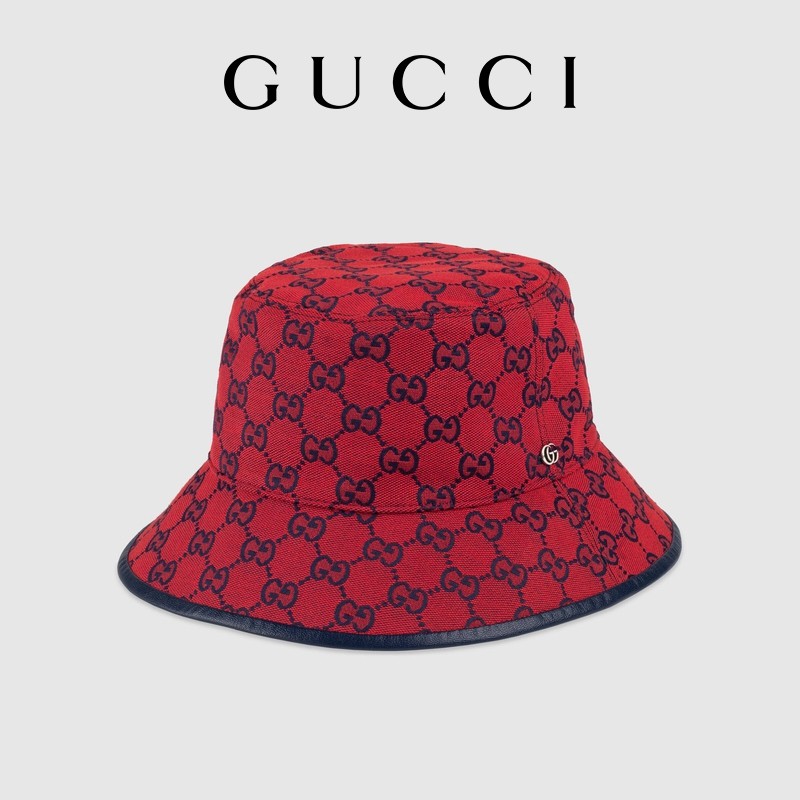 [新品]GUCCI古驰520特别系列皮革滚边双G帆布渔夫帽