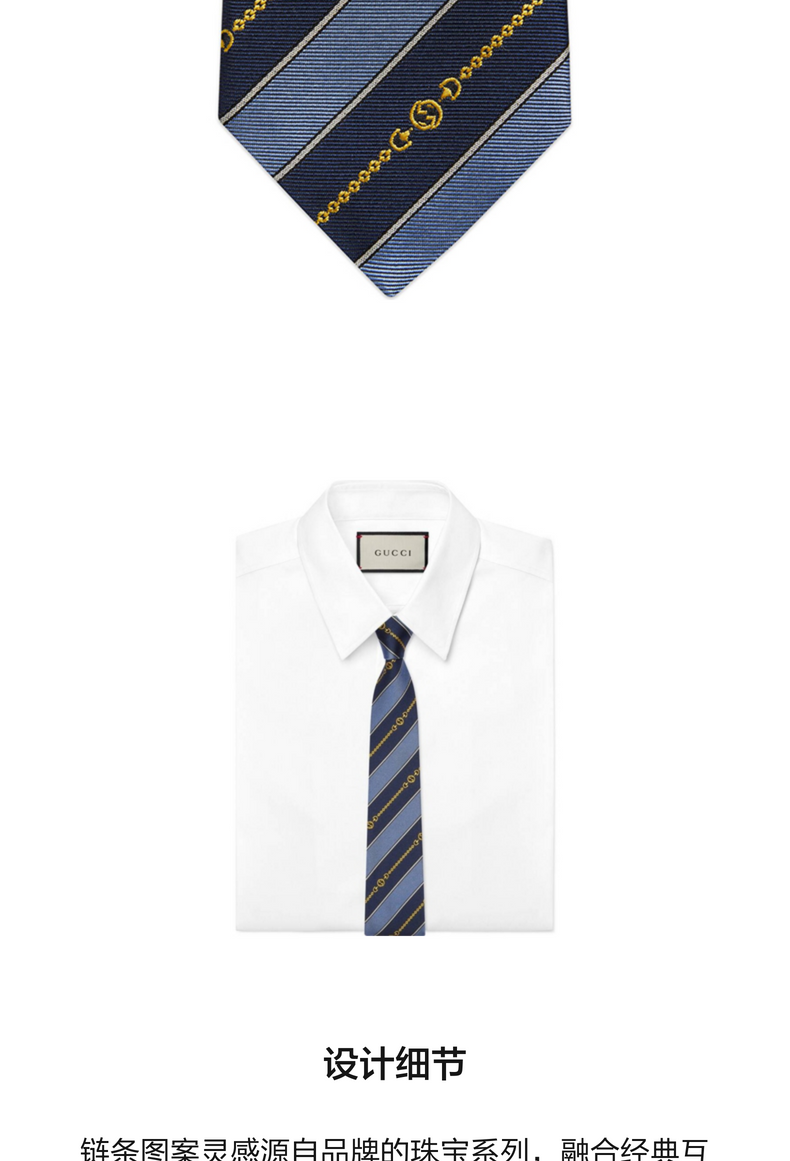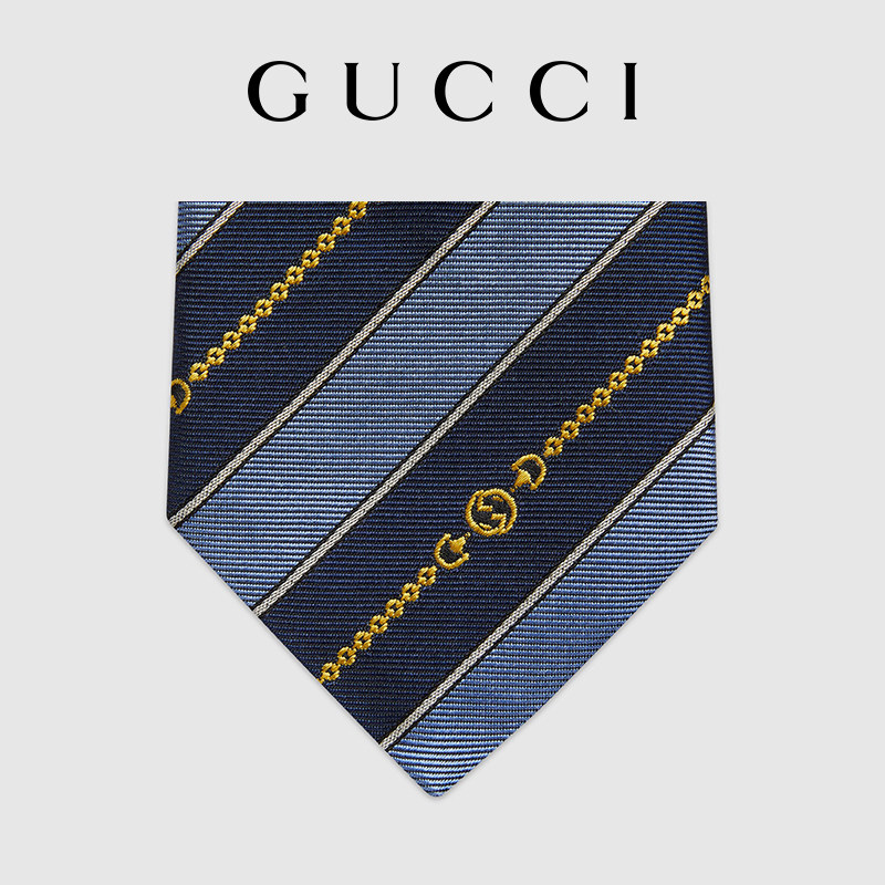[新品]GUCCI古驰互扣式双G链带提花真丝领带