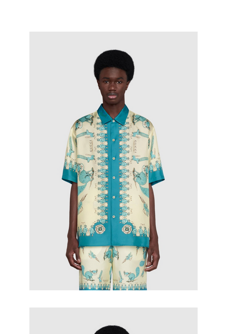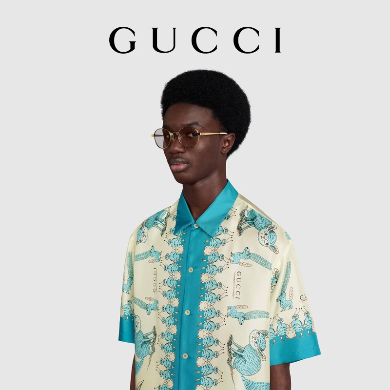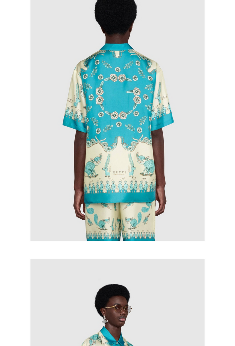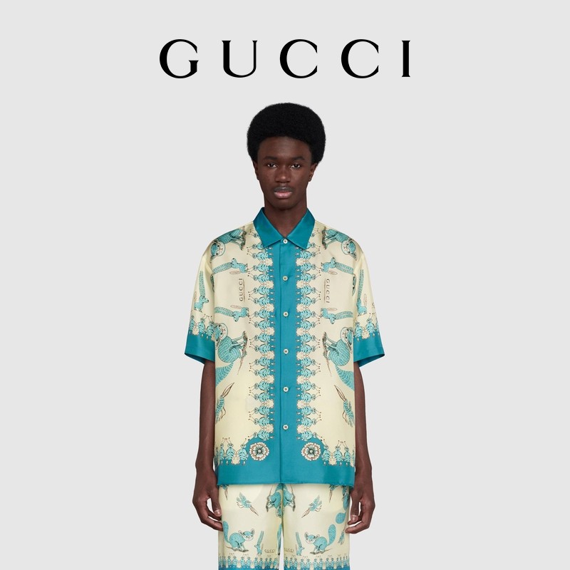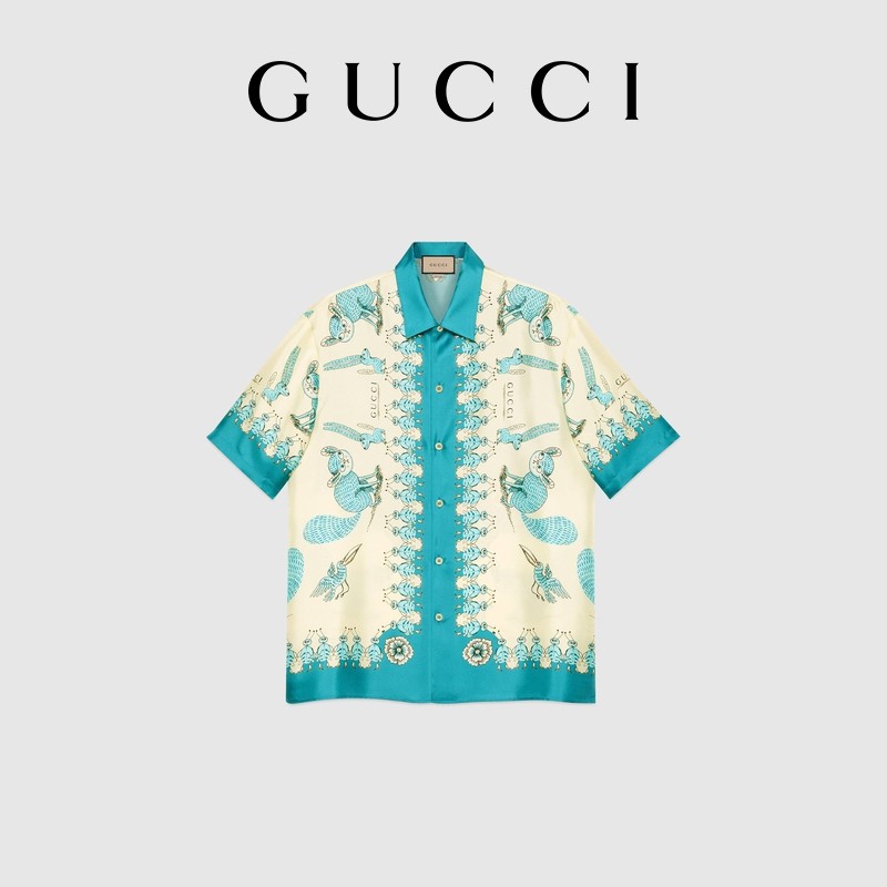 [新品]GUCCI古驰Freya Hartas印花斜纹真丝衬衫