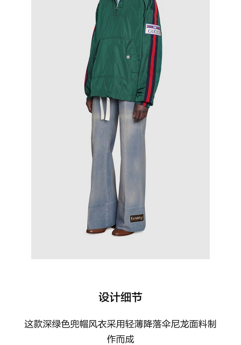 [新品]GUCCI古驰降落伞尼龙兜帽夹克