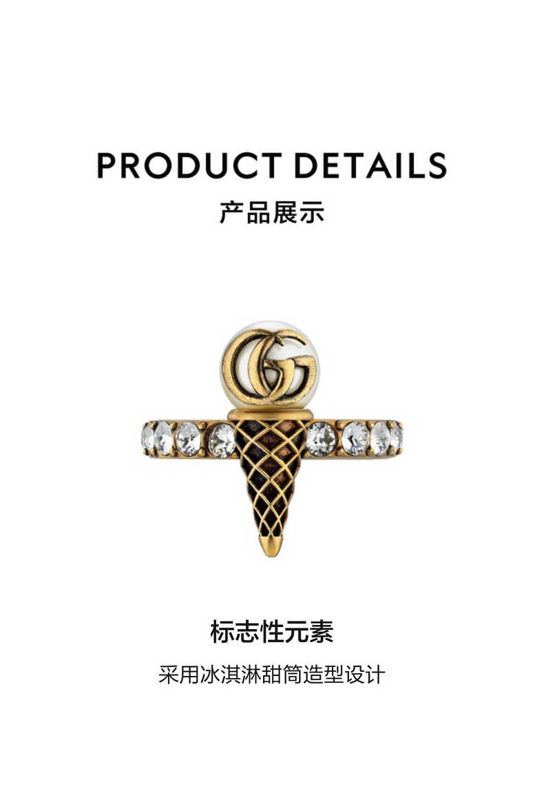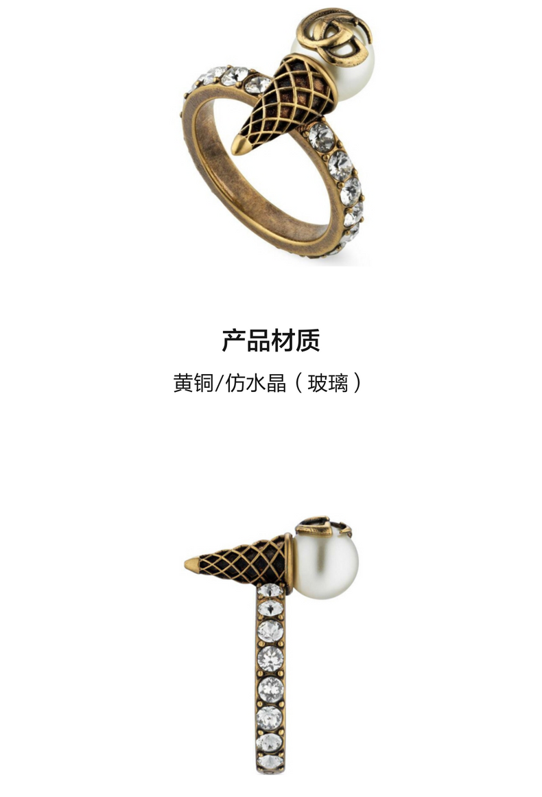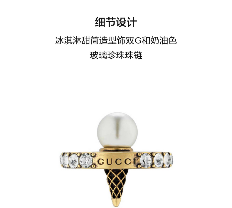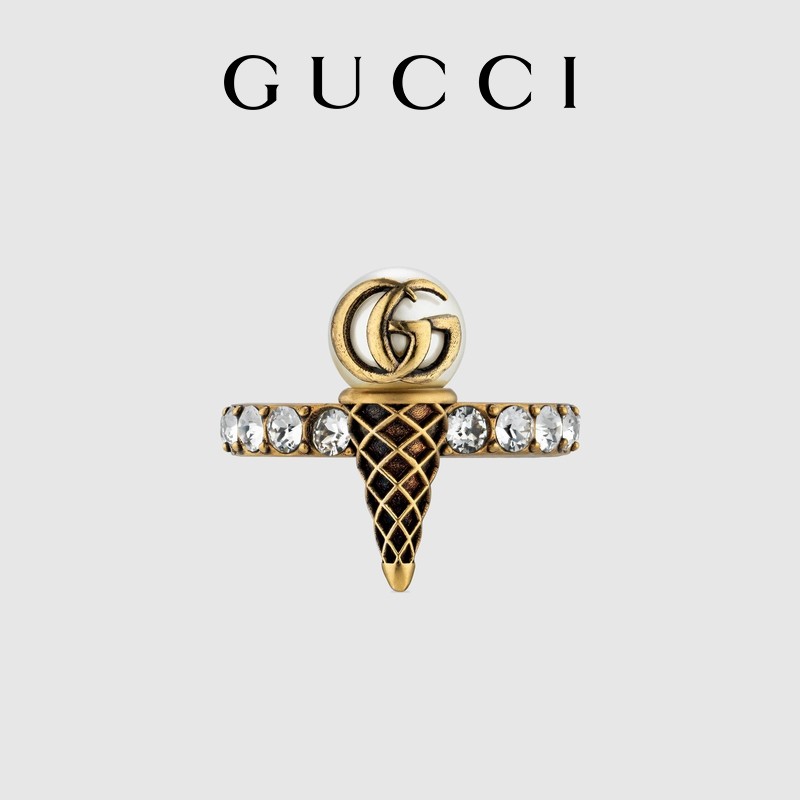 [新品]GUCCI古驰水晶双G冰淇淋造型戒指