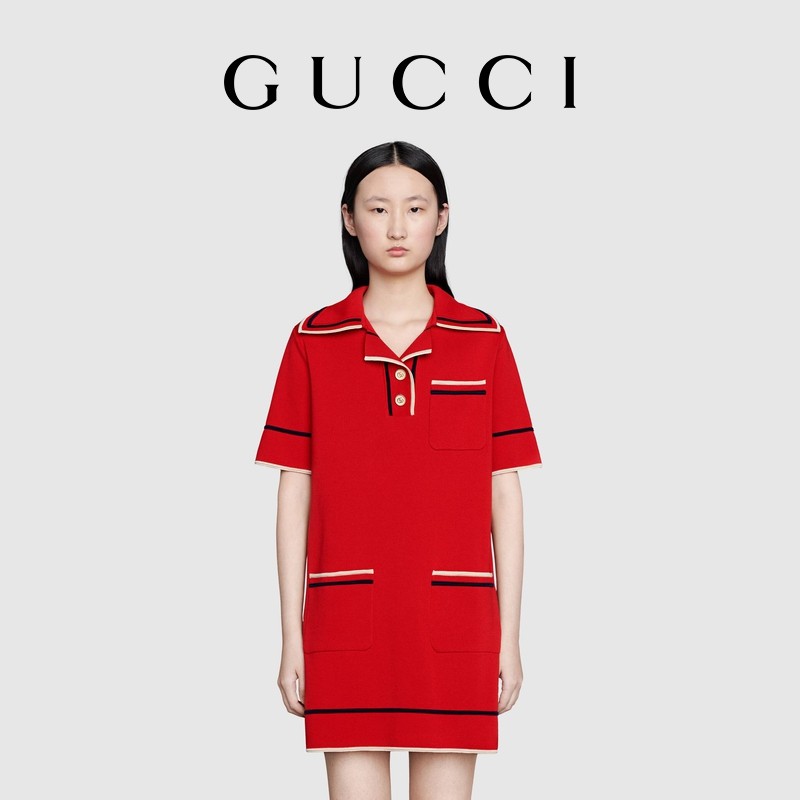 [新品]GUCCI古驰精棉针织Polo裙
