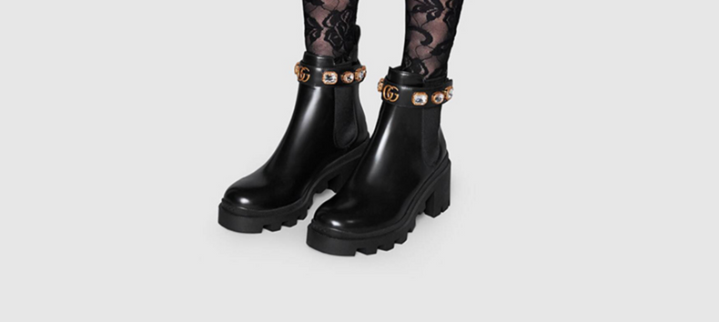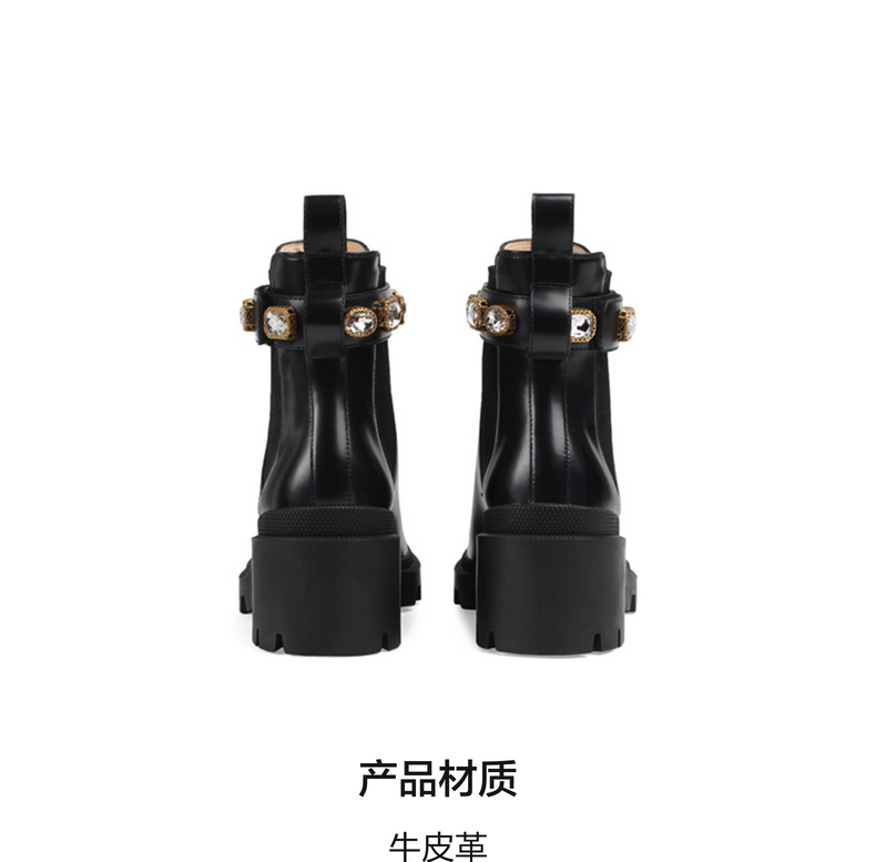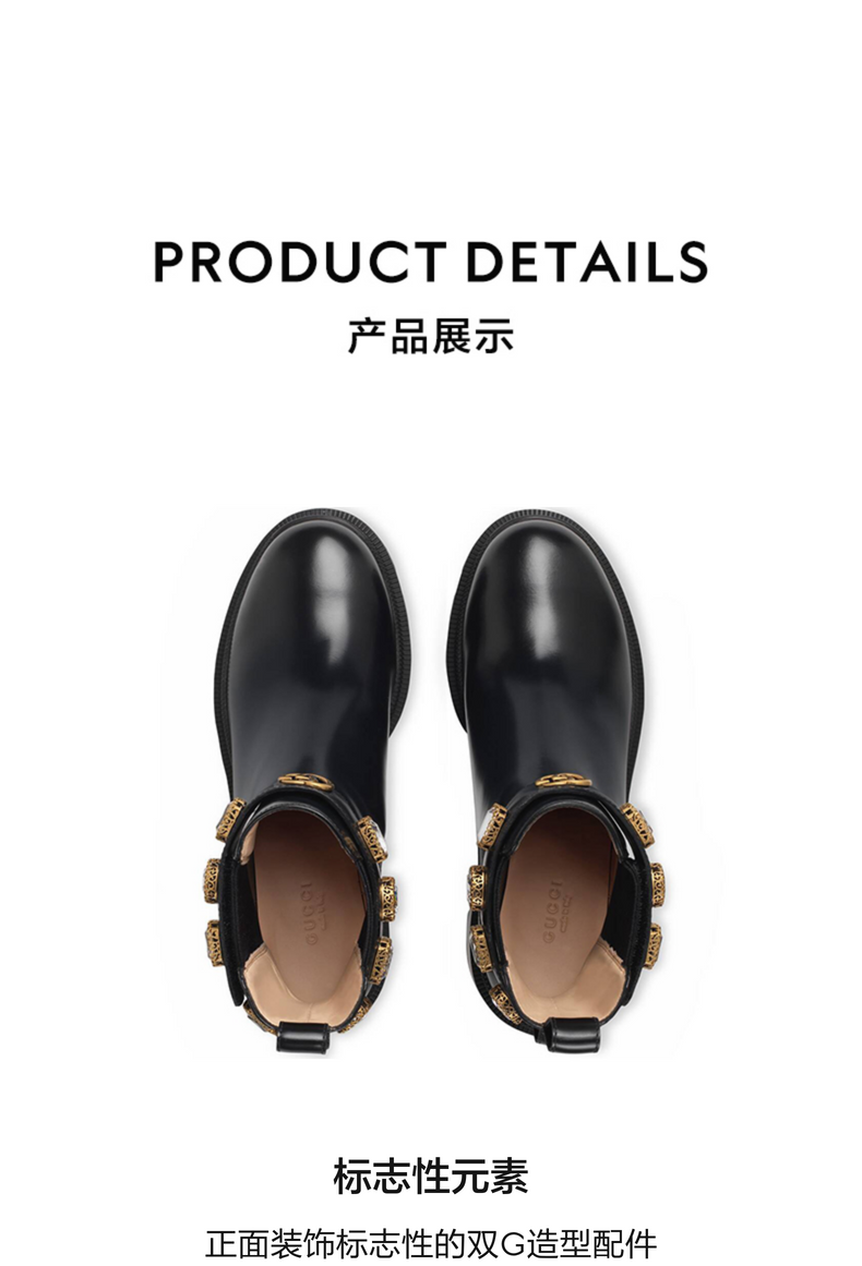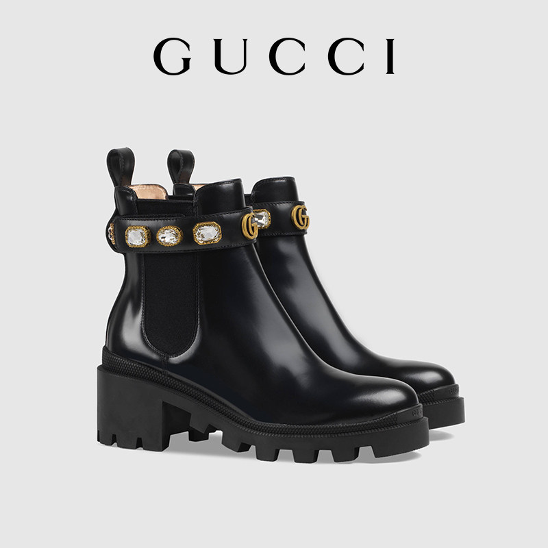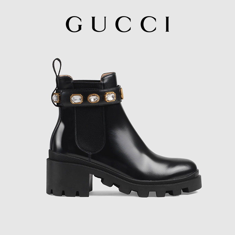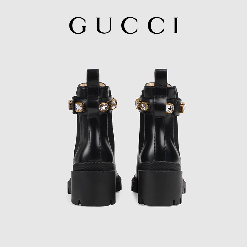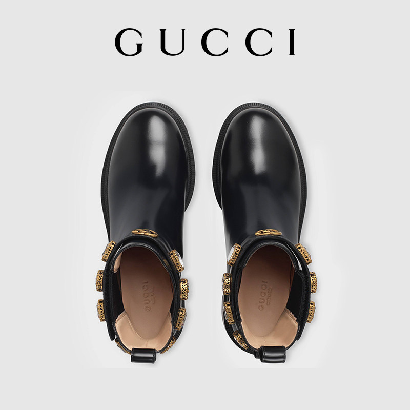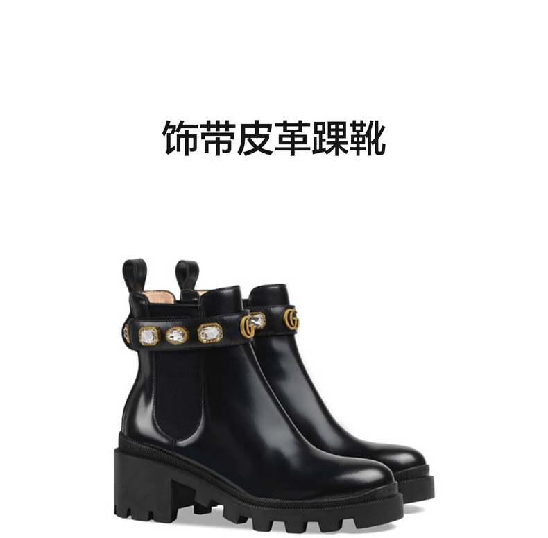 GUCCI古驰饰带皮革踝靴