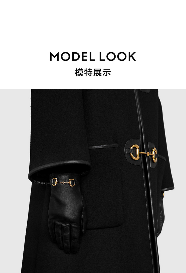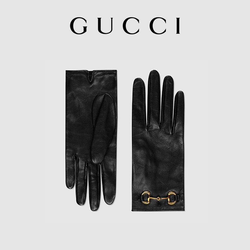 GUCCI古驰饰马衔扣皮革手套