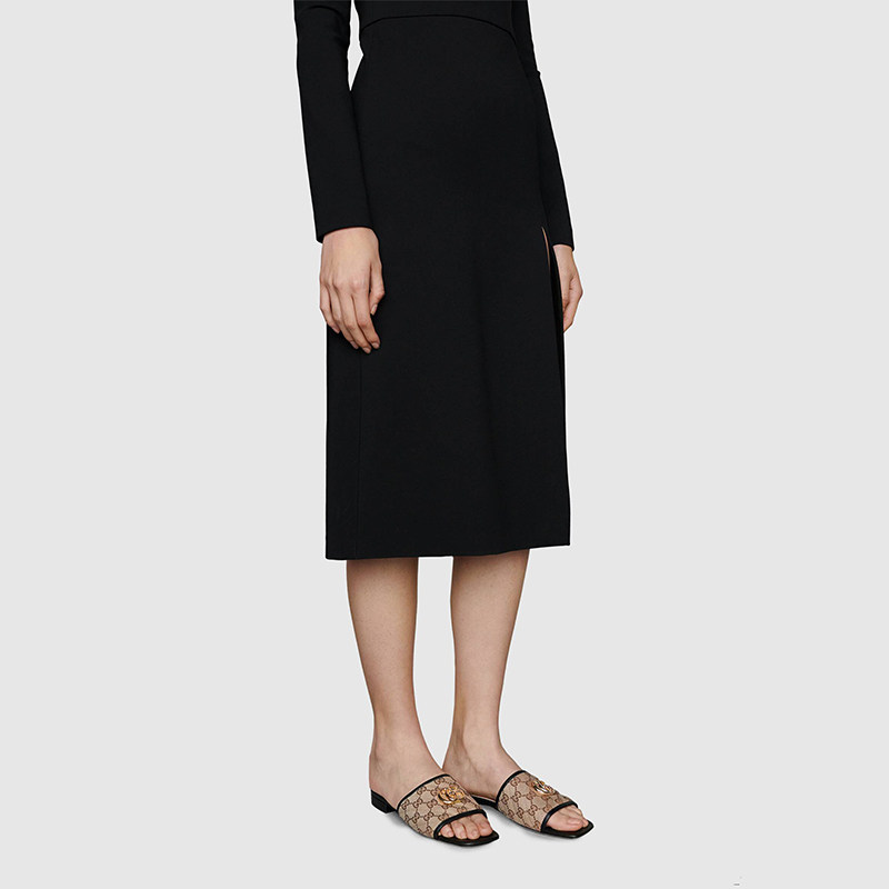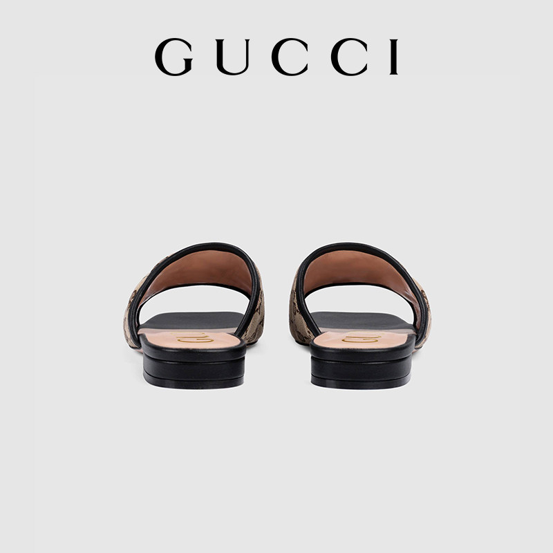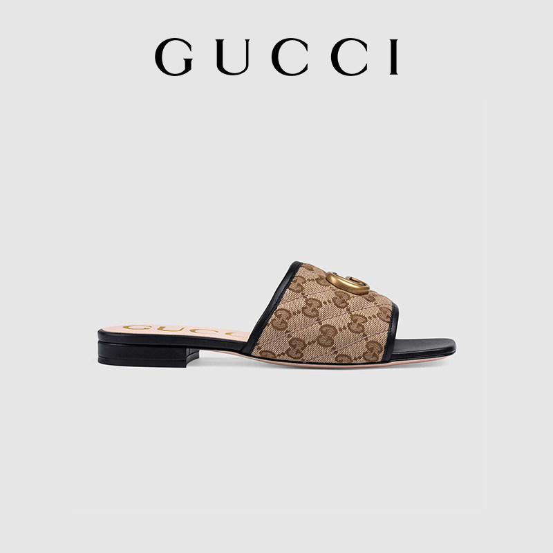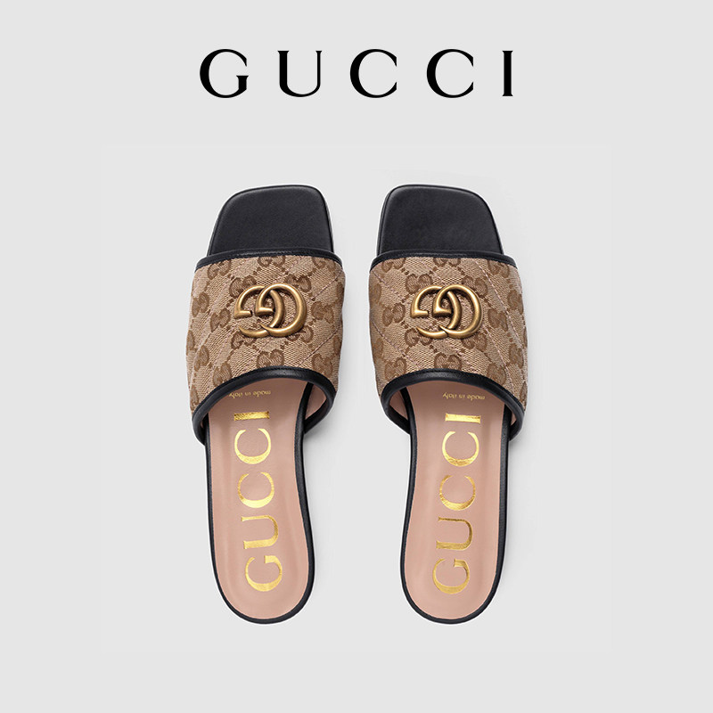 GUCCI古驰女士GG绗缝帆布凉拖鞋
