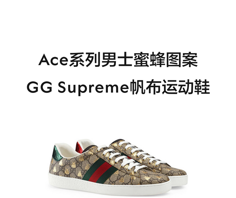 GUCCI古驰Ace系列男士蜜蜂图案GG Supreme帆布运动鞋