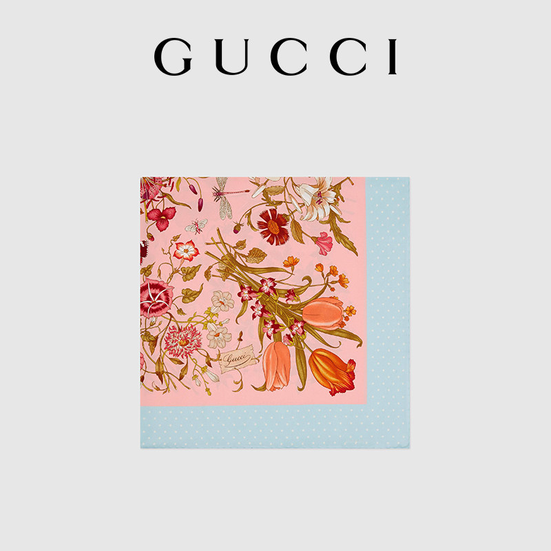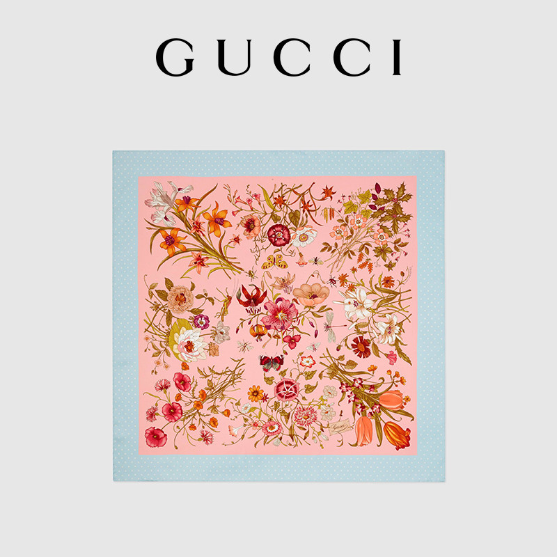 GUCCI古驰花卉印花真丝围巾