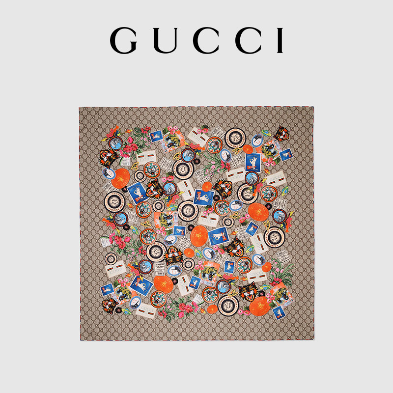 GUCCI古驰Gucci 信件印花真丝围巾