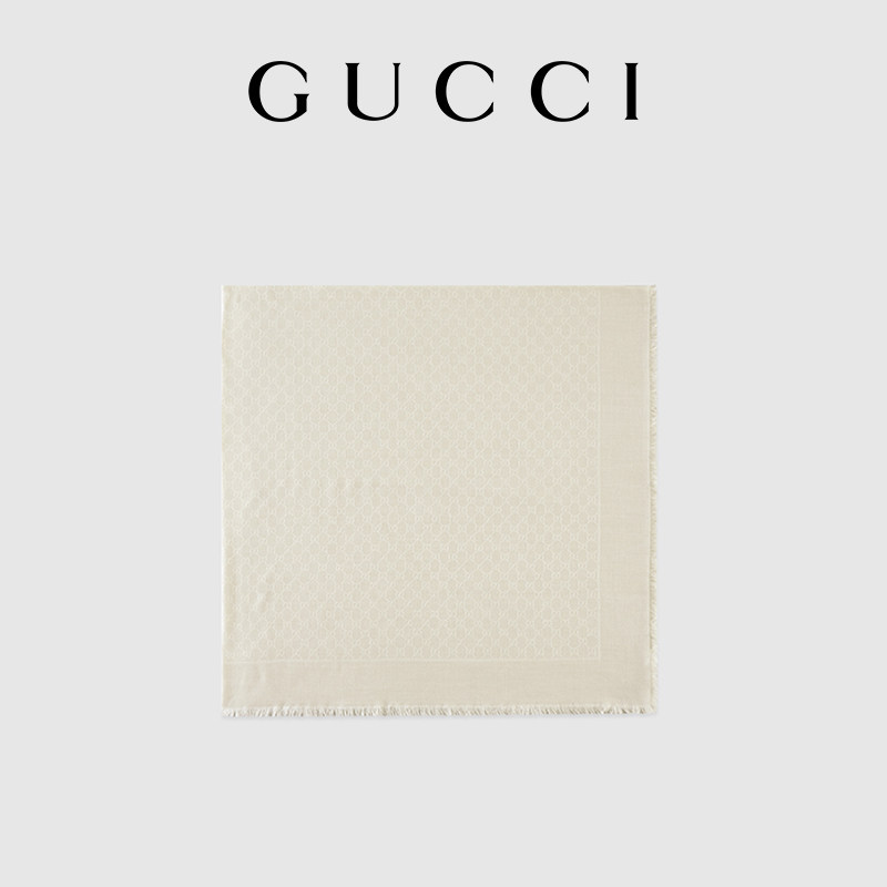 GUCCI古驰真丝羊毛混纺材质双G提花披肩