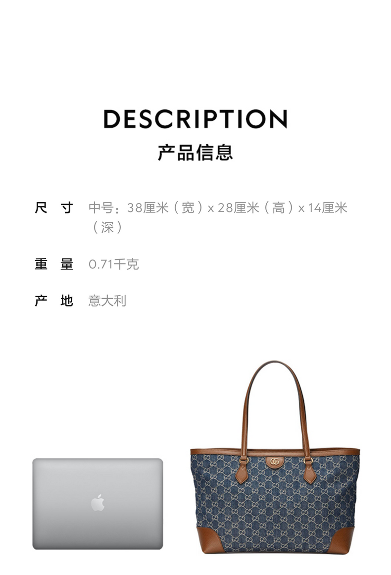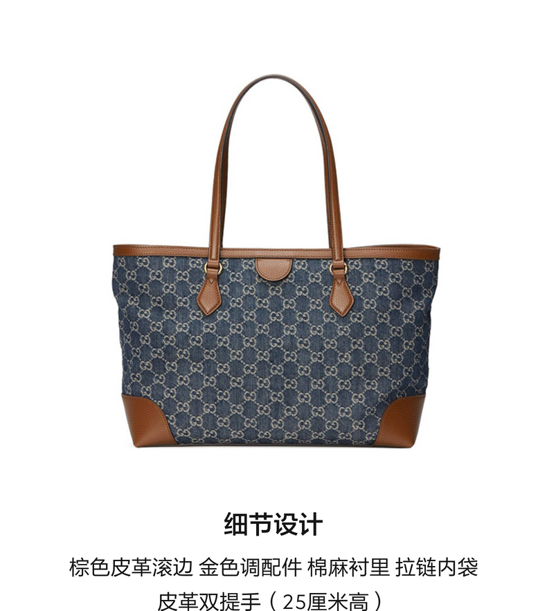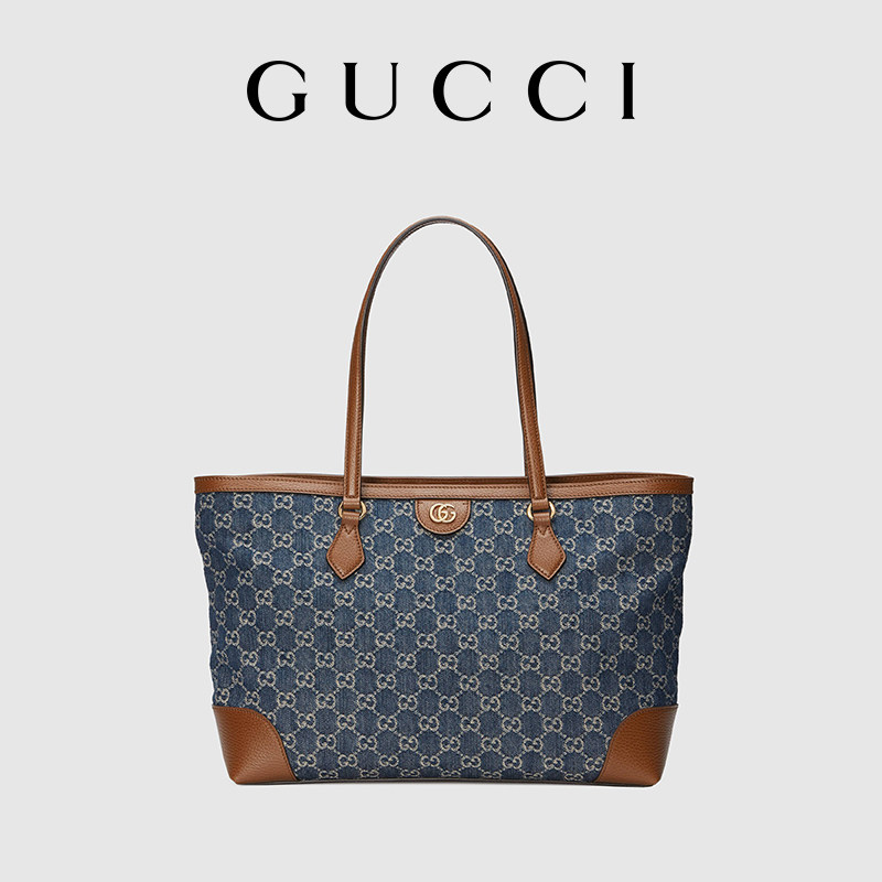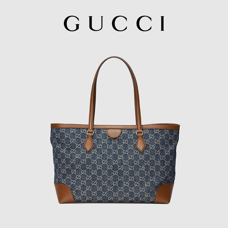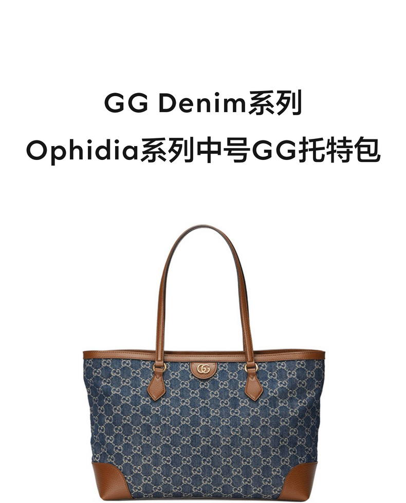 GUCCI古驰GG Denim系列Ophidia系列中号GG托特包