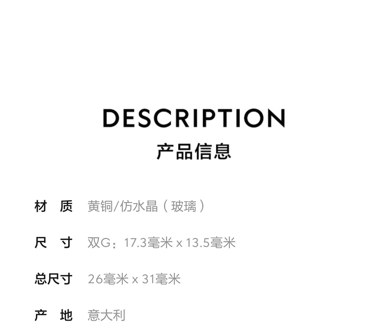 首页 > GUCCI古驰 > GUCCI古驰 饰品 > GUCCI古驰单边水晶双G耳环