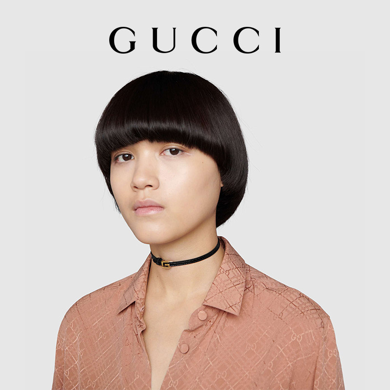 GUCCI古驰方形G皮革颈圈