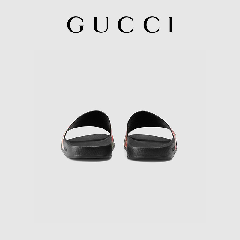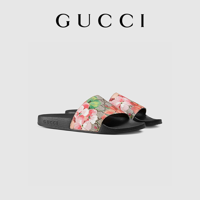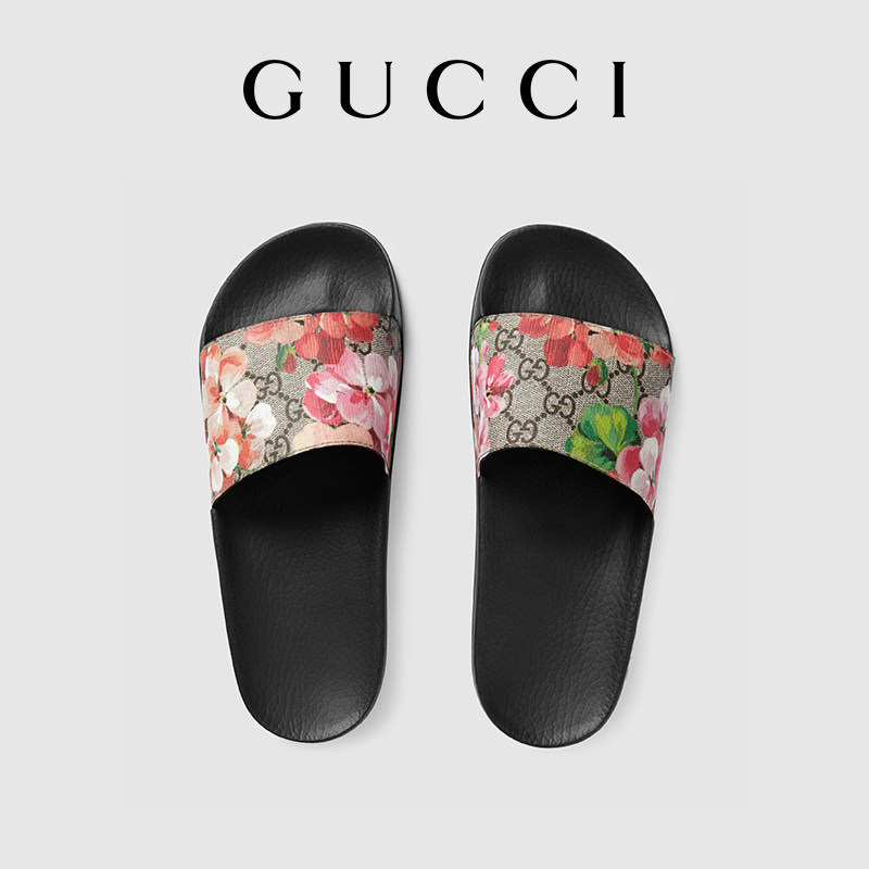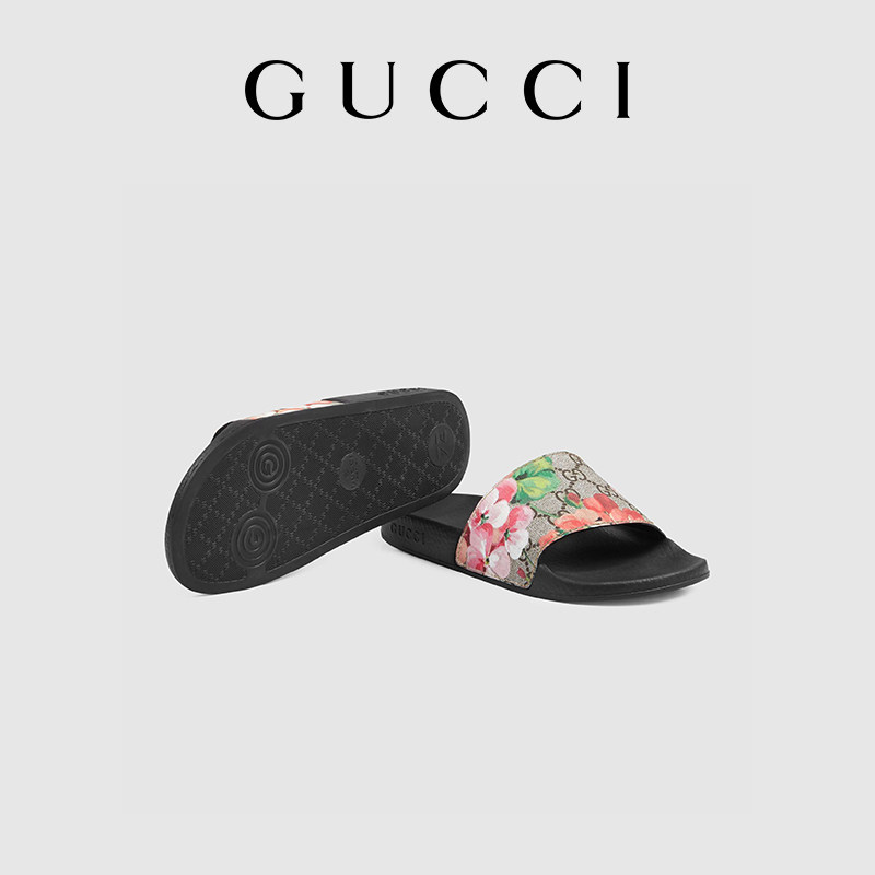 GUCCI古驰GG Blooms印花GG Supreme帆布拖鞋