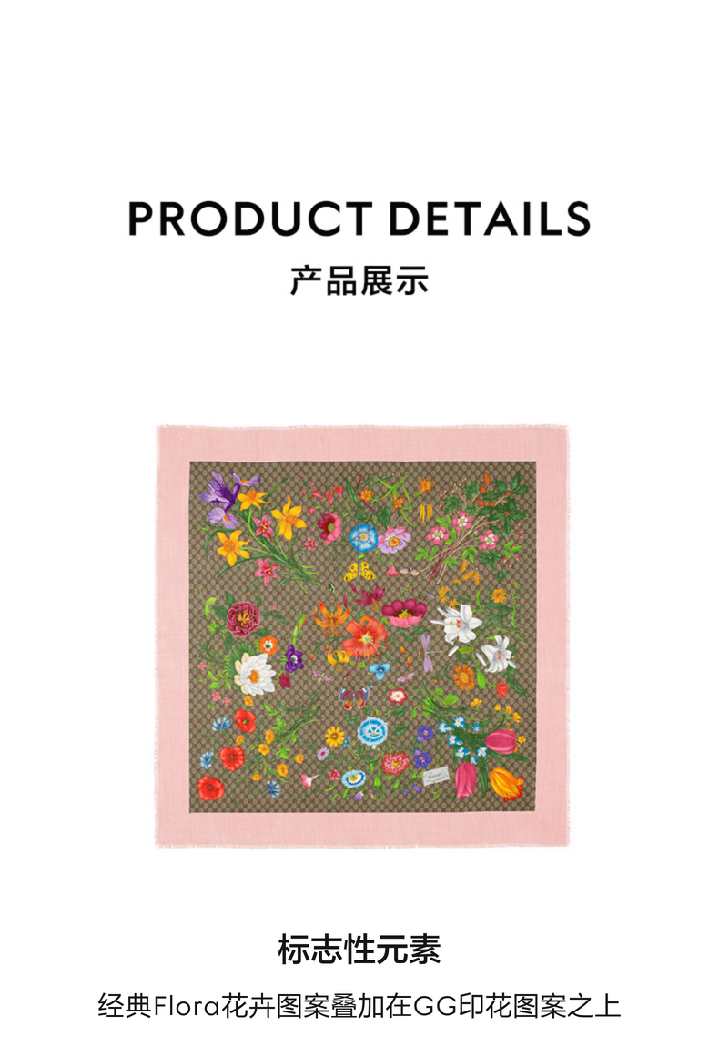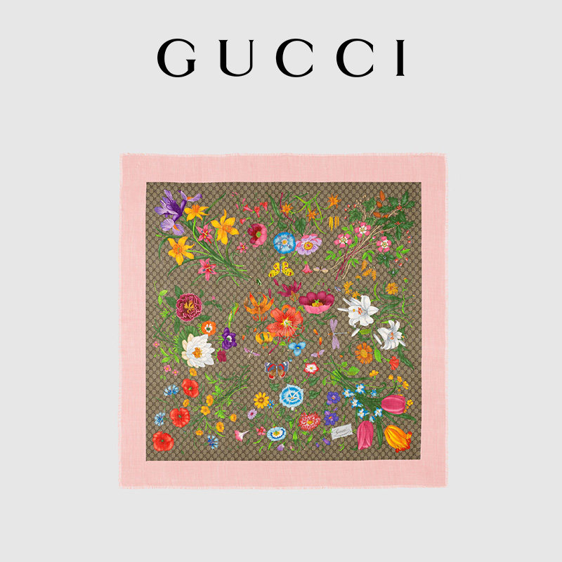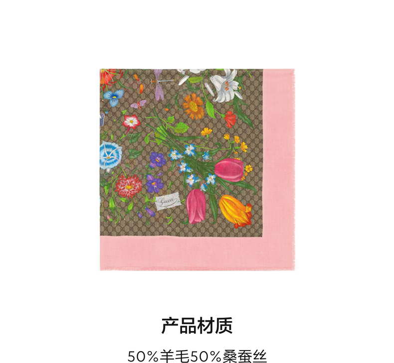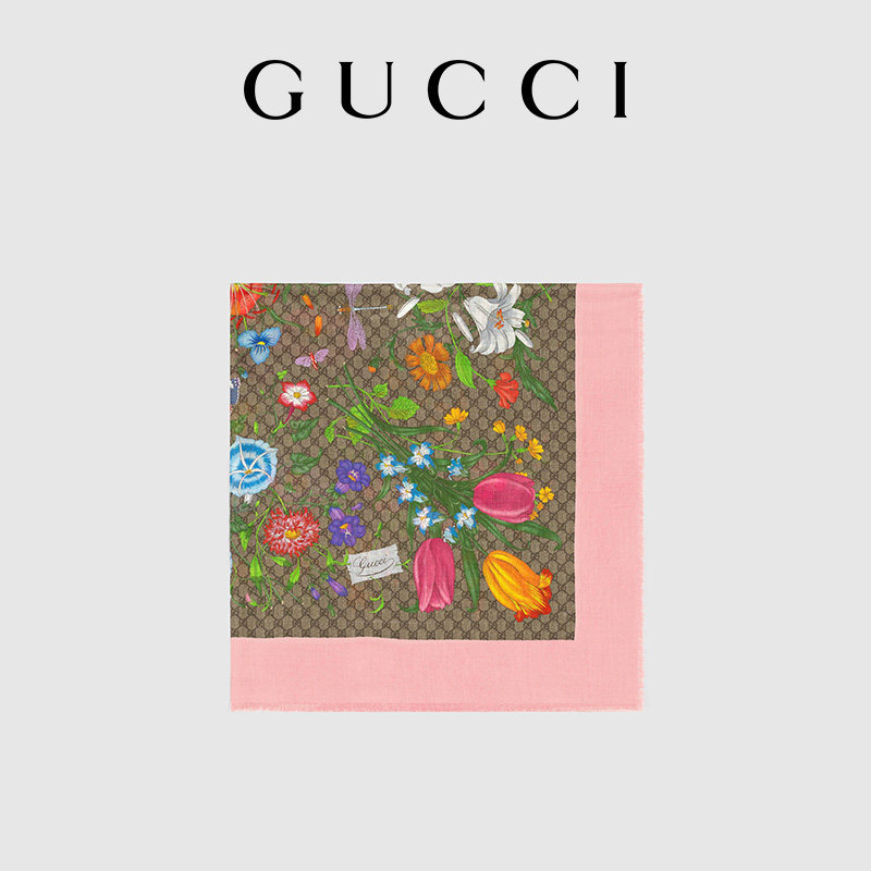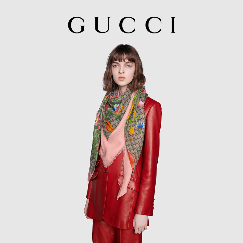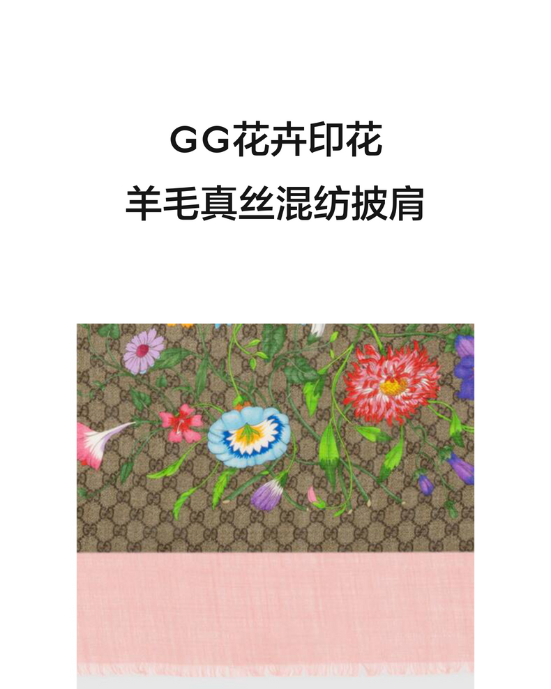 GUCCI古驰GG花卉印花羊毛真丝混纺披肩