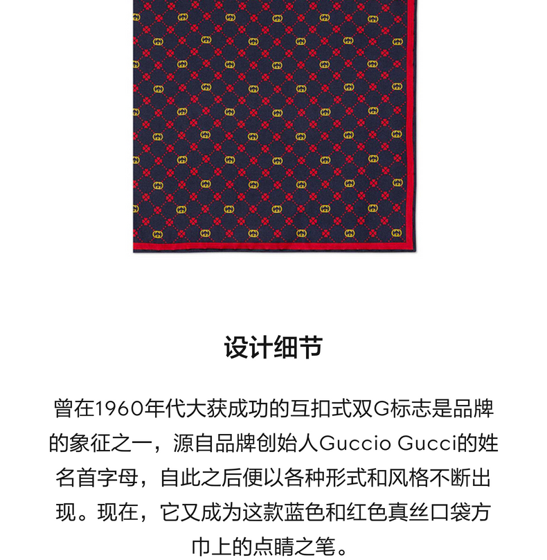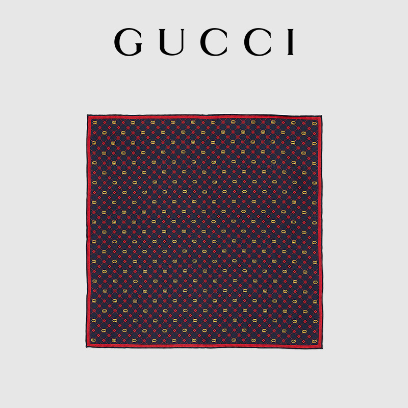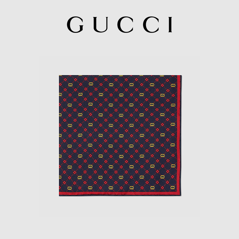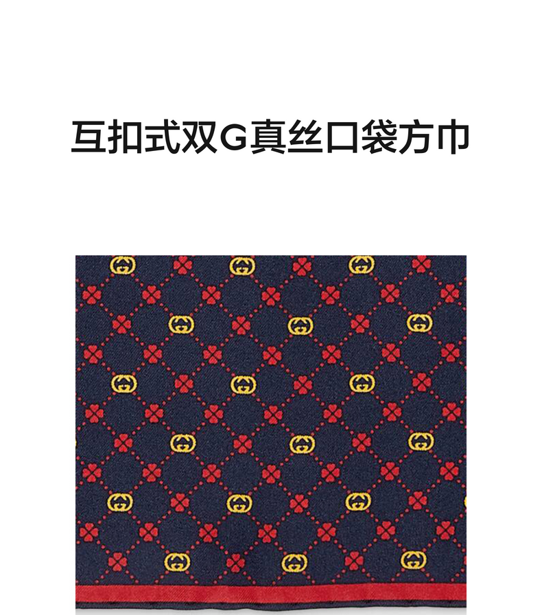 [新品]GUCCI古驰互扣式双G真丝口袋方巾