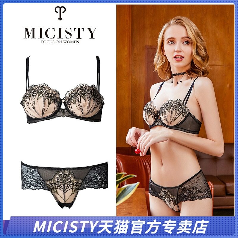 Micisty/密汐皙迪内衣女夏季薄款小胸聚拢文胸套装羽夜款性感胸罩