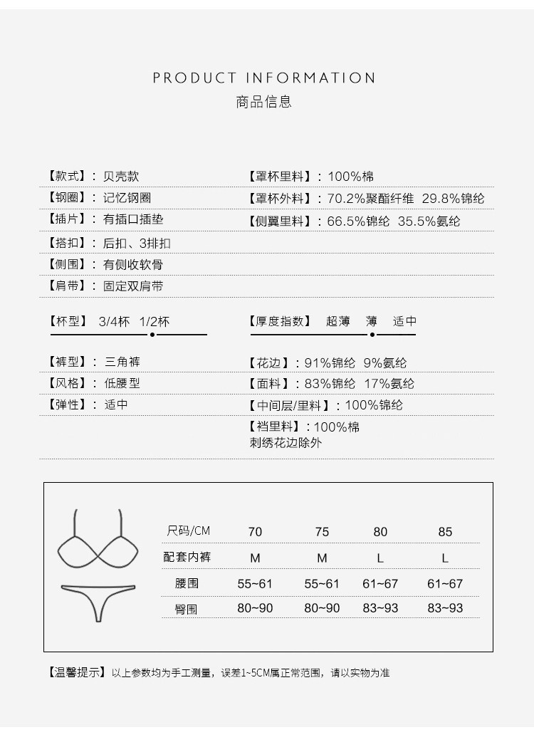 Micisty密汐皙迪贝壳款内衣女小胸聚拢文胸套装胸罩夏季薄款性感