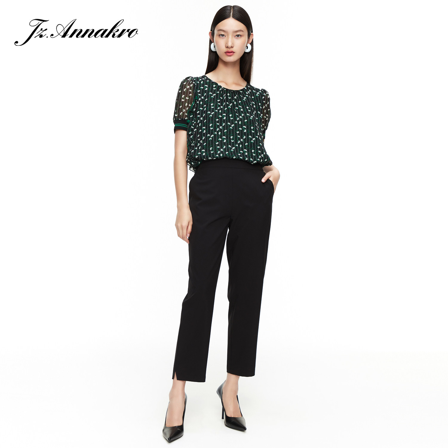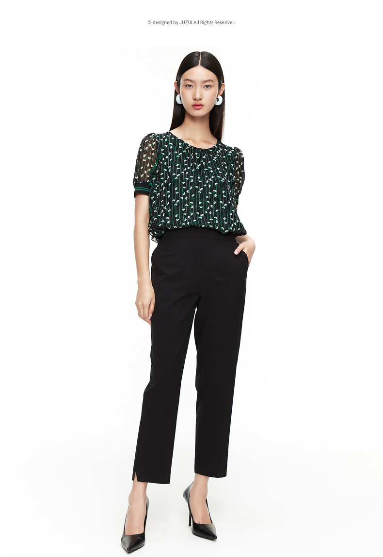 首页 > 玖姿专区 > 玖姿服饰 > 玖姿2021夏季新款安娜蔻系列黑色通勤时尚款显瘦哈伦女休闲裤