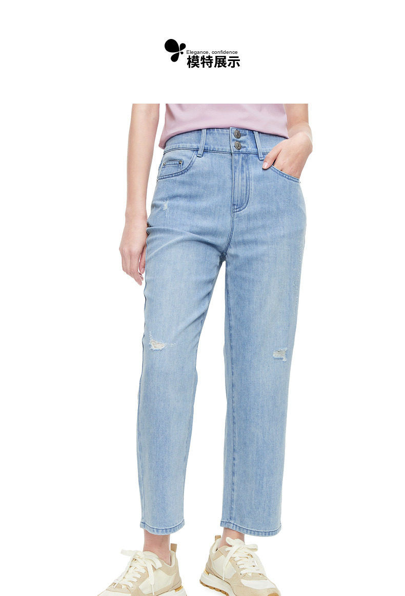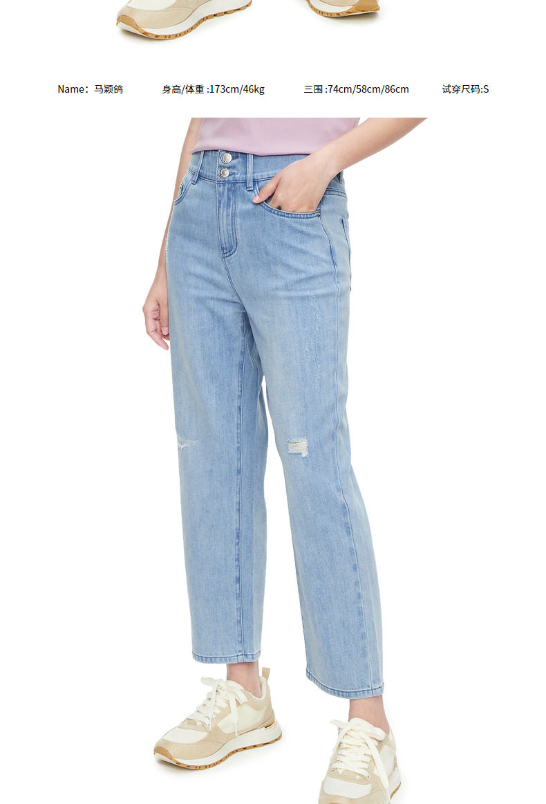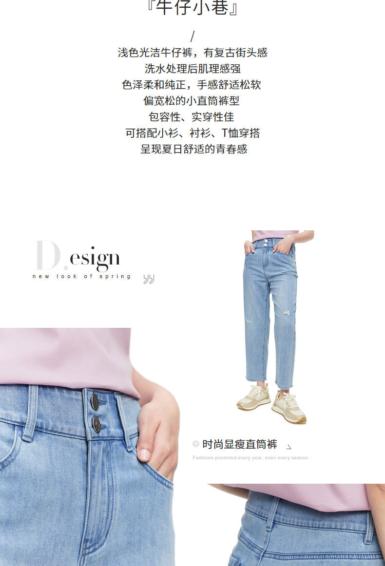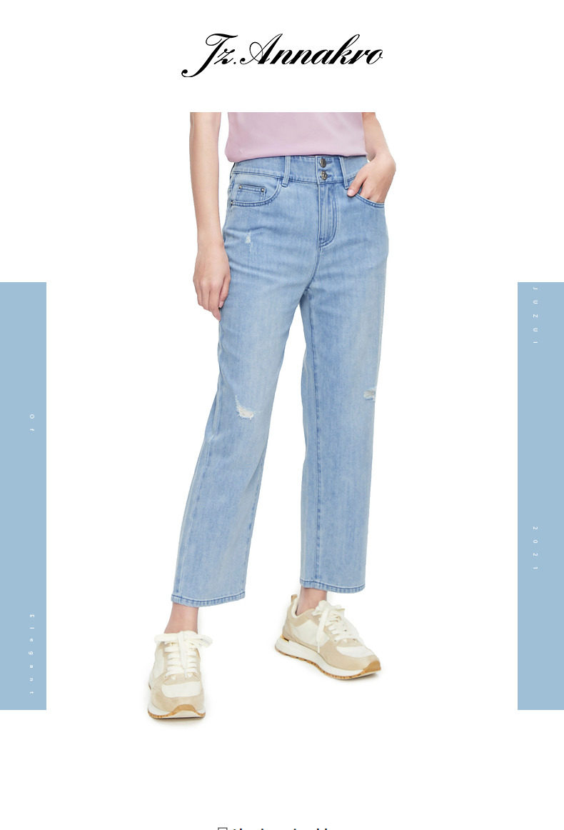 首页 > 玖姿专区 > 玖姿服饰 > 玖姿2021夏季新款安娜蔻系列蓝色高腰显瘦水洗九分直筒女牛仔裤