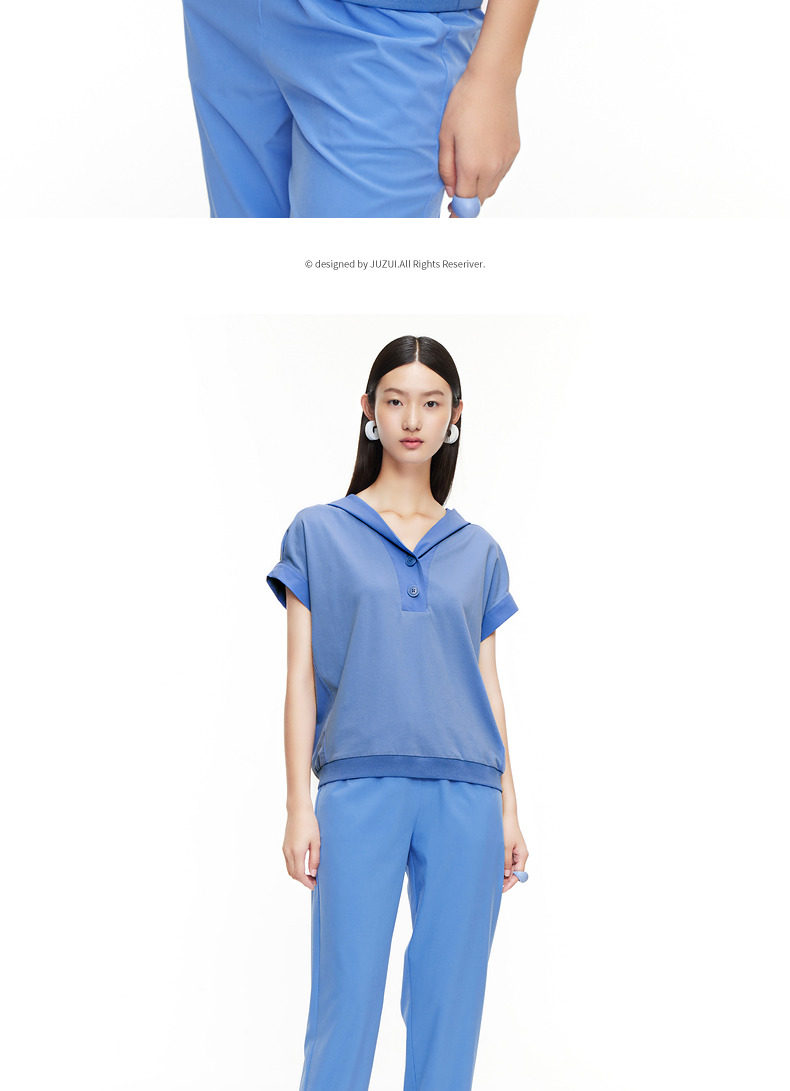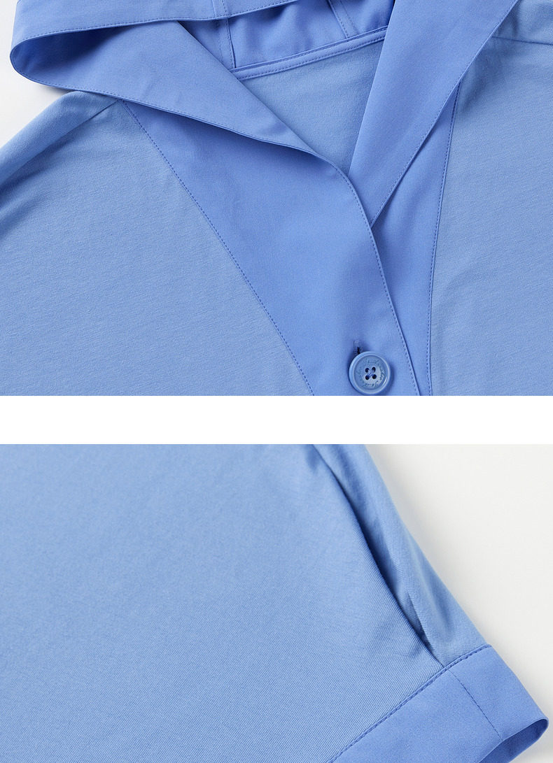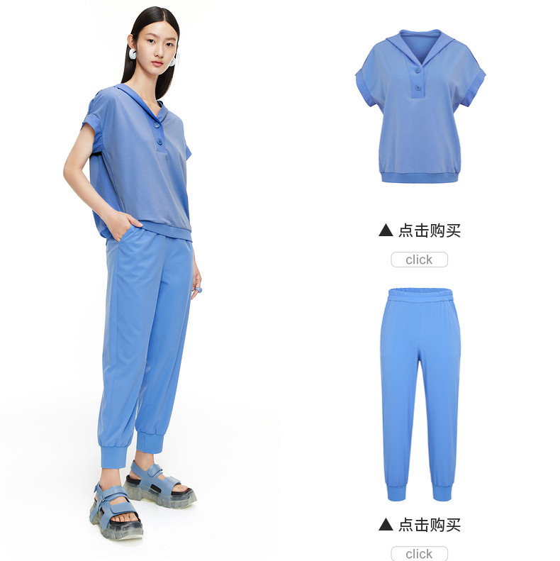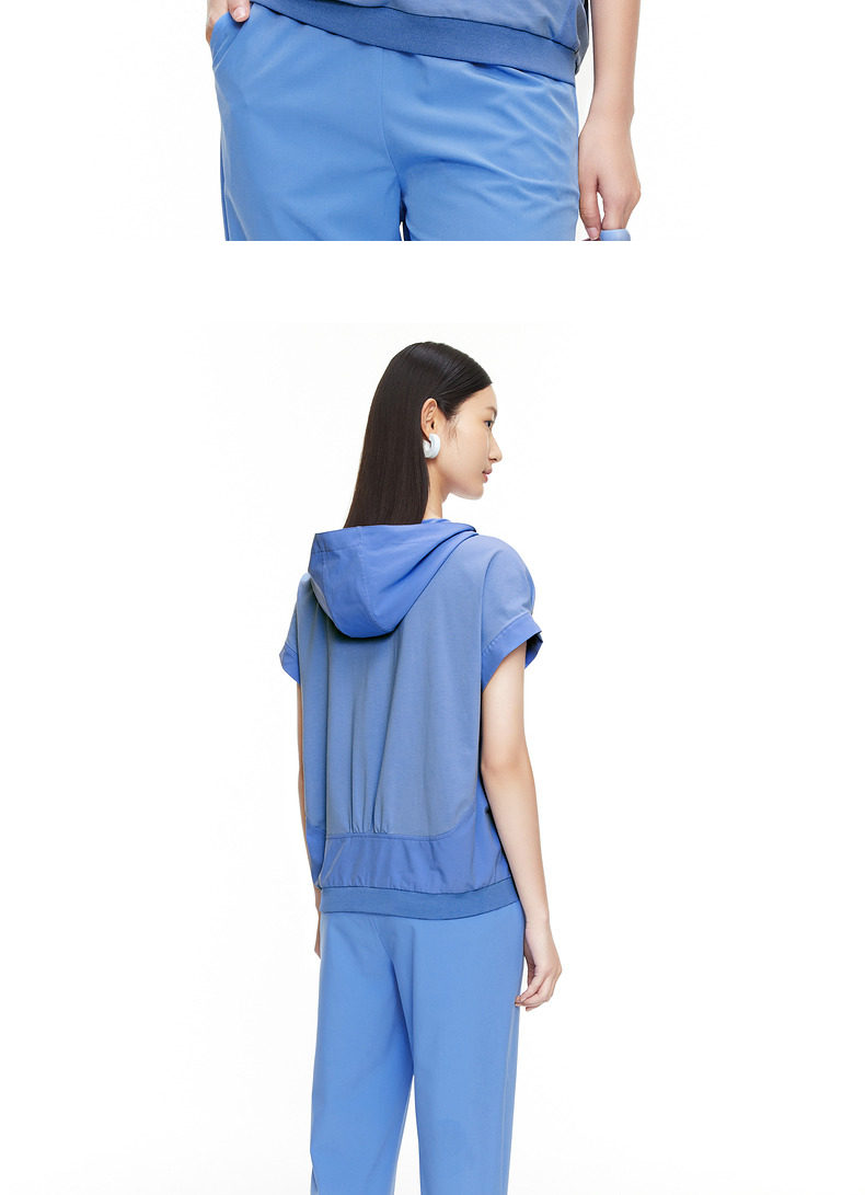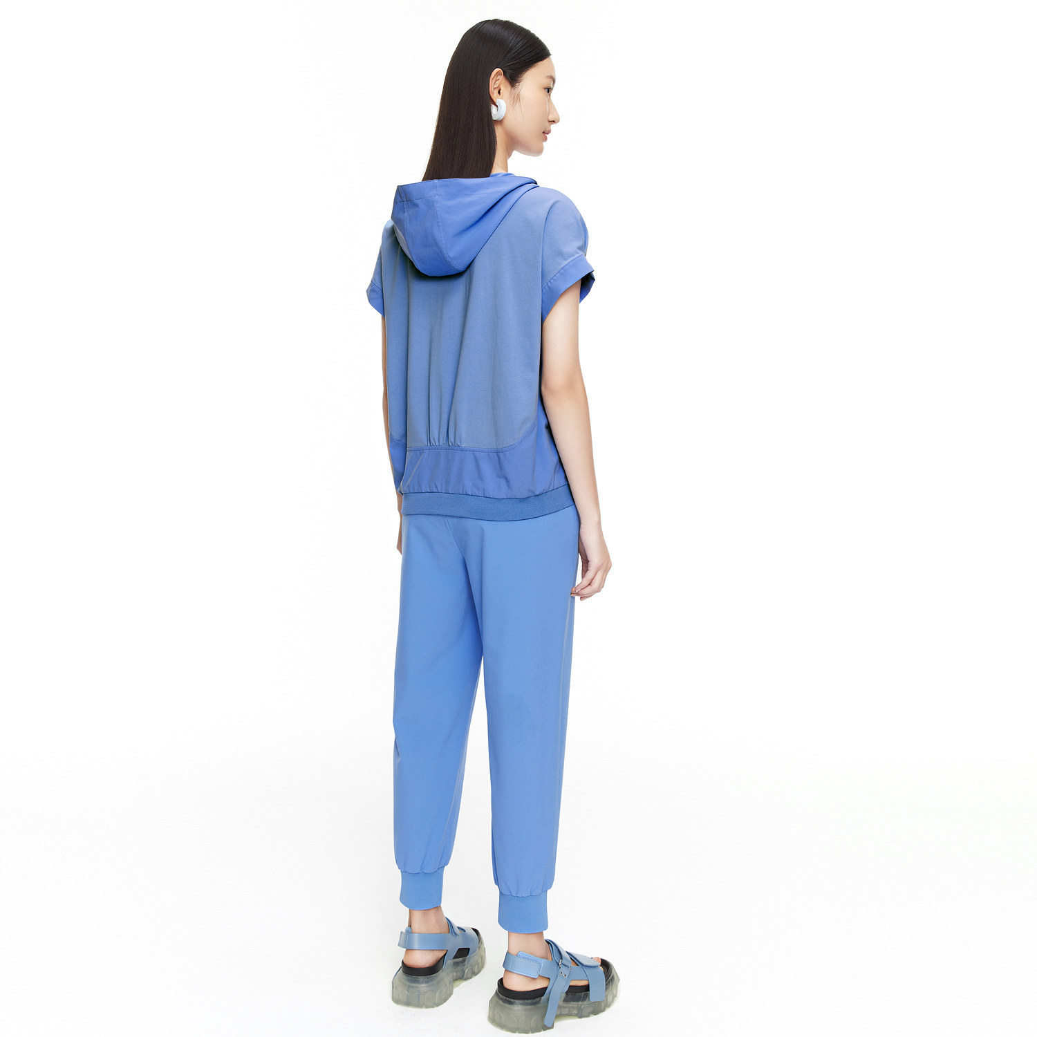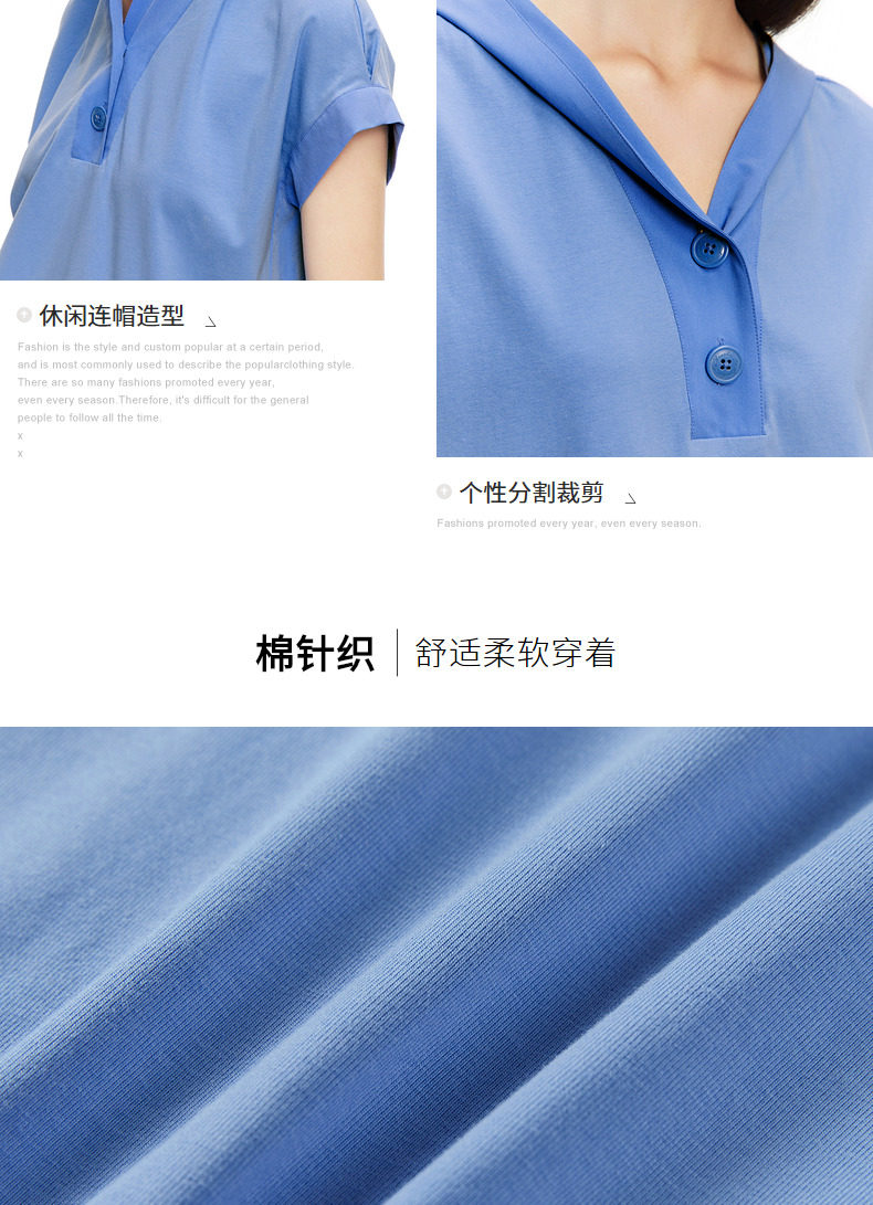 首页 > 玖姿专区 > 玖姿服饰 > 玖姿2021夏季新款安娜蔻系列蓝色连帽宽松廓形运动休闲凉爽女T恤