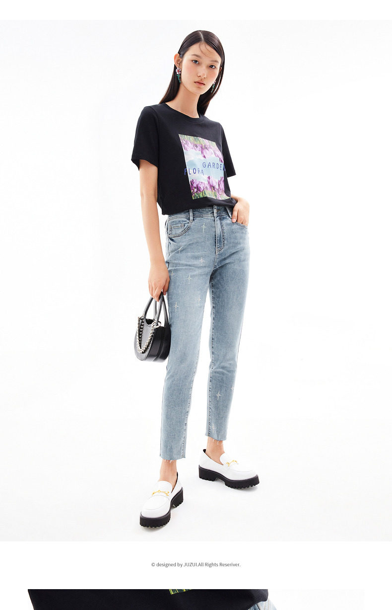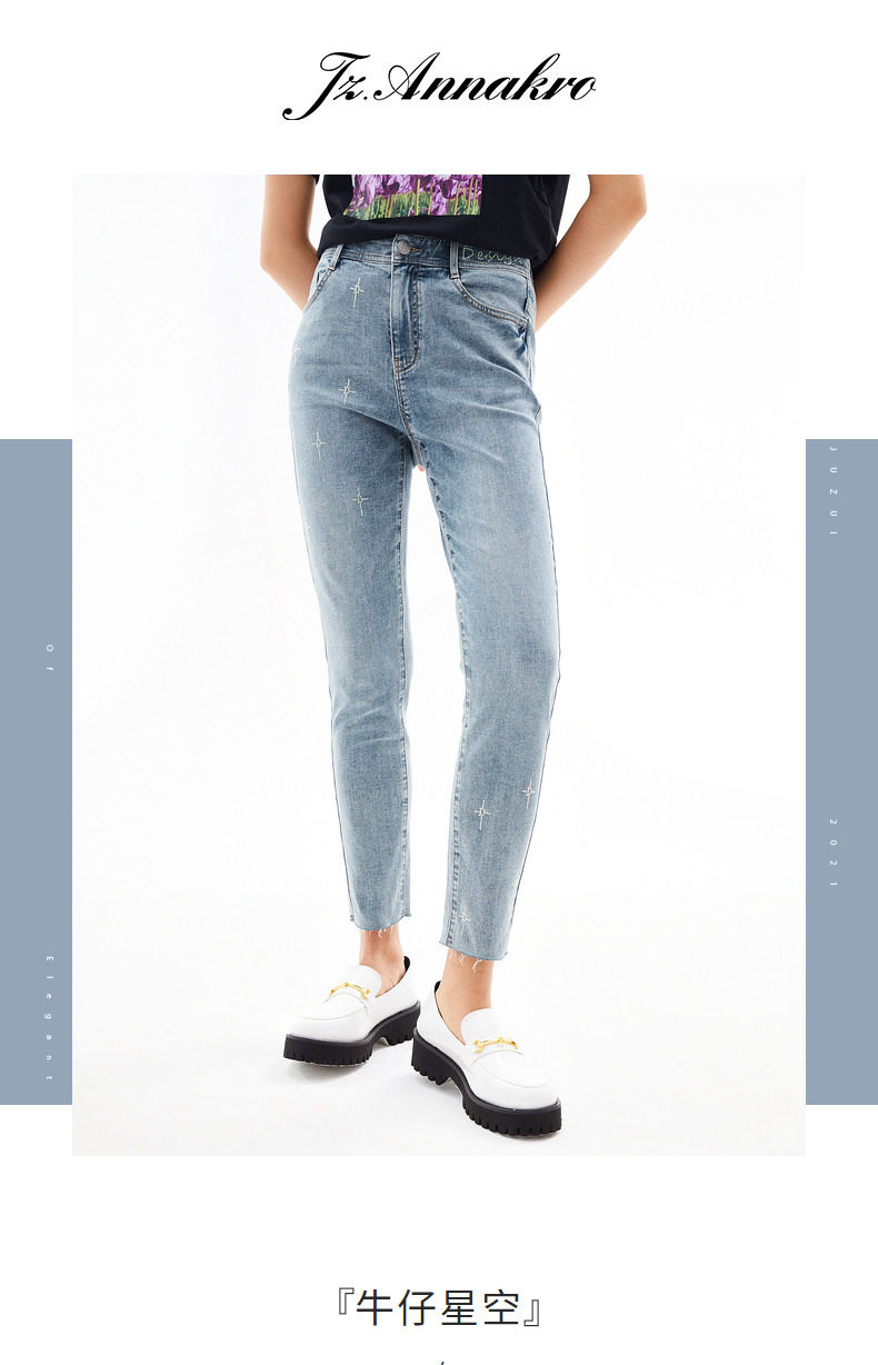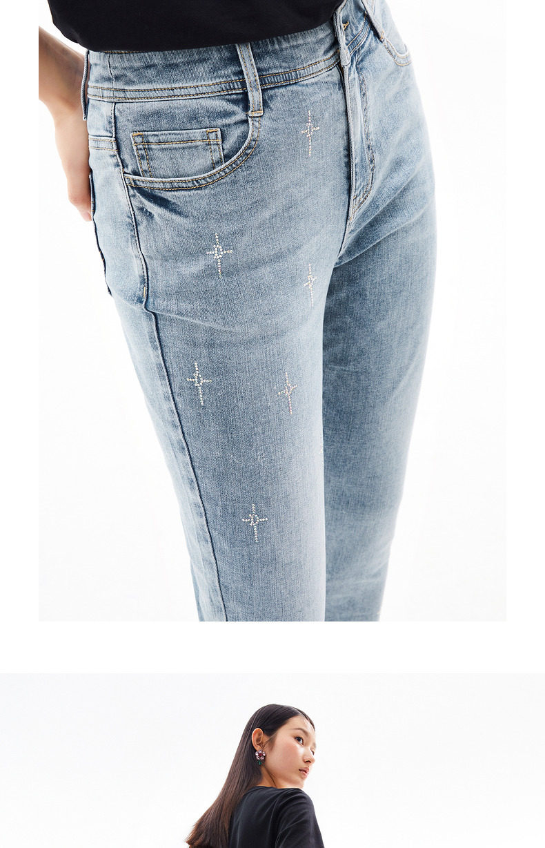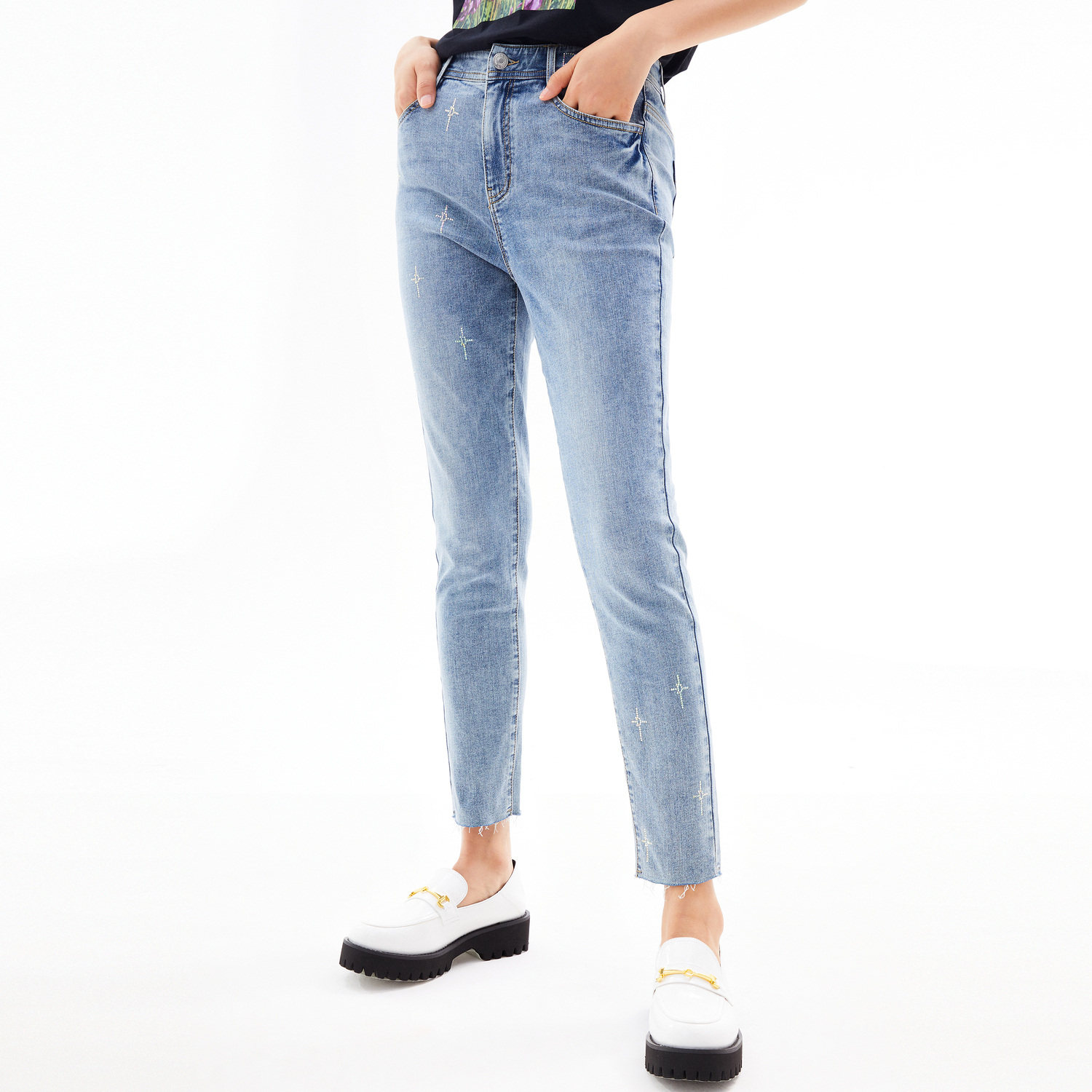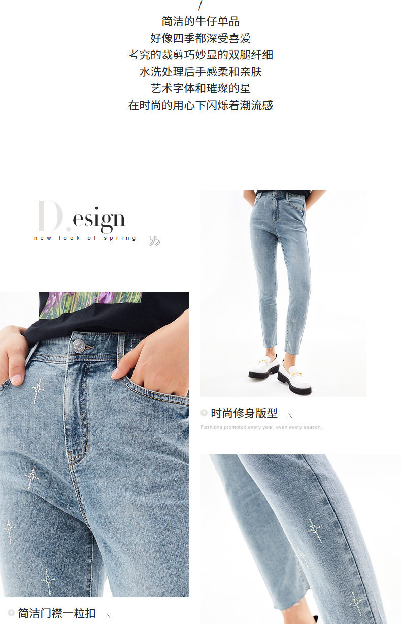首页 > 玖姿专区 > 玖姿服饰 > 玖姿2021夏季新款安娜蔻系列浅蓝水洗修身九分铅笔裤烫钻女牛仔裤