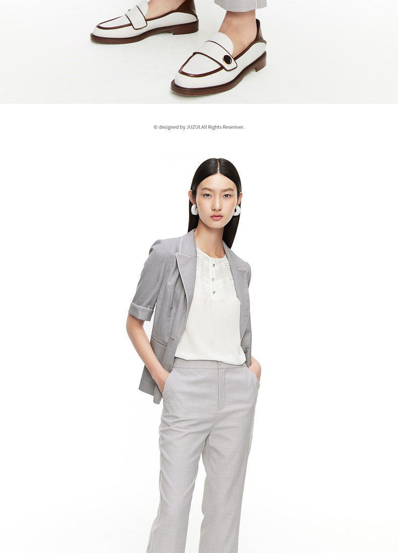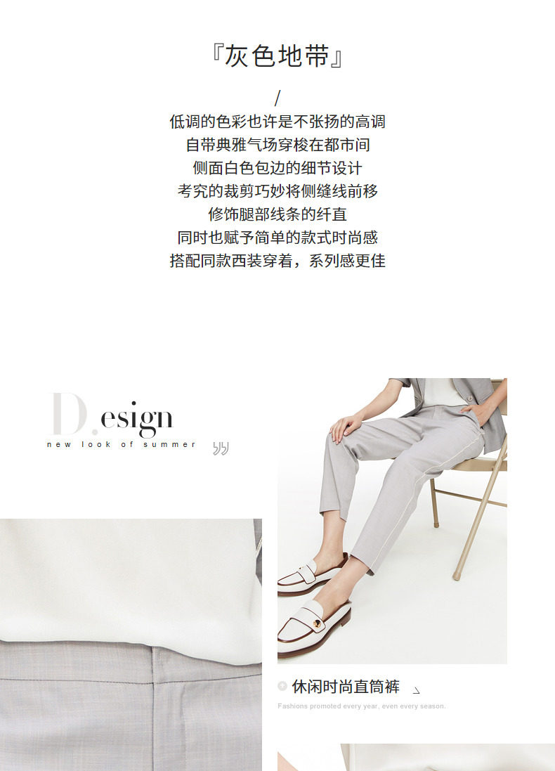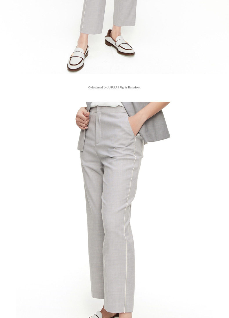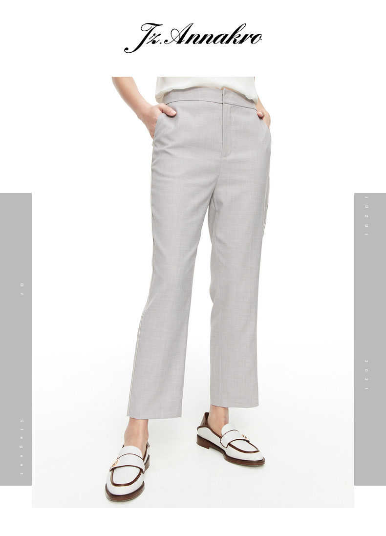 首页 > 玖姿专区 > 玖姿服饰 > 玖姿2021夏季新款安娜蔻系列浅灰色时尚通勤显瘦直筒九分女休闲裤