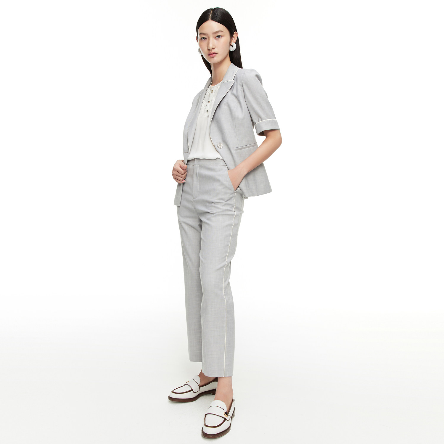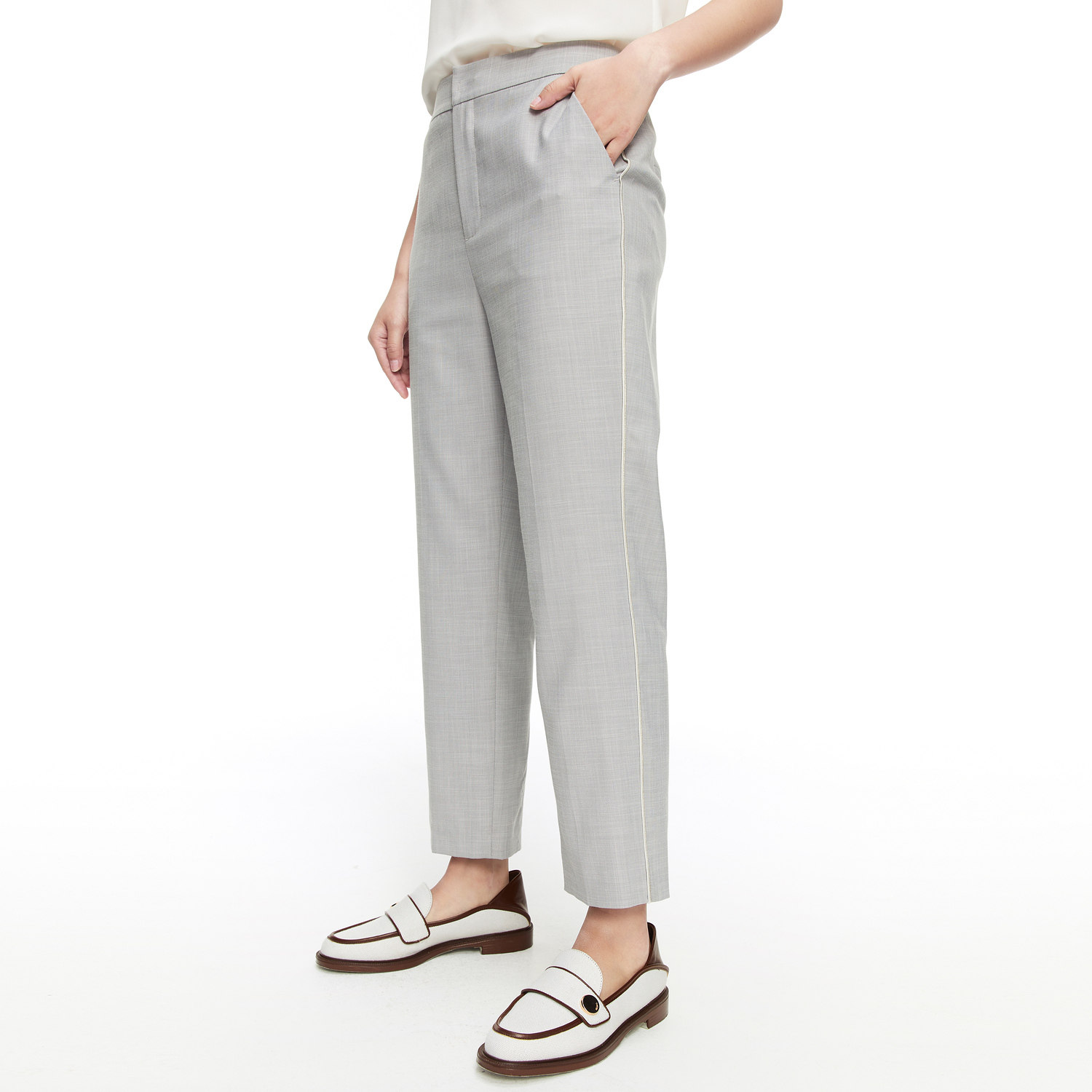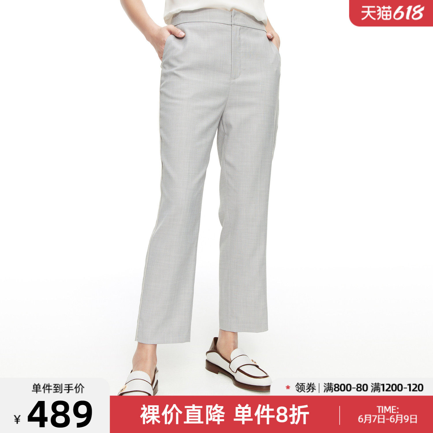 首页 > 玖姿专区 > 玖姿服饰 > 玖姿2021夏季新款安娜蔻系列浅灰色时尚通勤显瘦直筒九分女休闲裤