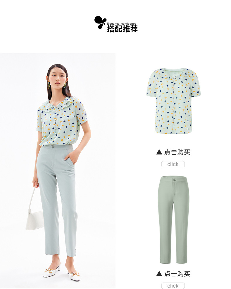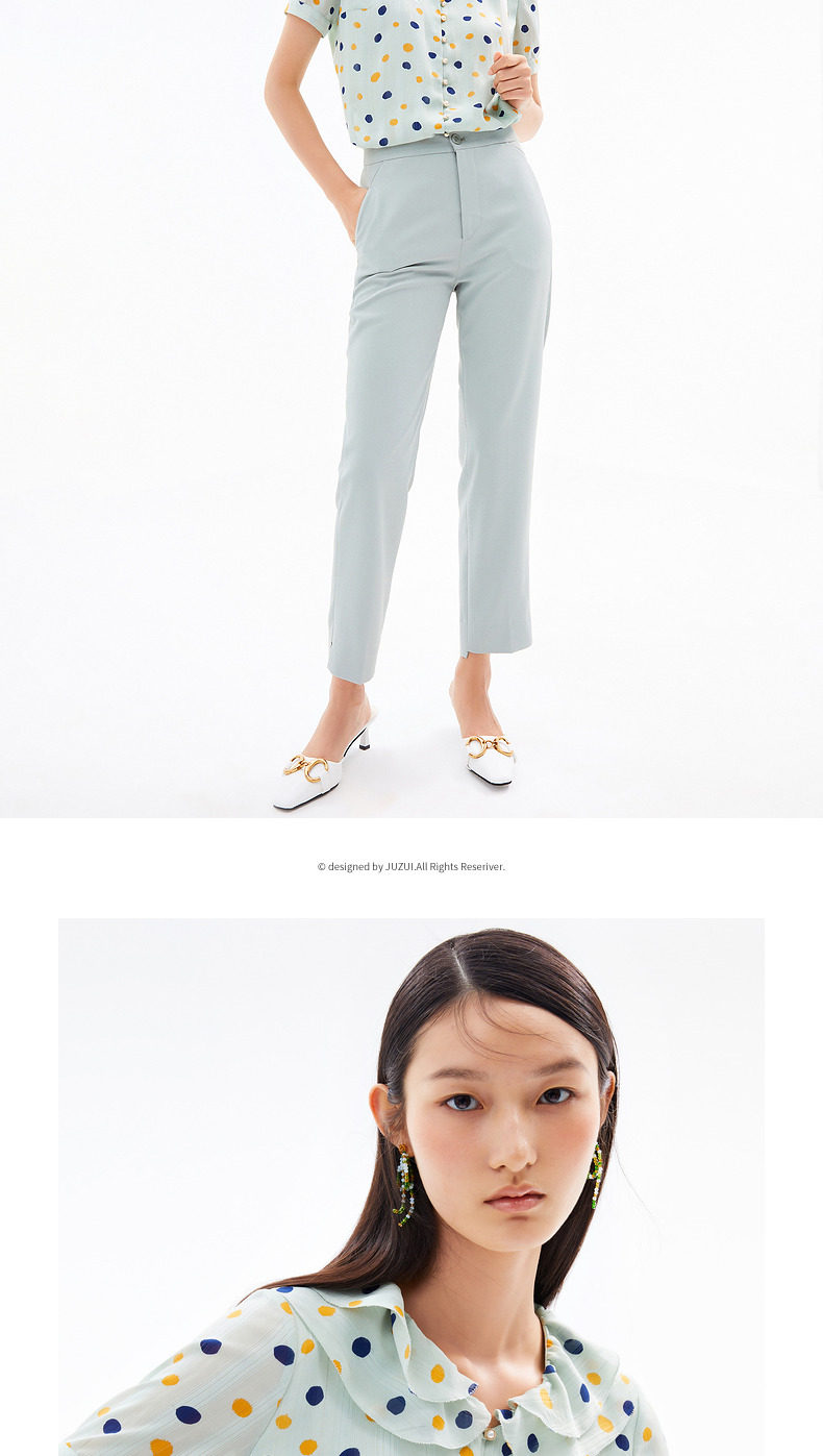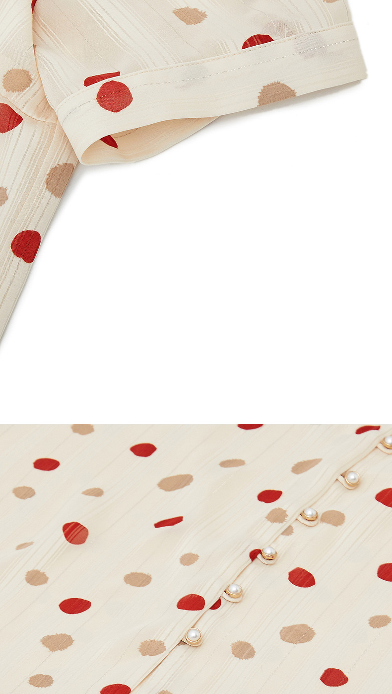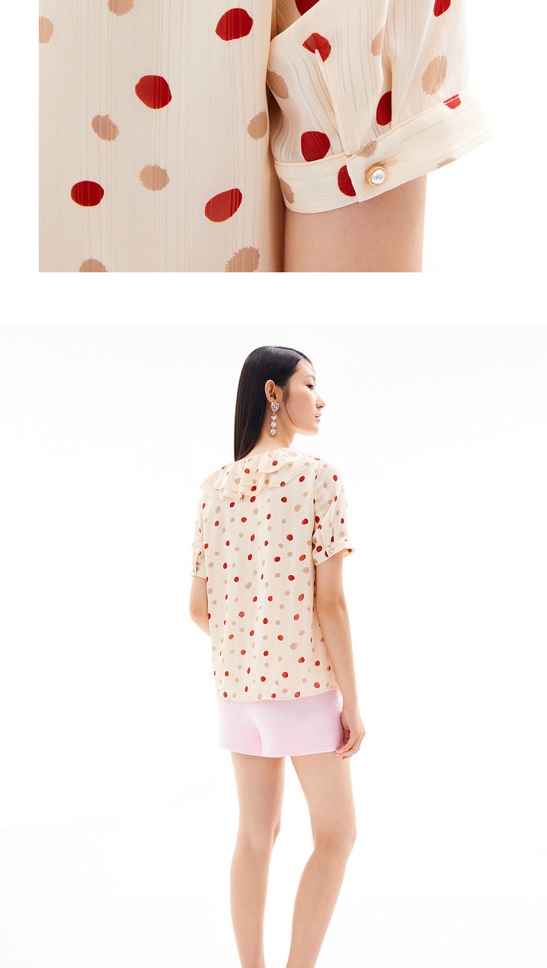 首页 > 玖姿专区 > 玖姿服饰 > 玖姿2021夏季新款安娜蔻系列彩色波点清新凉爽翻领女短袖雪纺衫