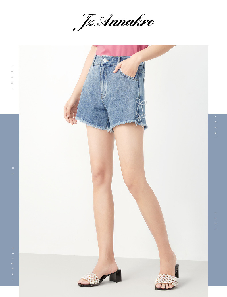 首页 > 玖姿专区 > 玖姿服饰 > 玖姿2021夏季新款安娜蔻系列浅蓝阔腿显瘦蝴蝶结少女感牛仔短裤