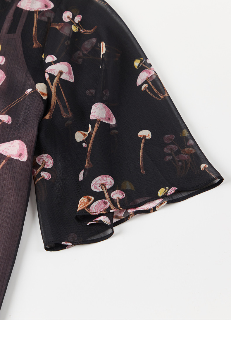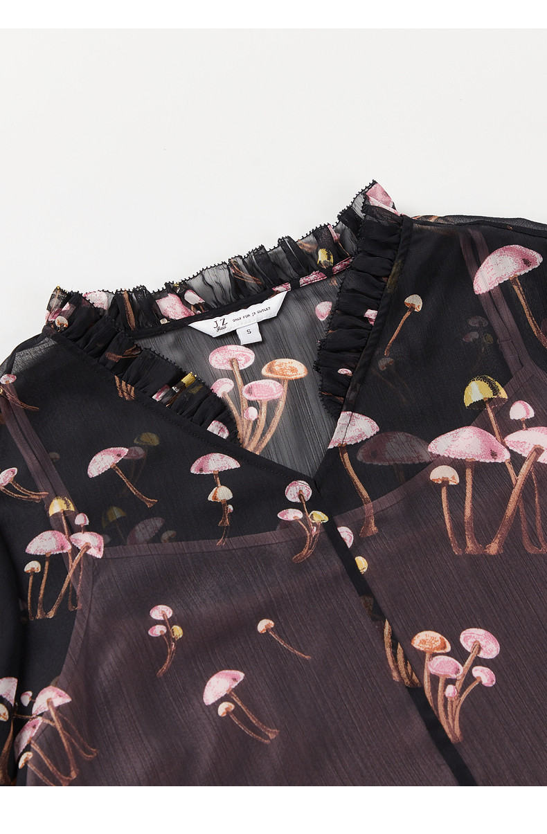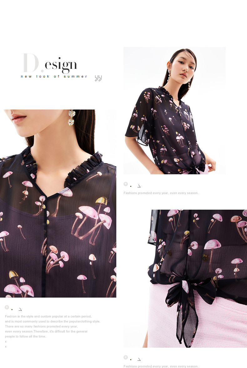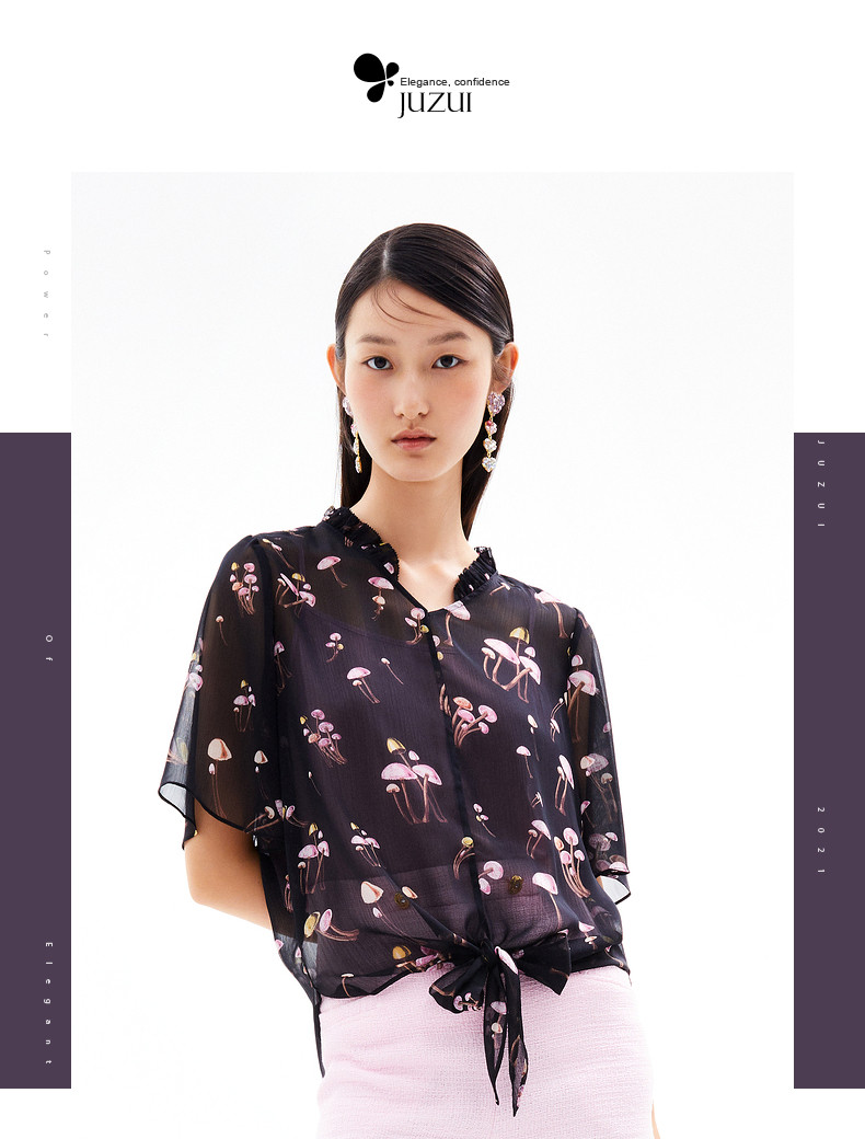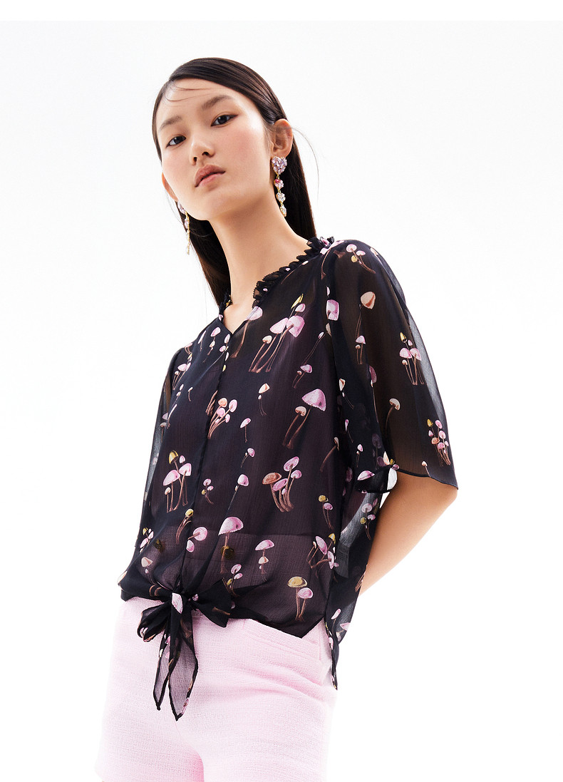 首页 > 玖姿专区 > 玖姿服饰 > JUZUI/玖姿官方旗舰店2021夏季新款黑色趣味印花轻盈打结女雪纺衫