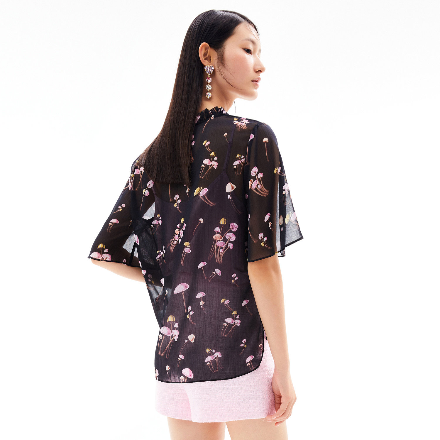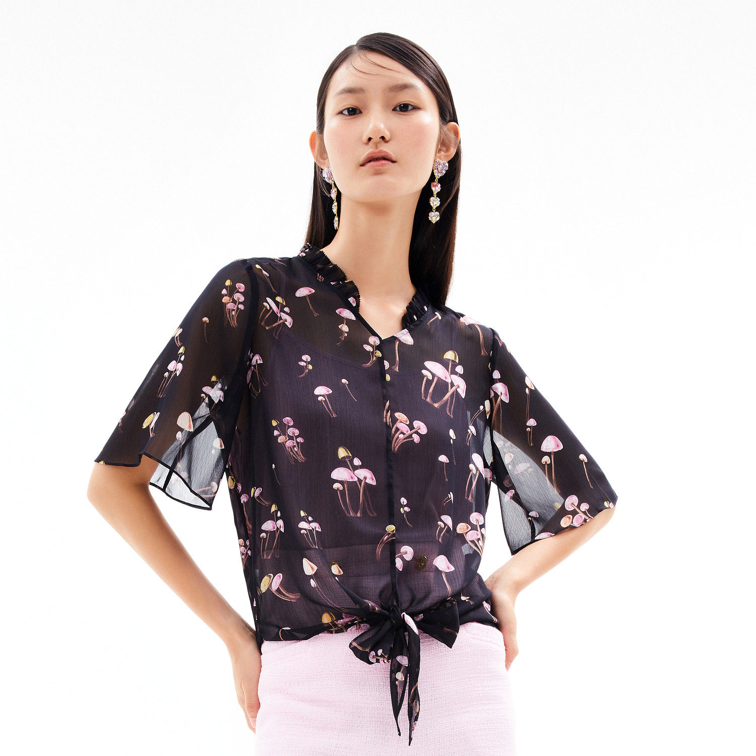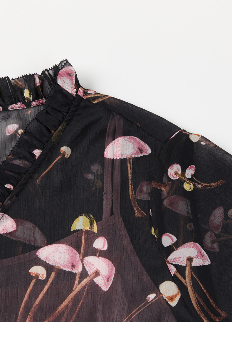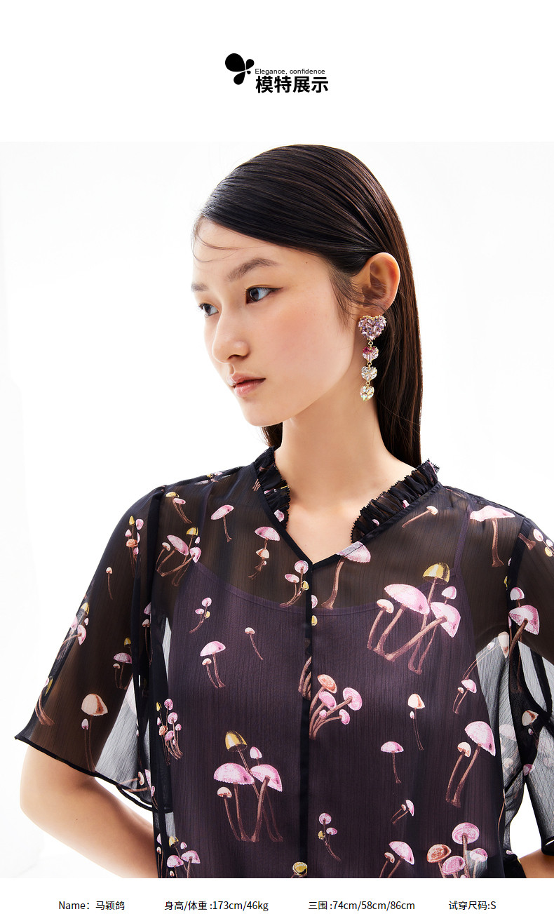 首页 > 玖姿专区 > 玖姿服饰 > JUZUI/玖姿官方旗舰店2021夏季新款黑色趣味印花轻盈打结女雪纺衫