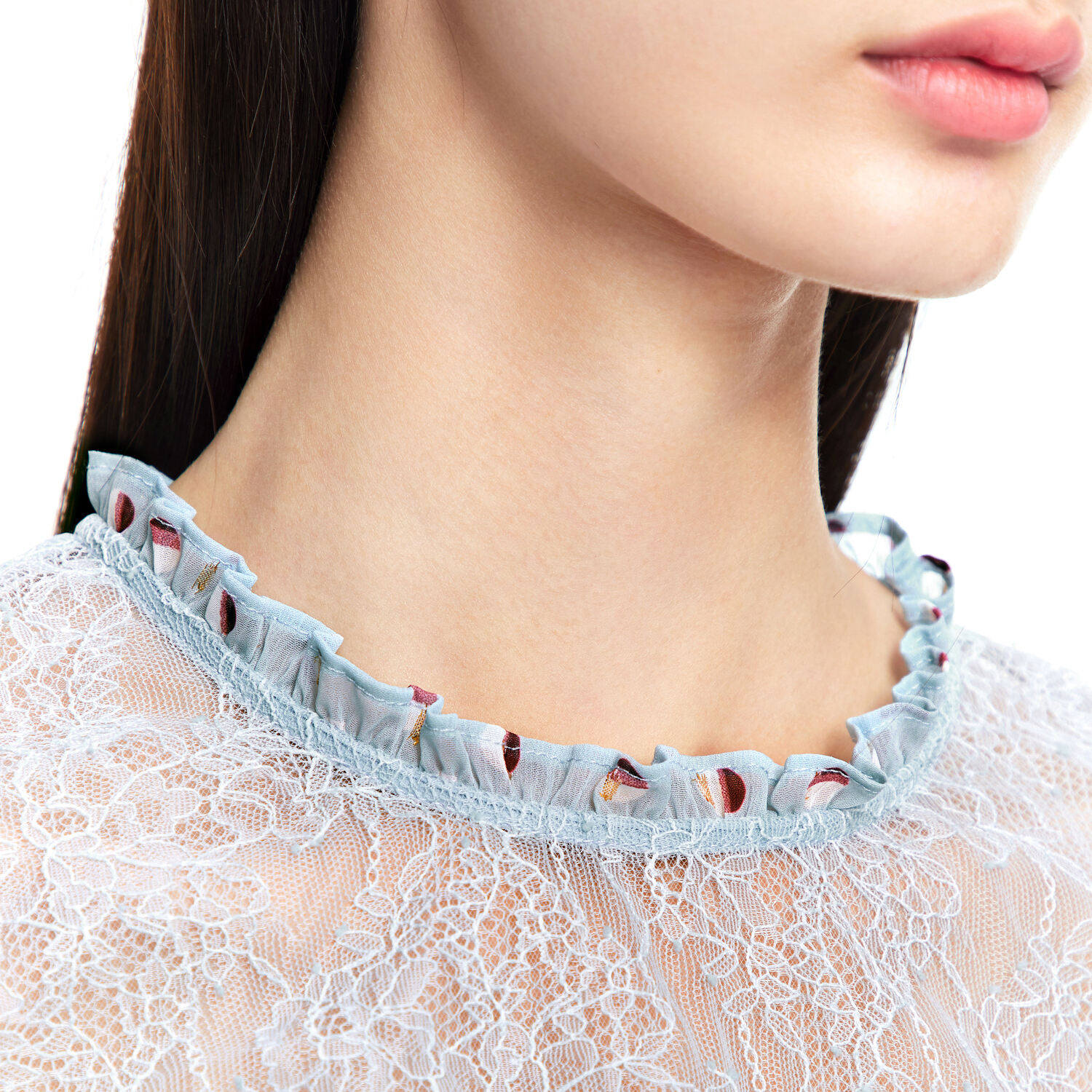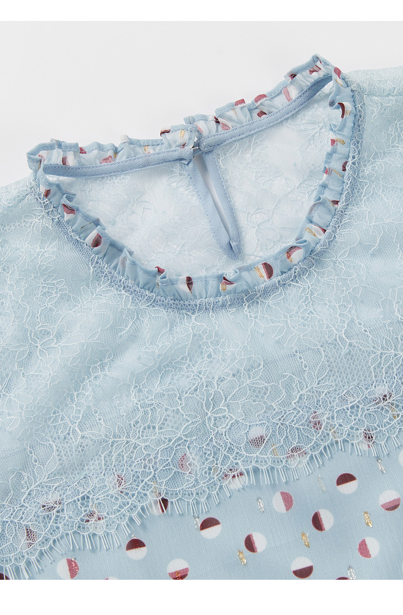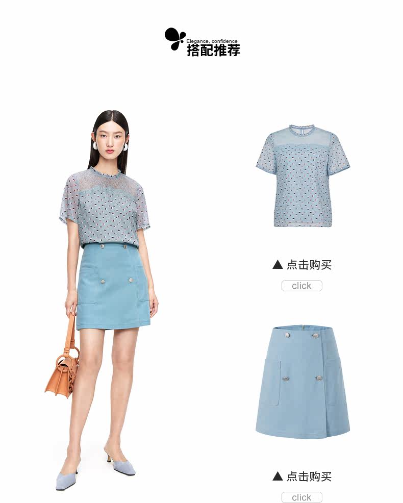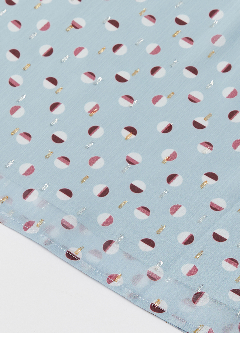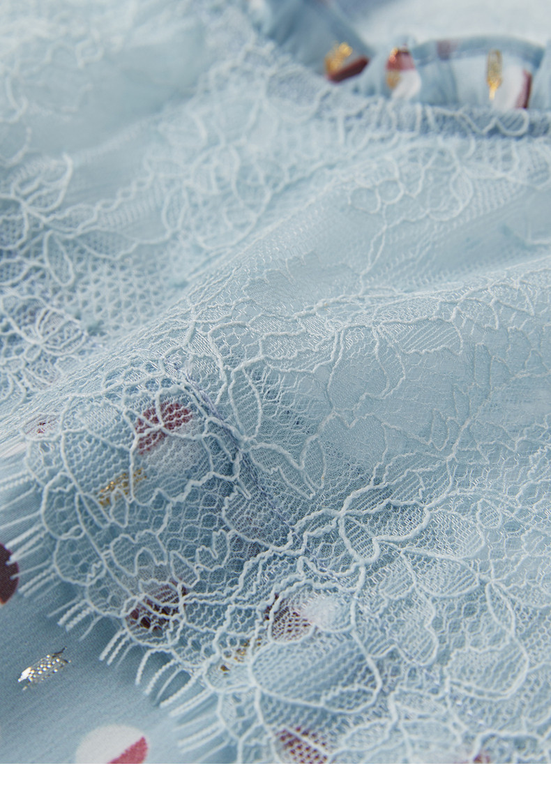 首页 > 玖姿专区 > 玖姿服饰 > 玖姿2021夏季新款安娜蔻系列浅蓝色蕾丝拼接时尚波点提花女雪纺衫