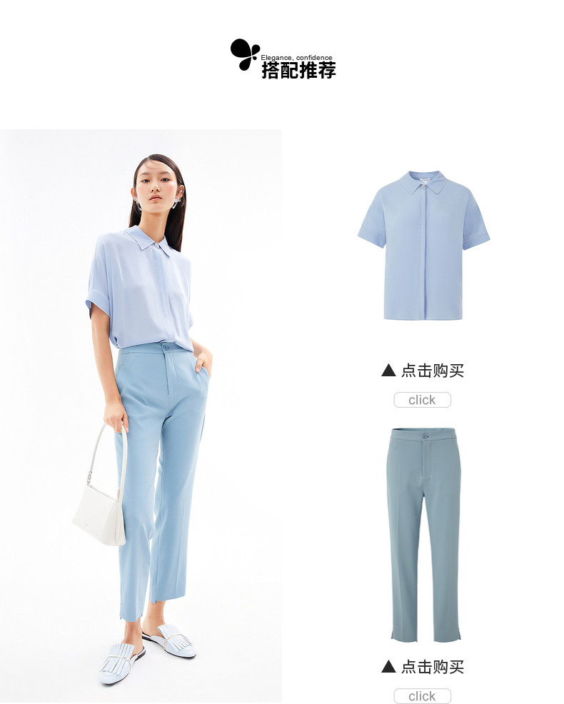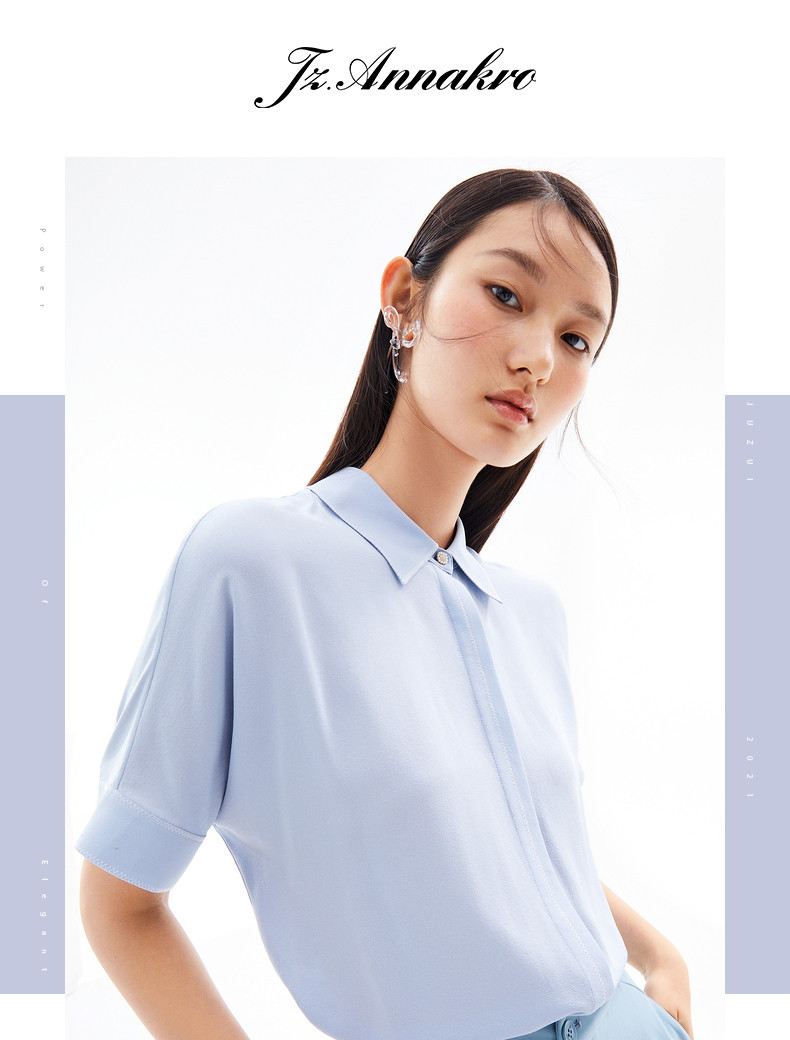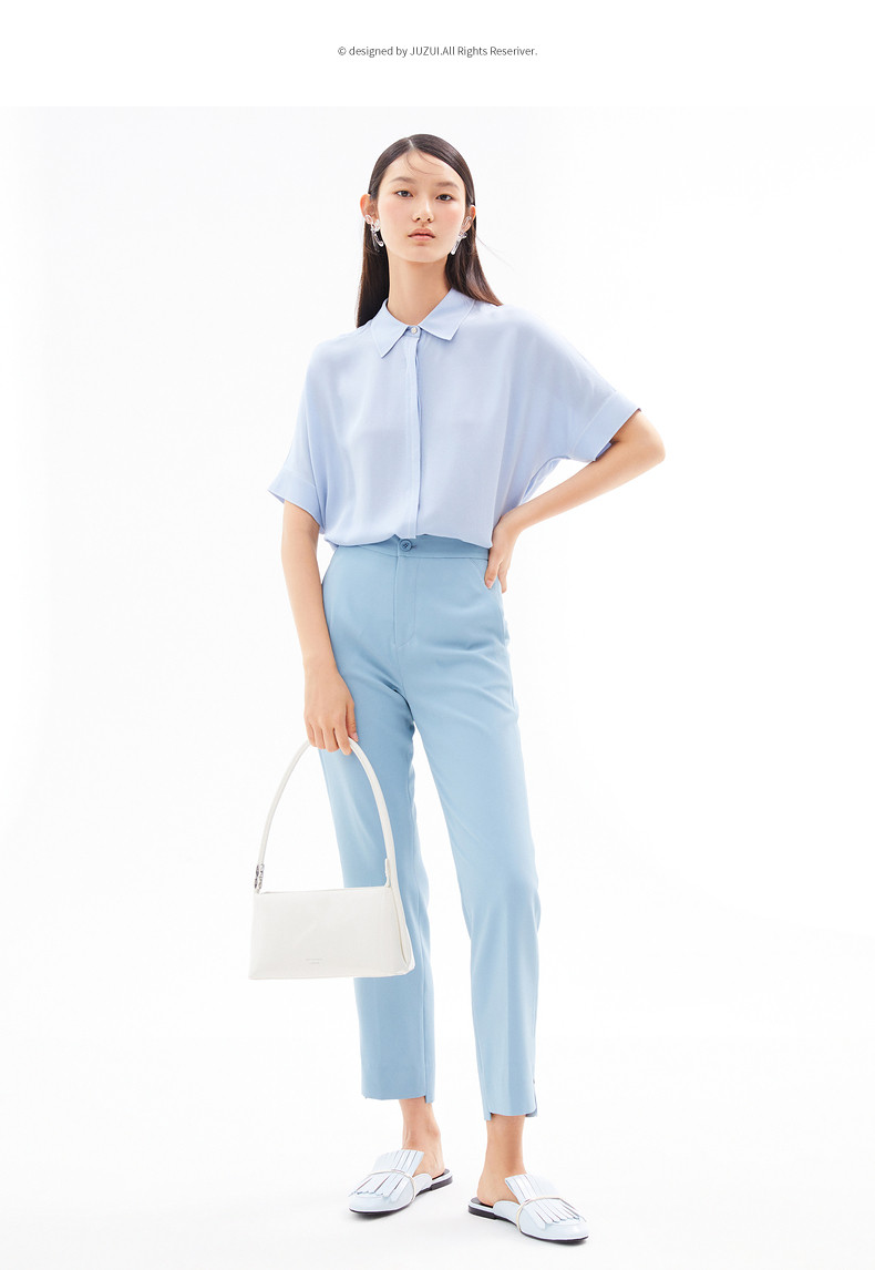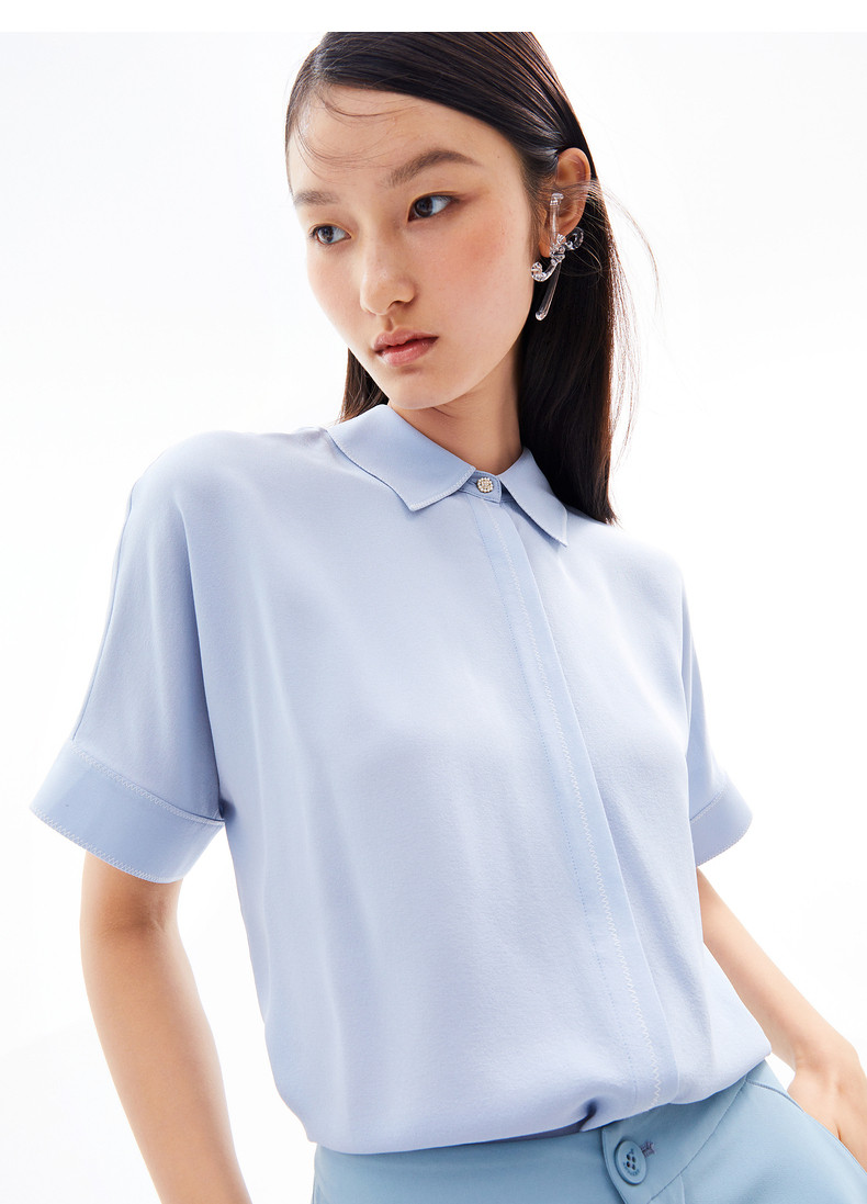 首页 > 玖姿专区 > 玖姿服饰 > 玖姿2021夏季新款安娜蔻系列浅蓝色真丝气质通勤简约短袖女衬衫