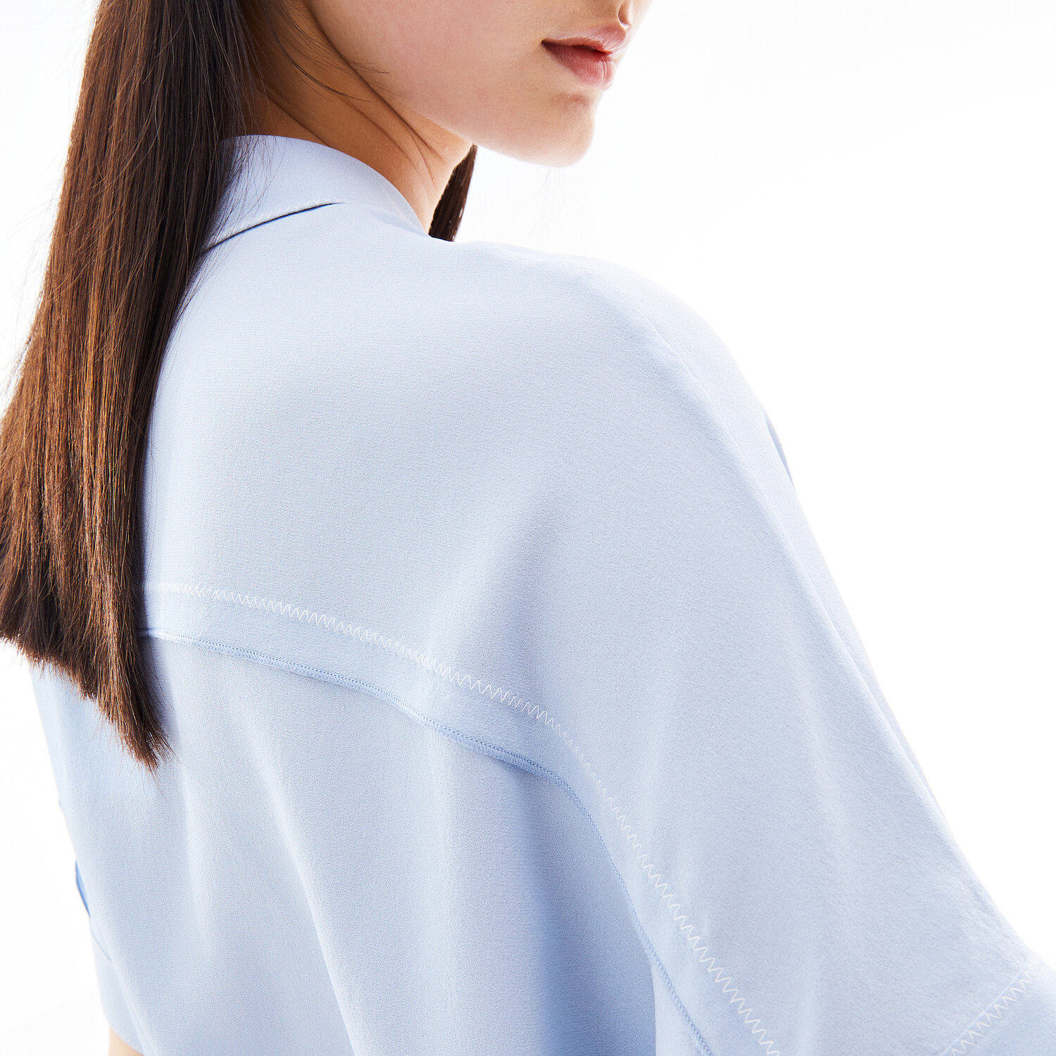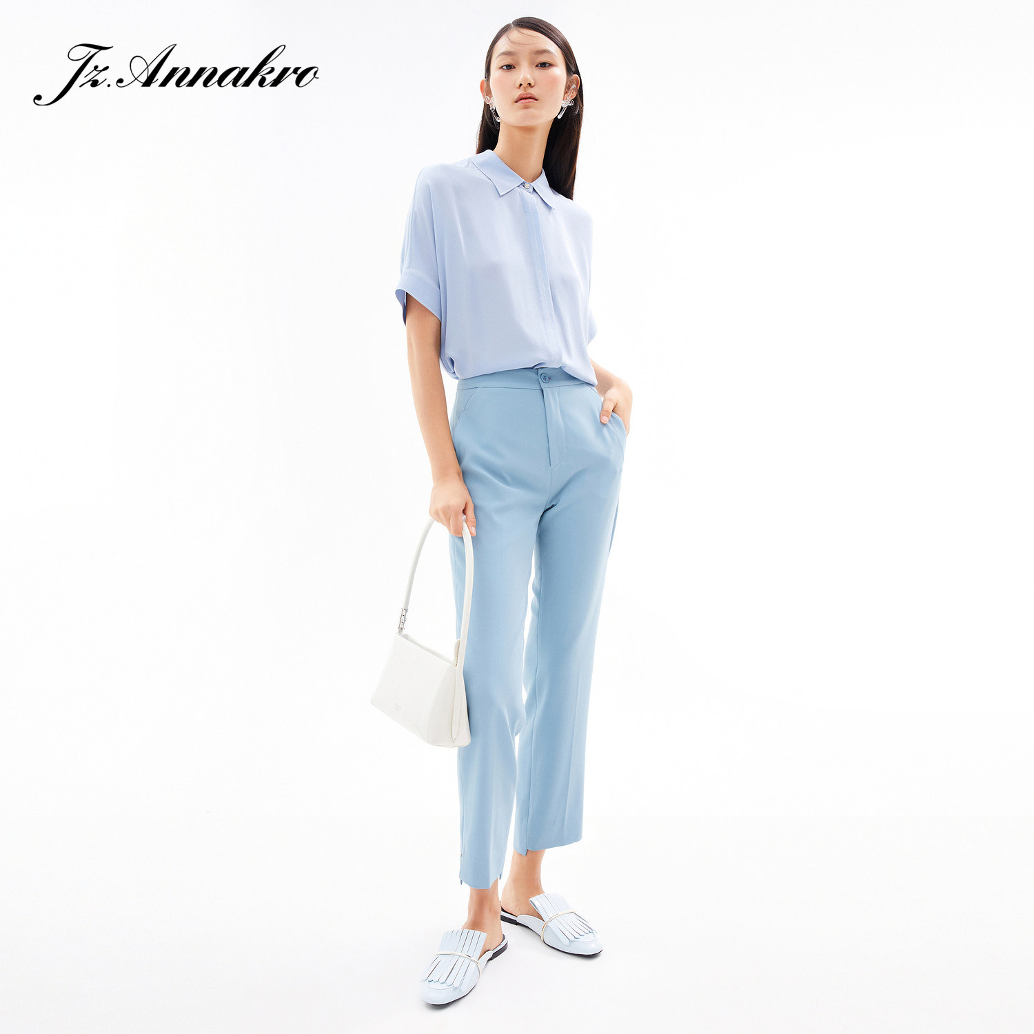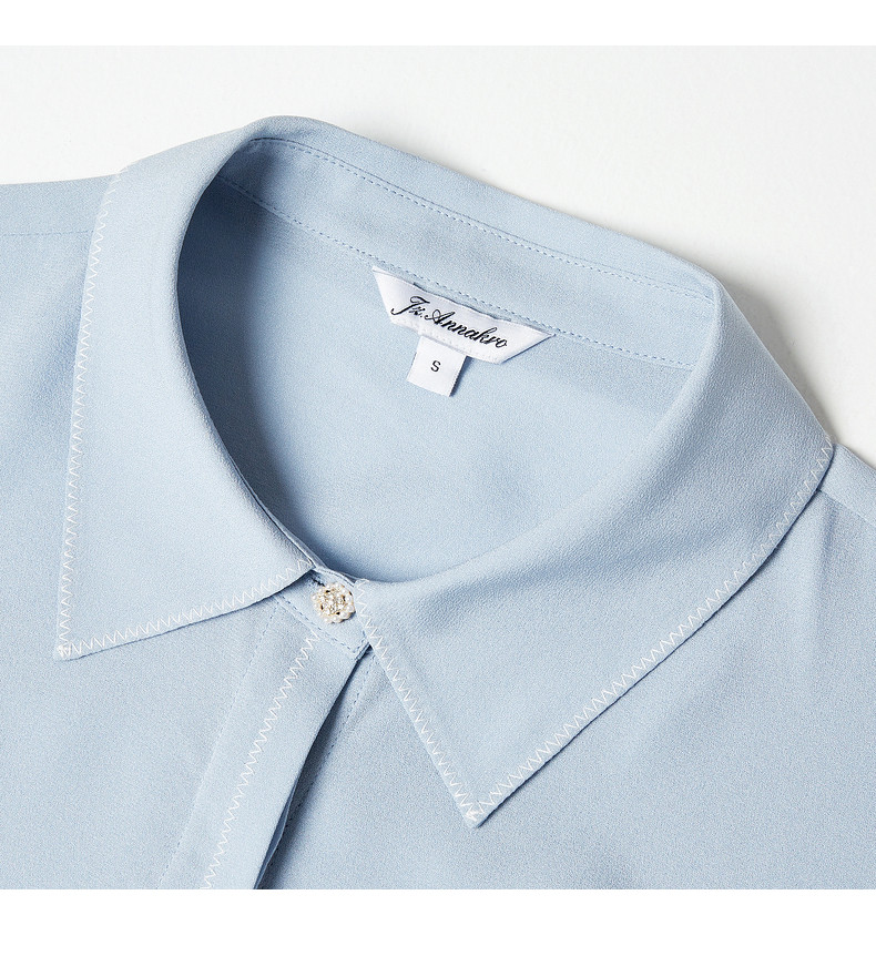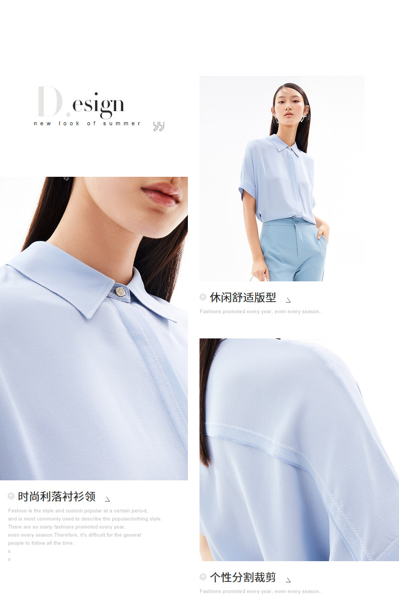 首页 > 玖姿专区 > 玖姿服饰 > 玖姿2021夏季新款安娜蔻系列浅蓝色真丝气质通勤简约短袖女衬衫