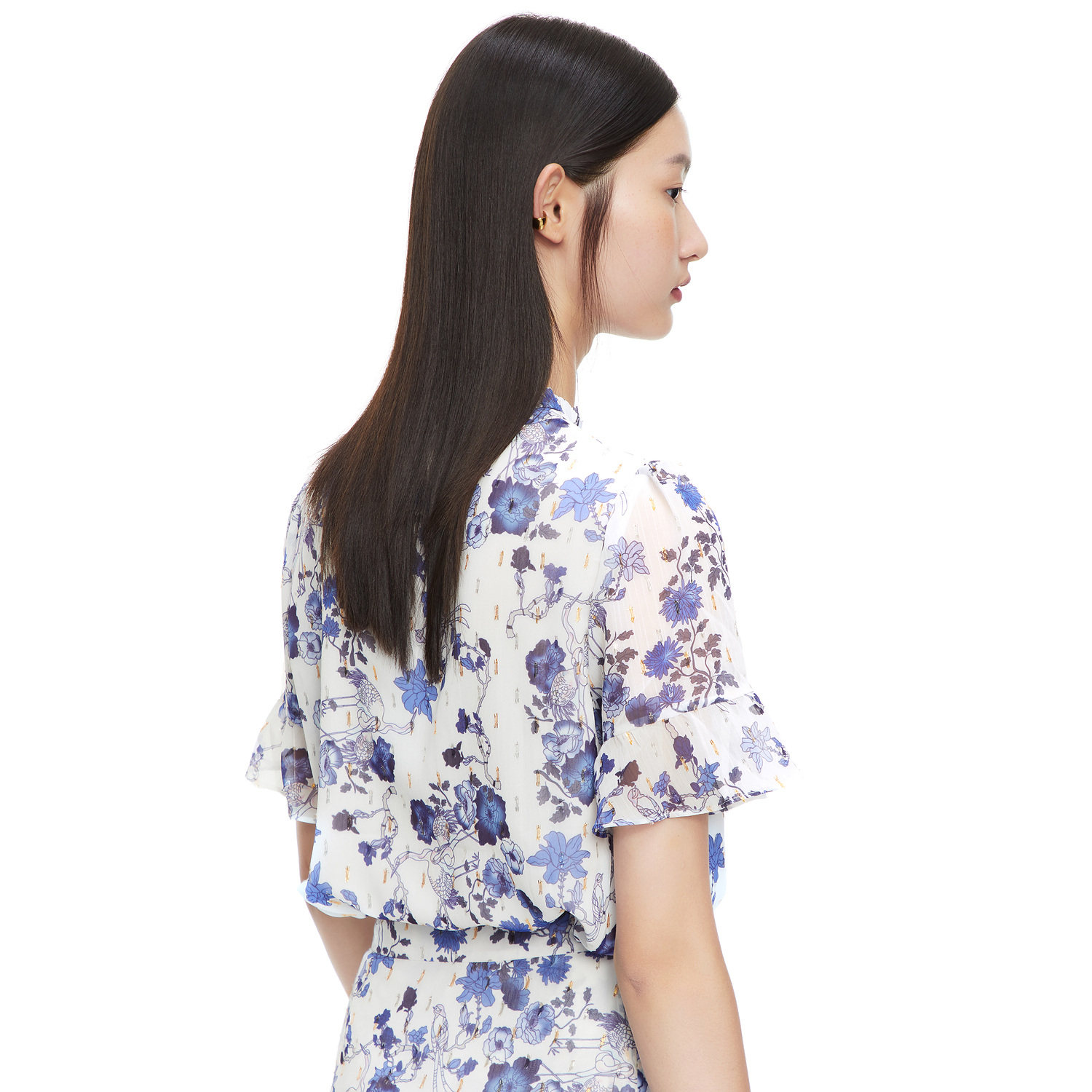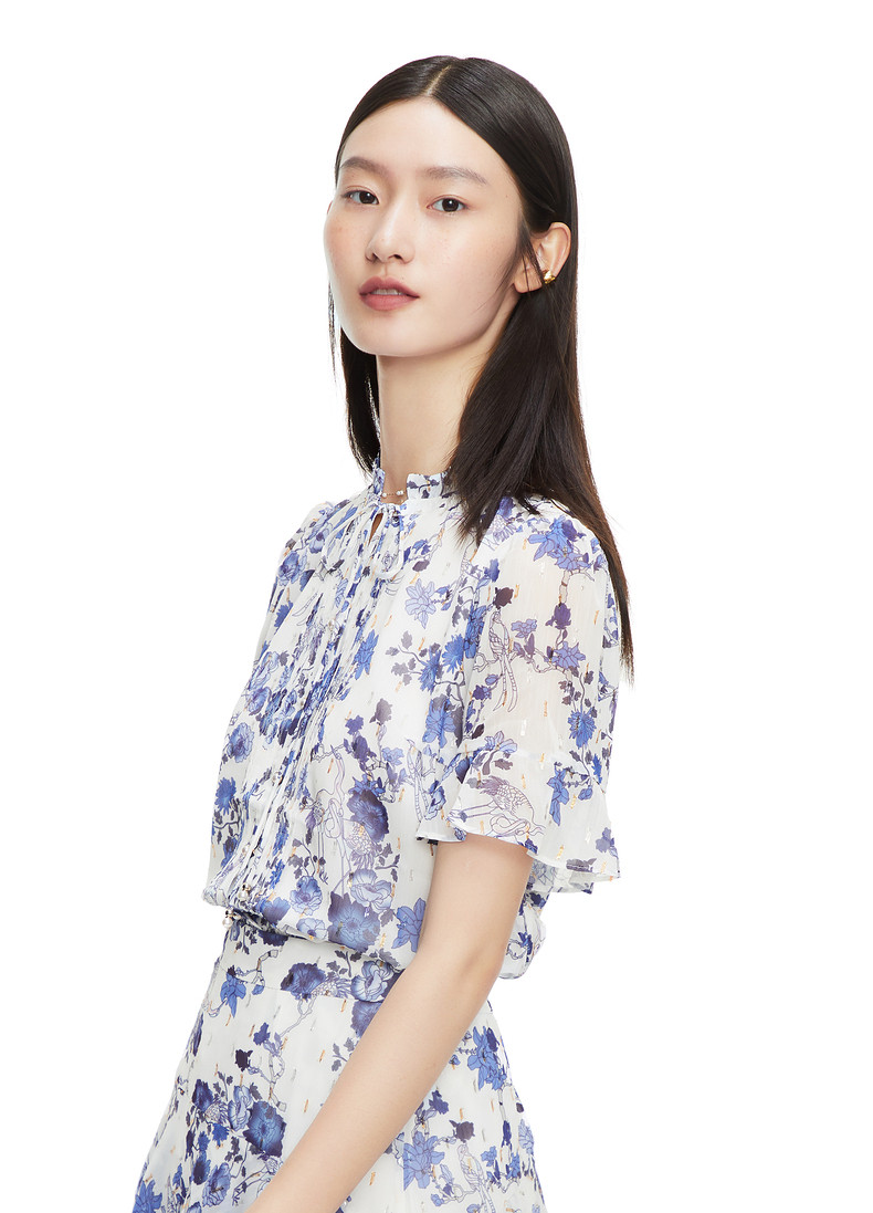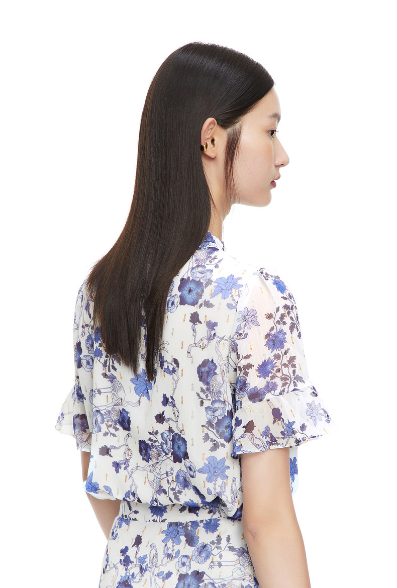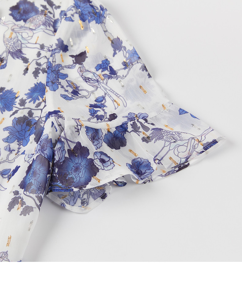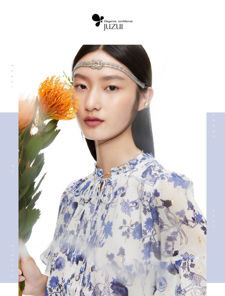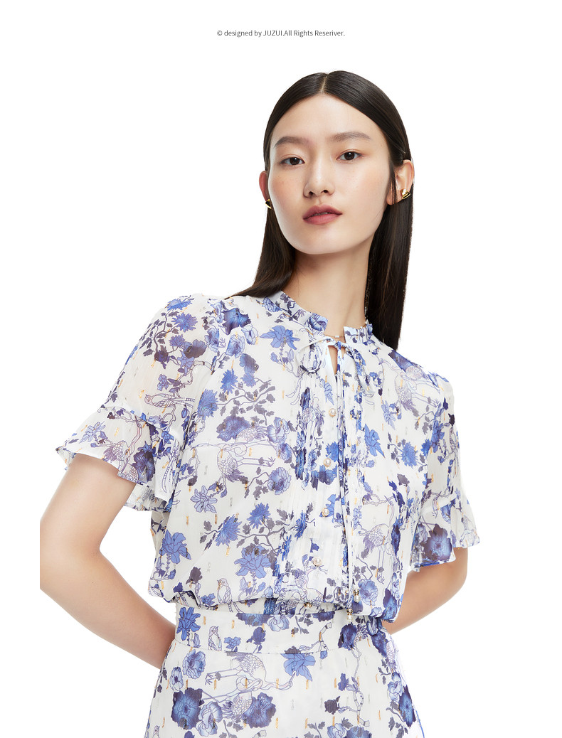 首页 > 玖姿专区 > 玖姿服饰 > JUZUI/玖姿官方旗舰店2021夏季新款紫色系带印花优雅女雪纺衬衫