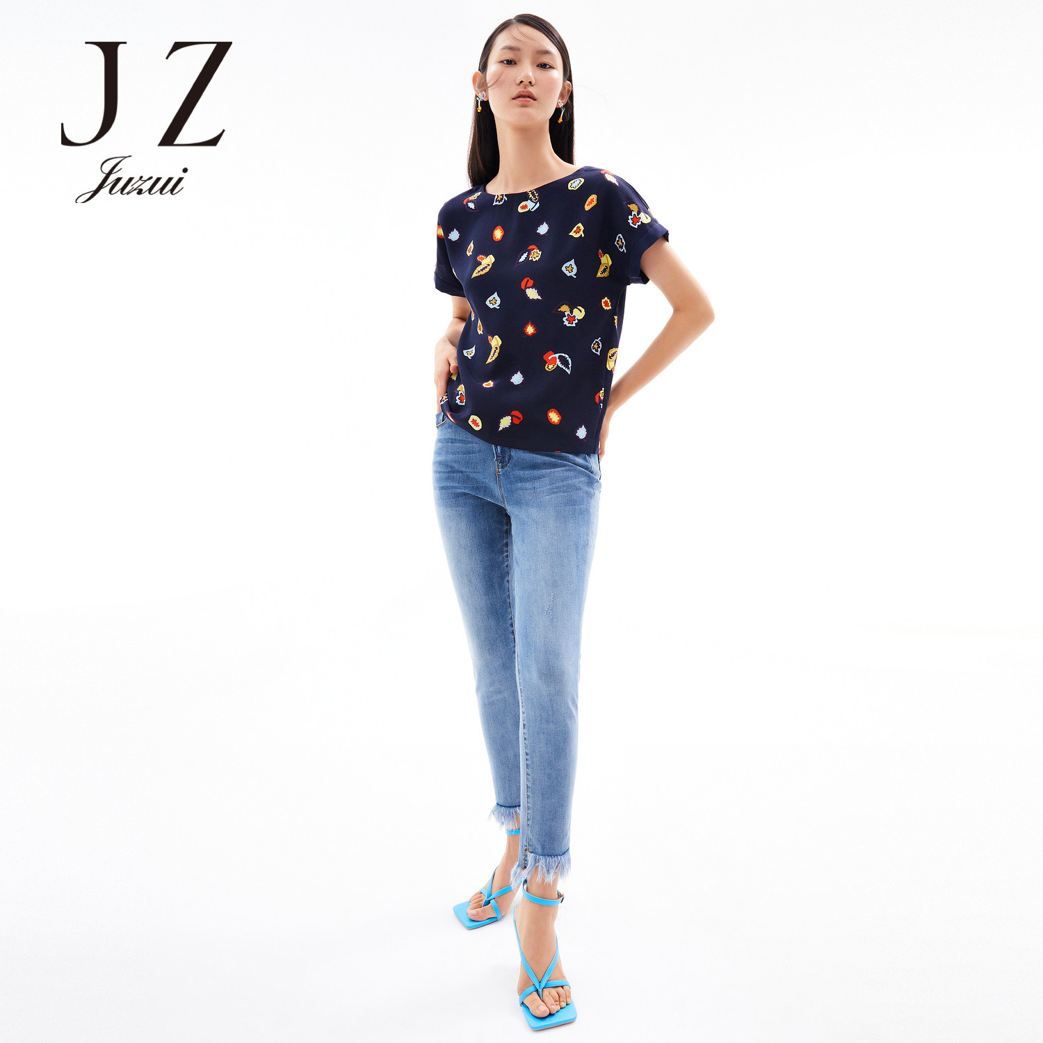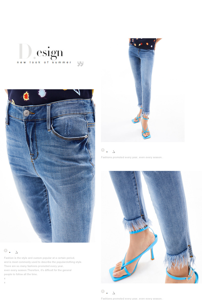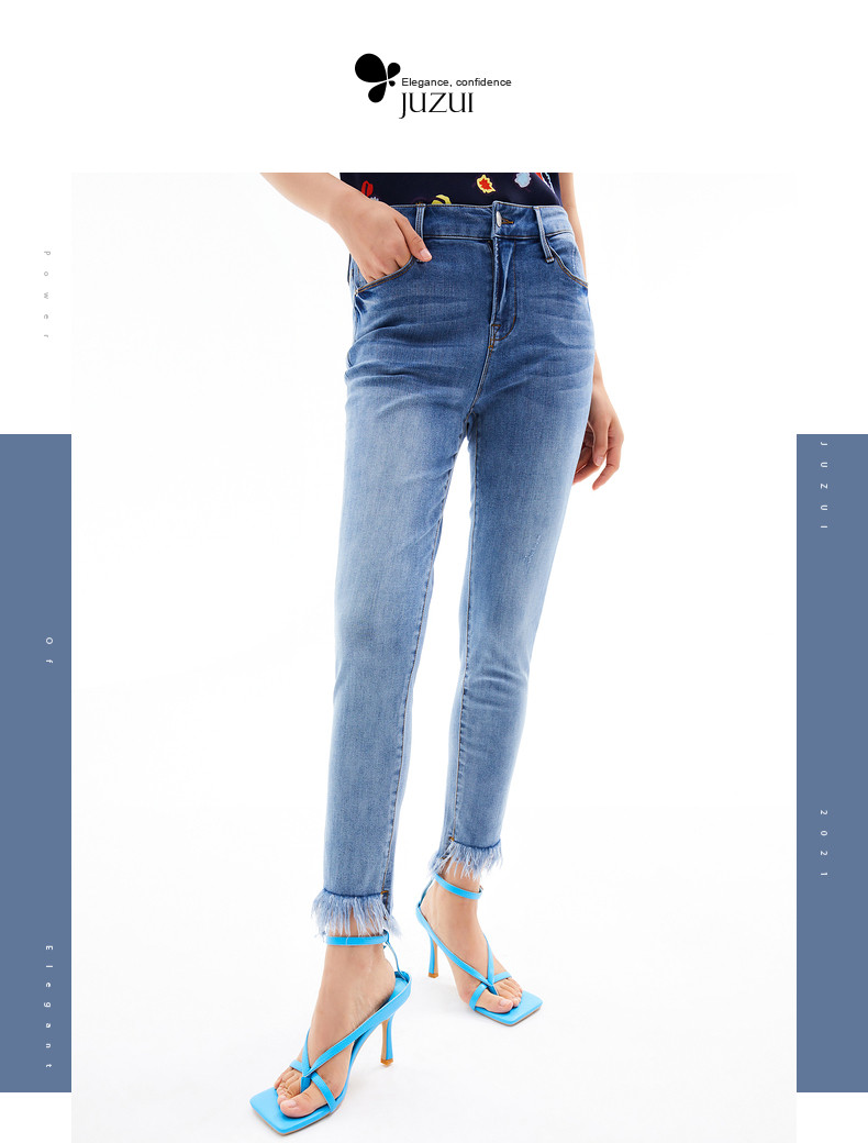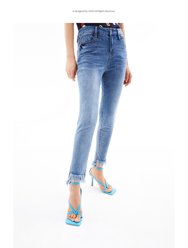 首页 > 玖姿专区 > 玖姿服饰 > JUZUI/玖姿官方旗舰店2021夏季新款蓝色水洗修身小脚毛边女牛仔裤