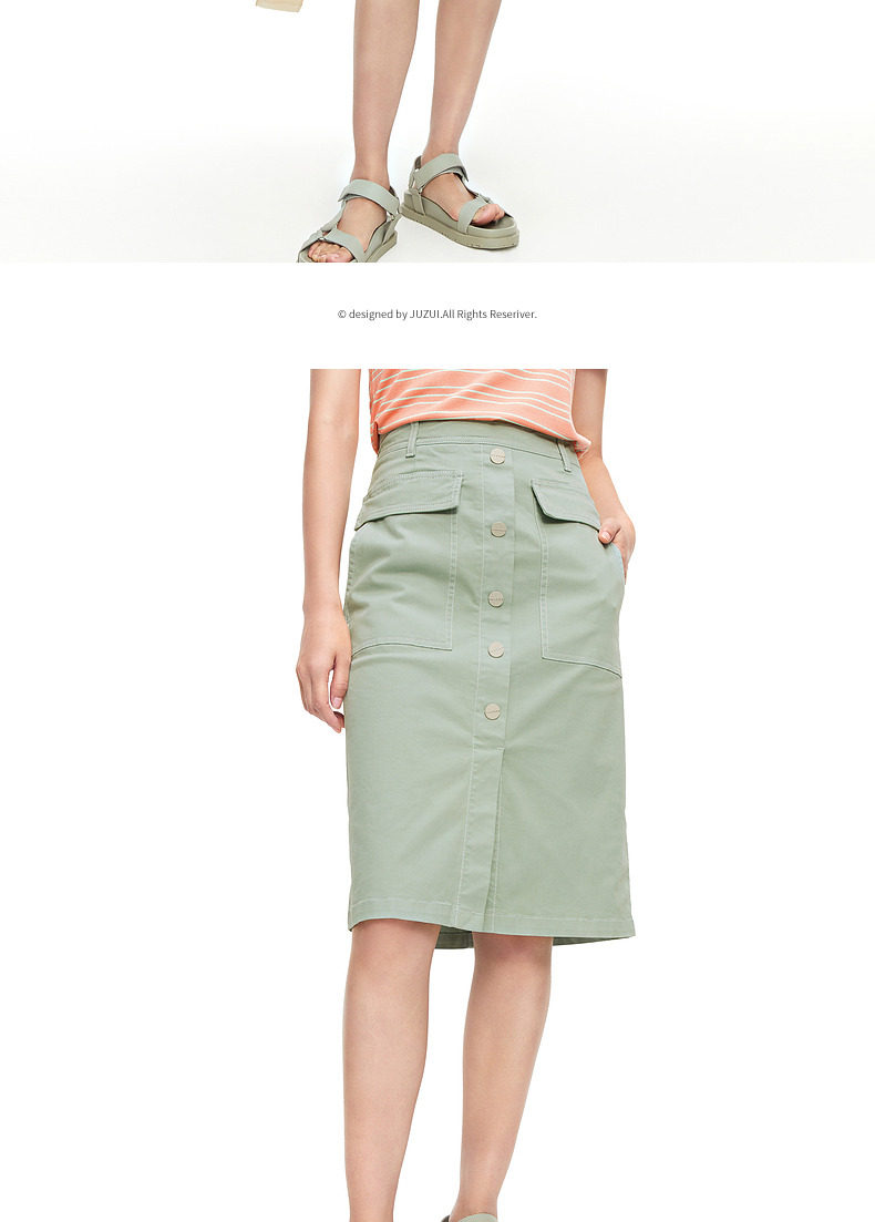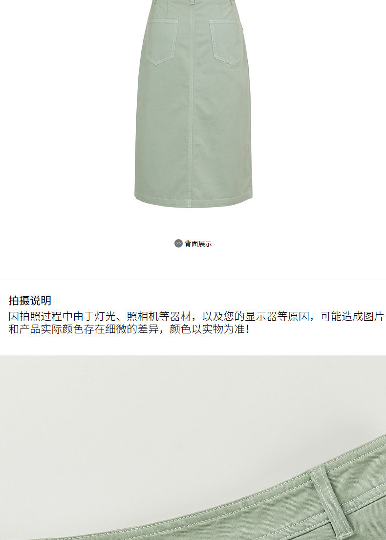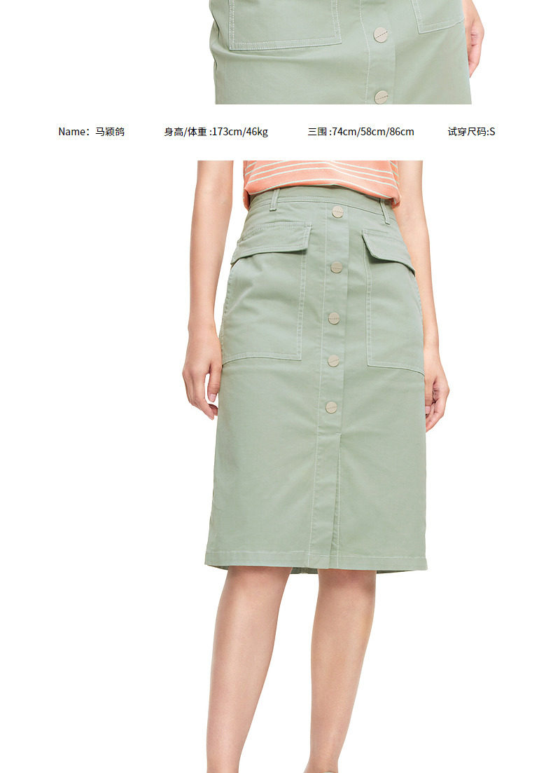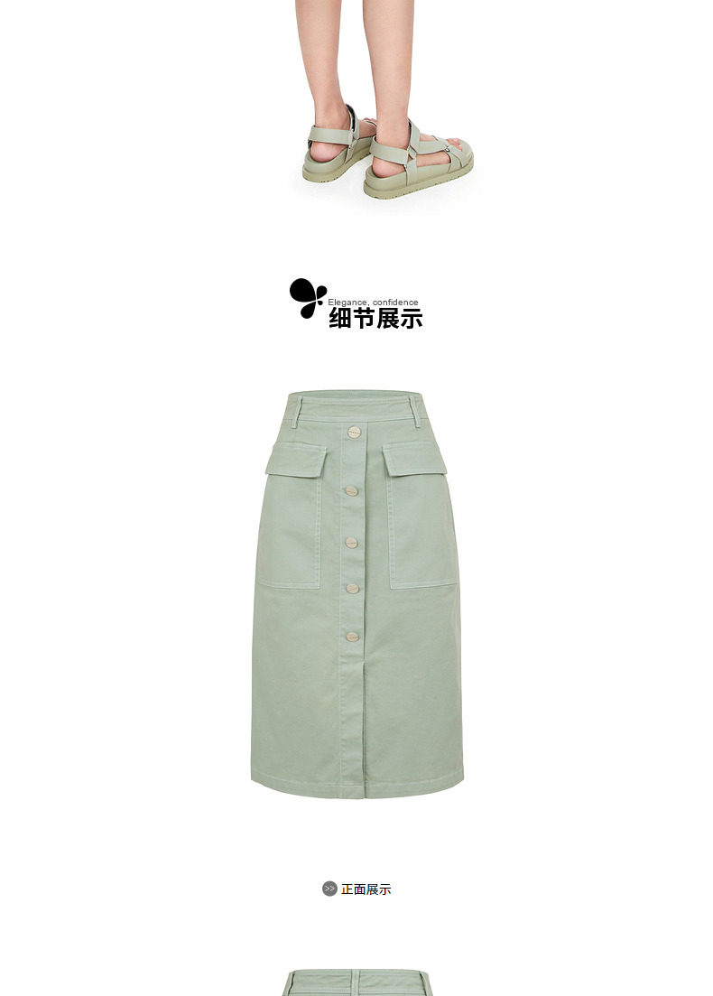 首页 > 玖姿专区 > 玖姿服饰 > 玖姿2021夏季新款安娜蔻系列薄荷绿一排扣直身时尚女牛仔半身裙