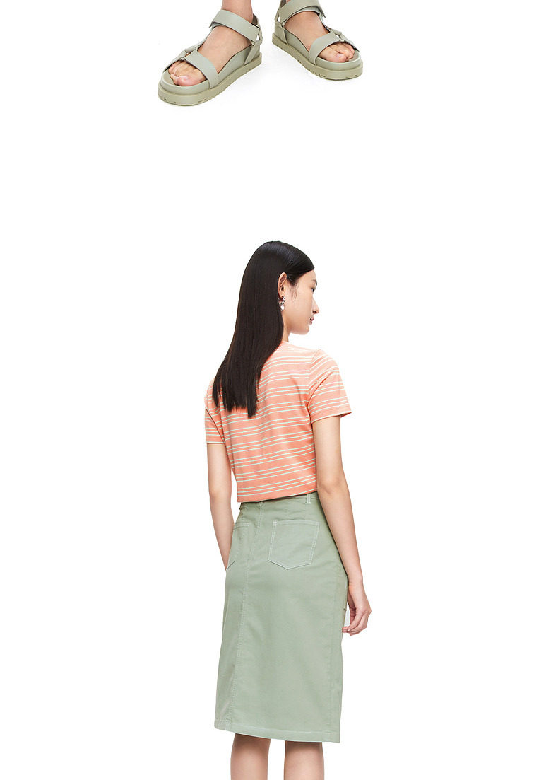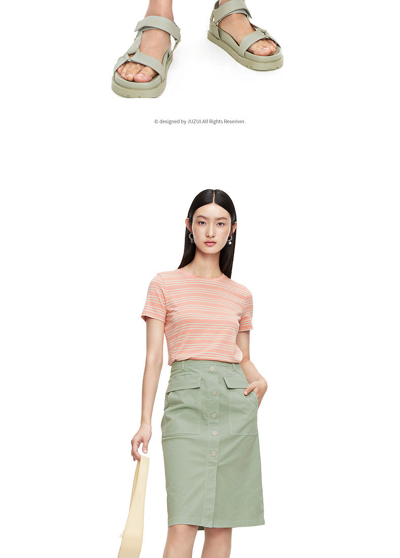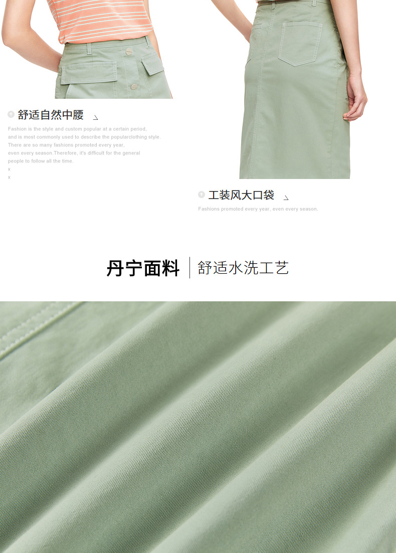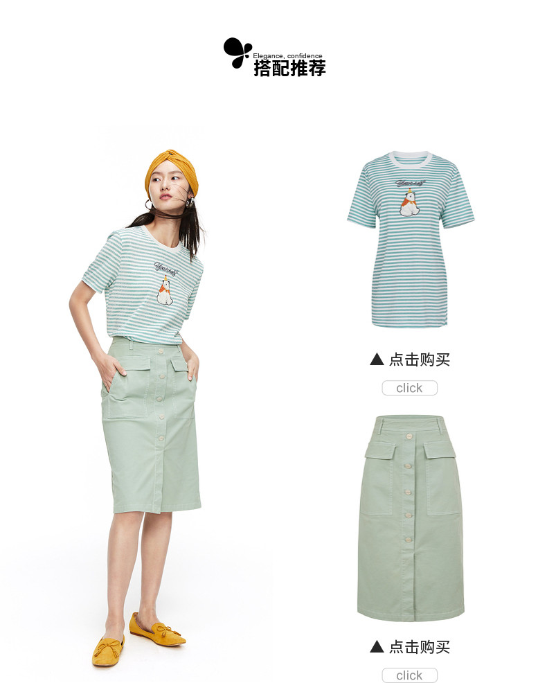 首页 > 玖姿专区 > 玖姿服饰 > 玖姿2021夏季新款安娜蔻系列薄荷绿一排扣直身时尚女牛仔半身裙