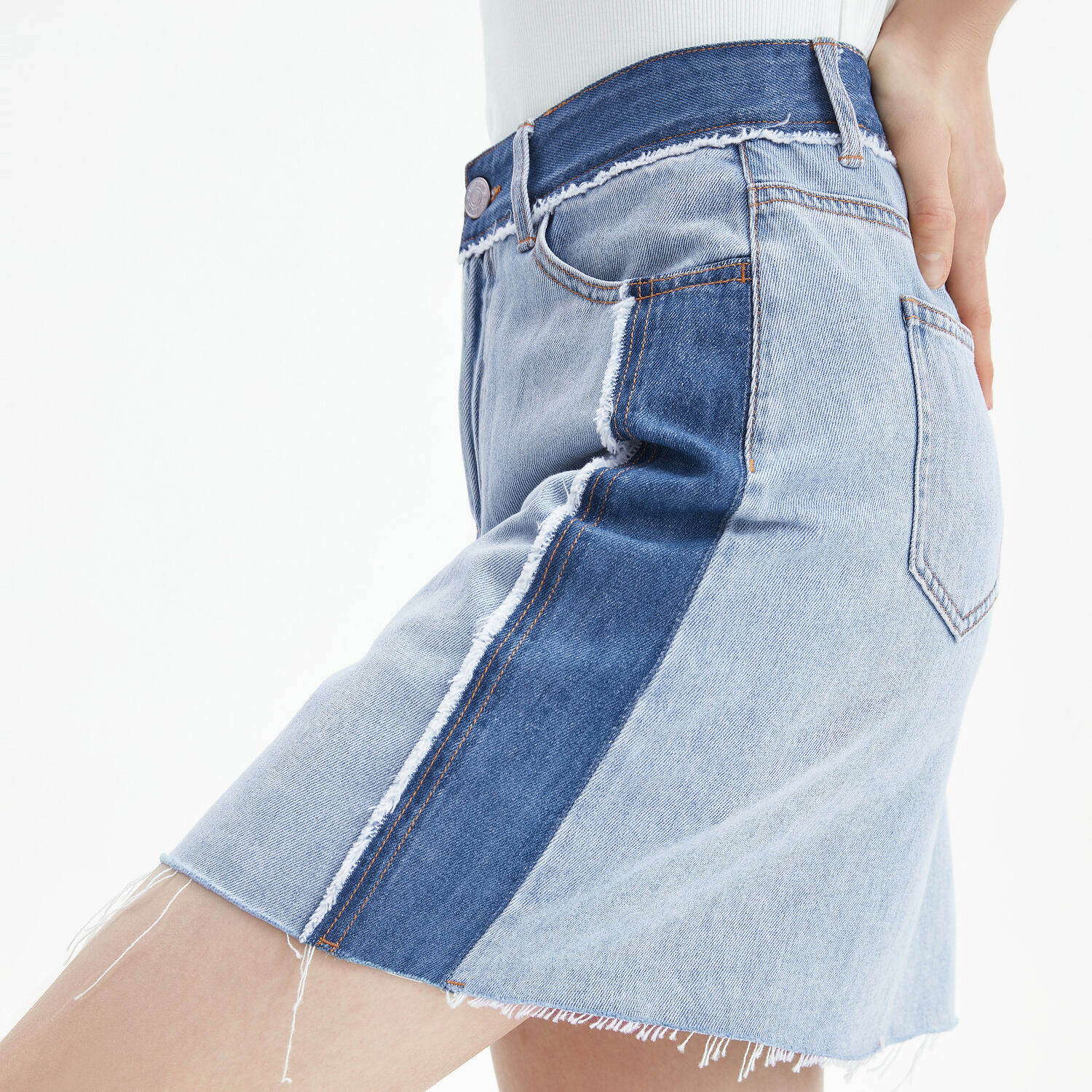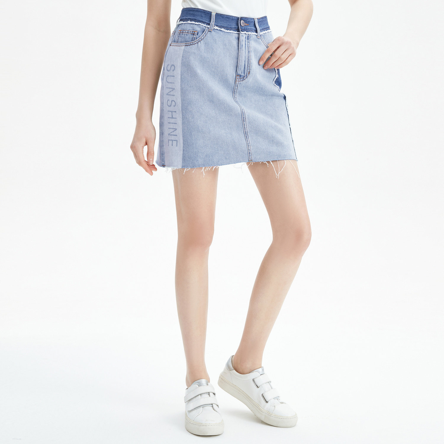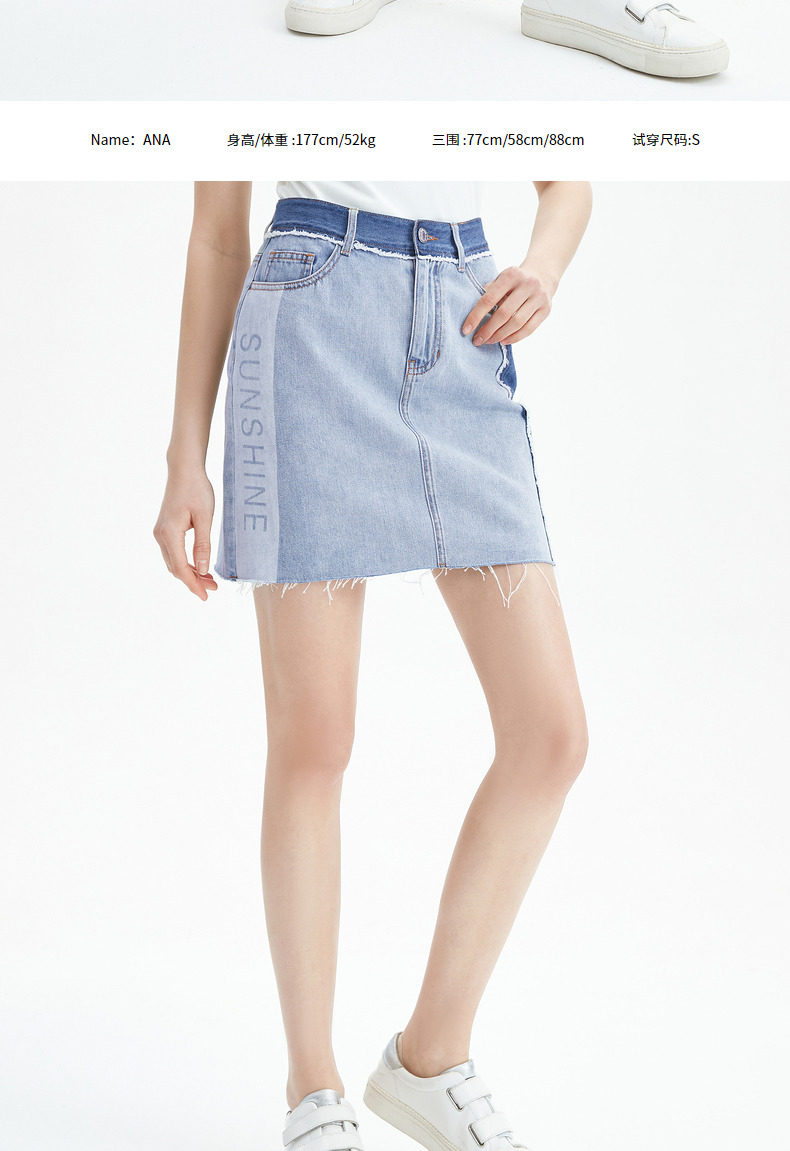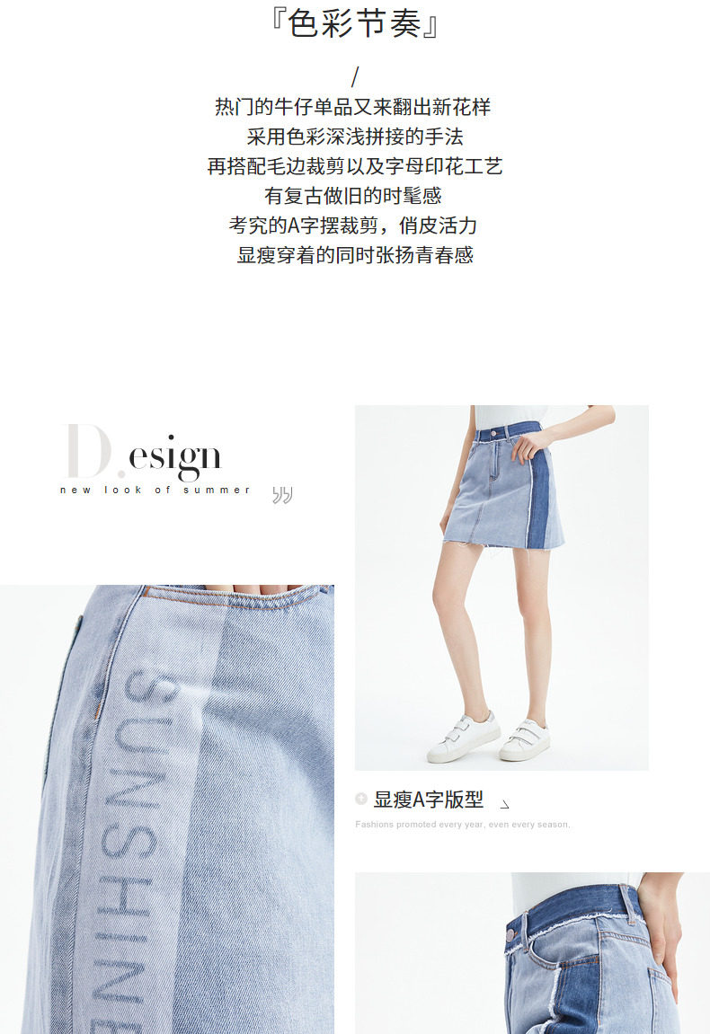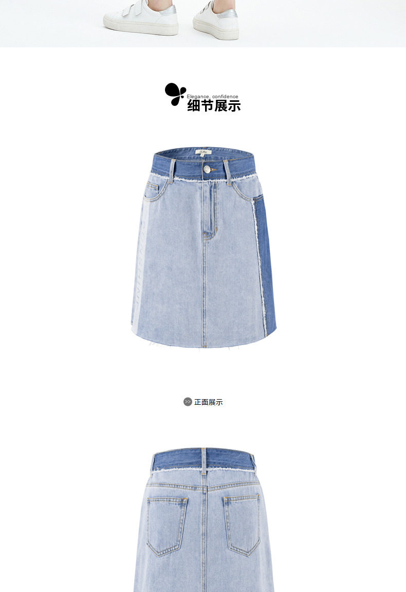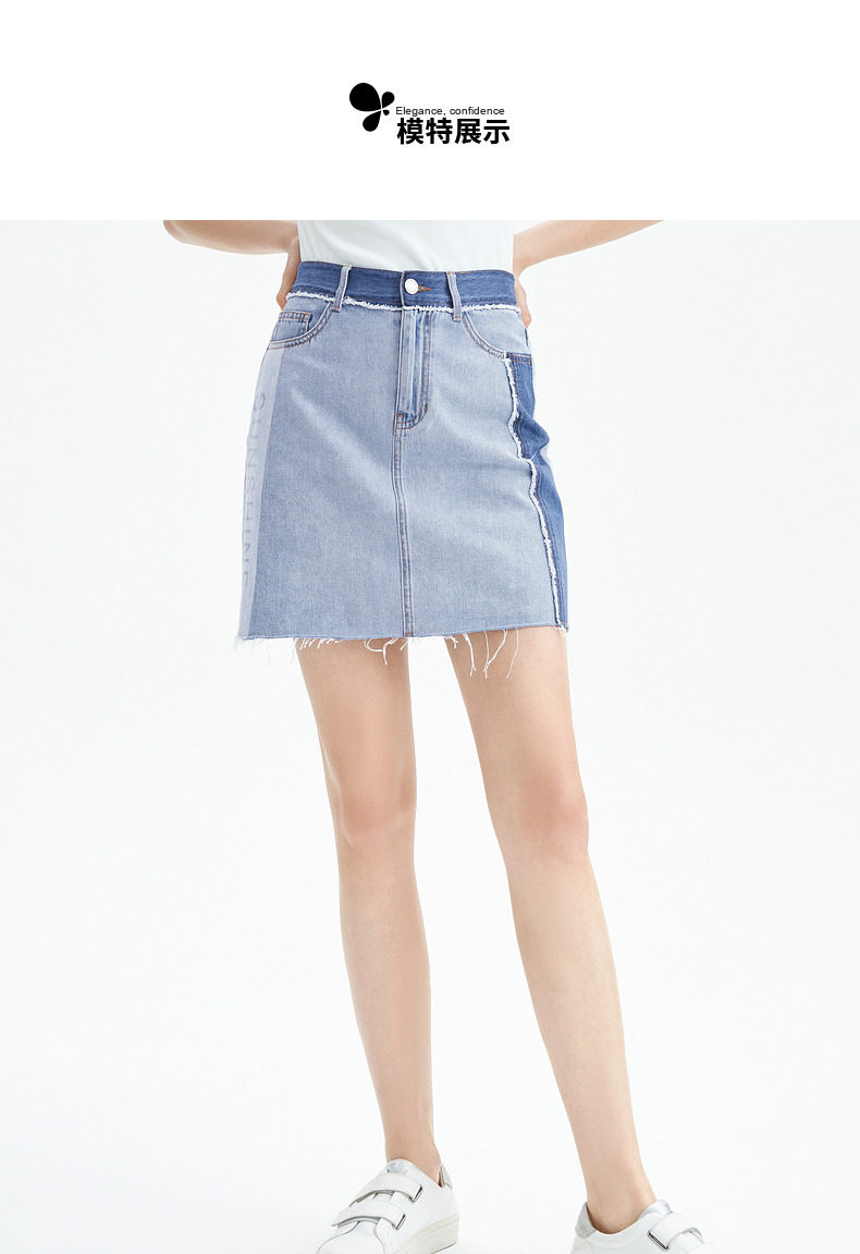 首页 > 玖姿专区 > 玖姿服饰 > JUZUI/玖姿官方旗舰店2021夏季新款蓝色青春拼接A字摆女牛仔半裙