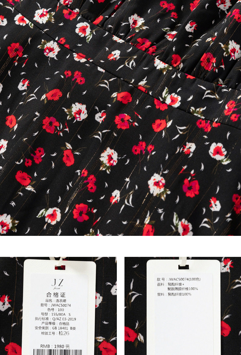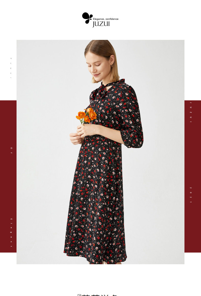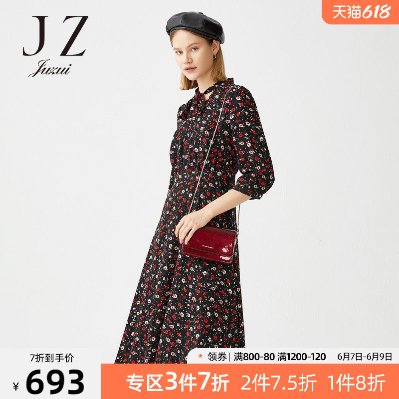 首页 > 玖姿专区 > 玖姿服饰 > JUZUI/玖姿官方旗舰店2021春季新款优雅碎花收腰长款雪纺女连衣裙